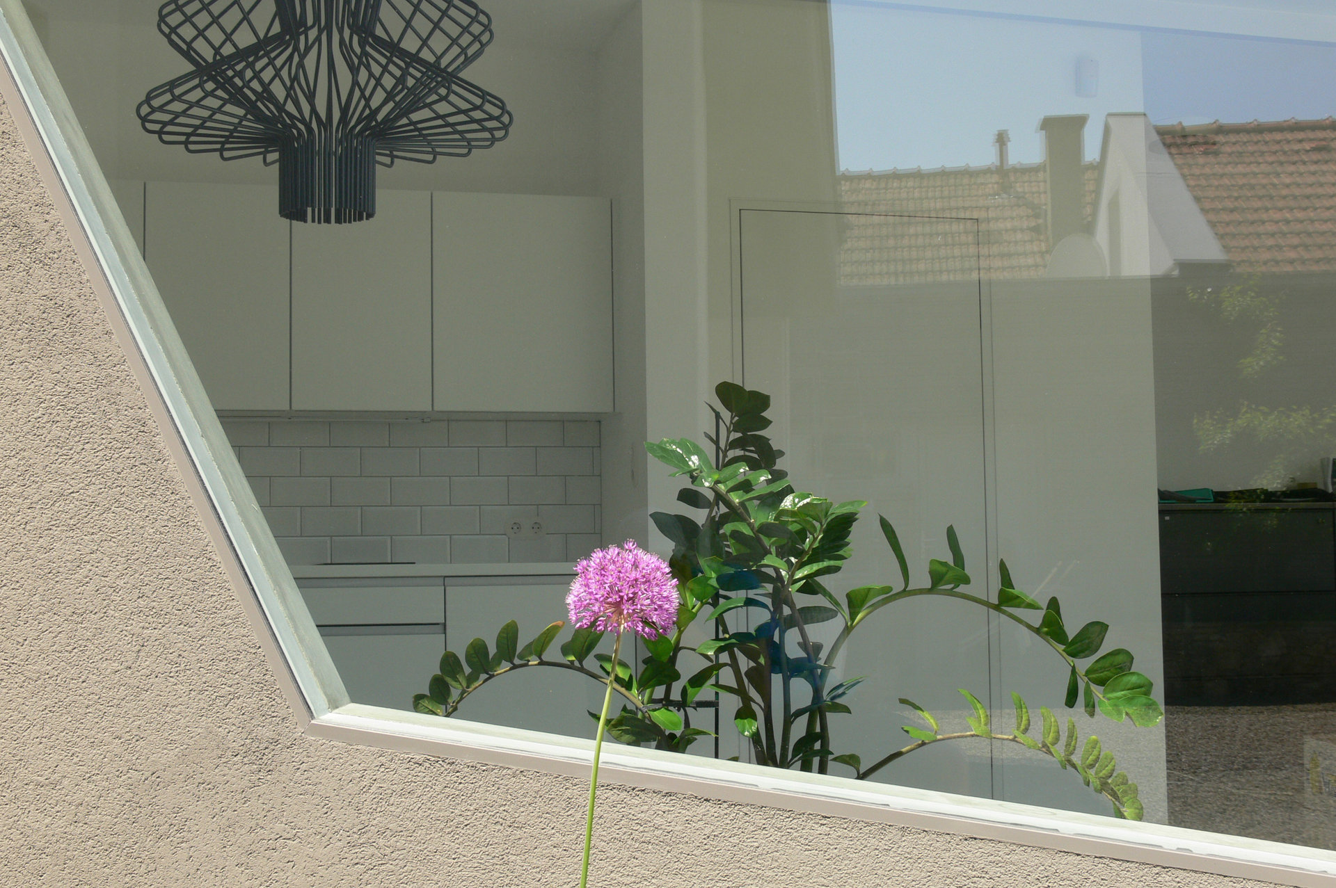 Der Bauplatz für den Bürozubau und die Dimensionierung der Haustechnik wurde schon bei der Planung des Wohnhauses mitberücksichtigt. Über die hof- und straßenseitigen Oberlichten ist eine Querlüftung möglich. (Text: Architekten)