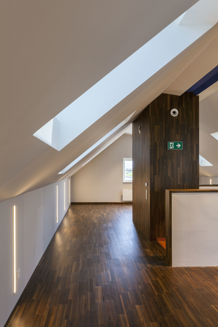 In Phase Drei (2017 – 2018) wird der im ursprünglichen Ausbauplan bereits vorgesehene, jedoch aus Kostengründen nicht umgesetzte Dachgeschoßausbau des bestehenden Altbaus realisiert und als zentraler Archivbereich gewidmet.
