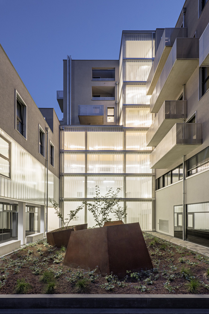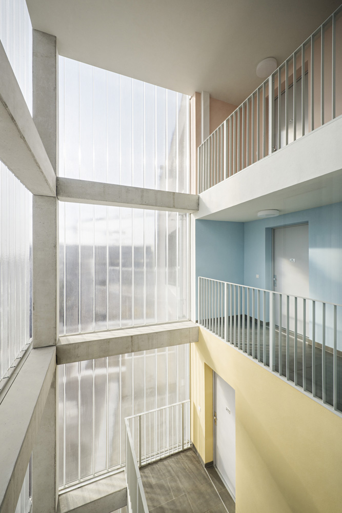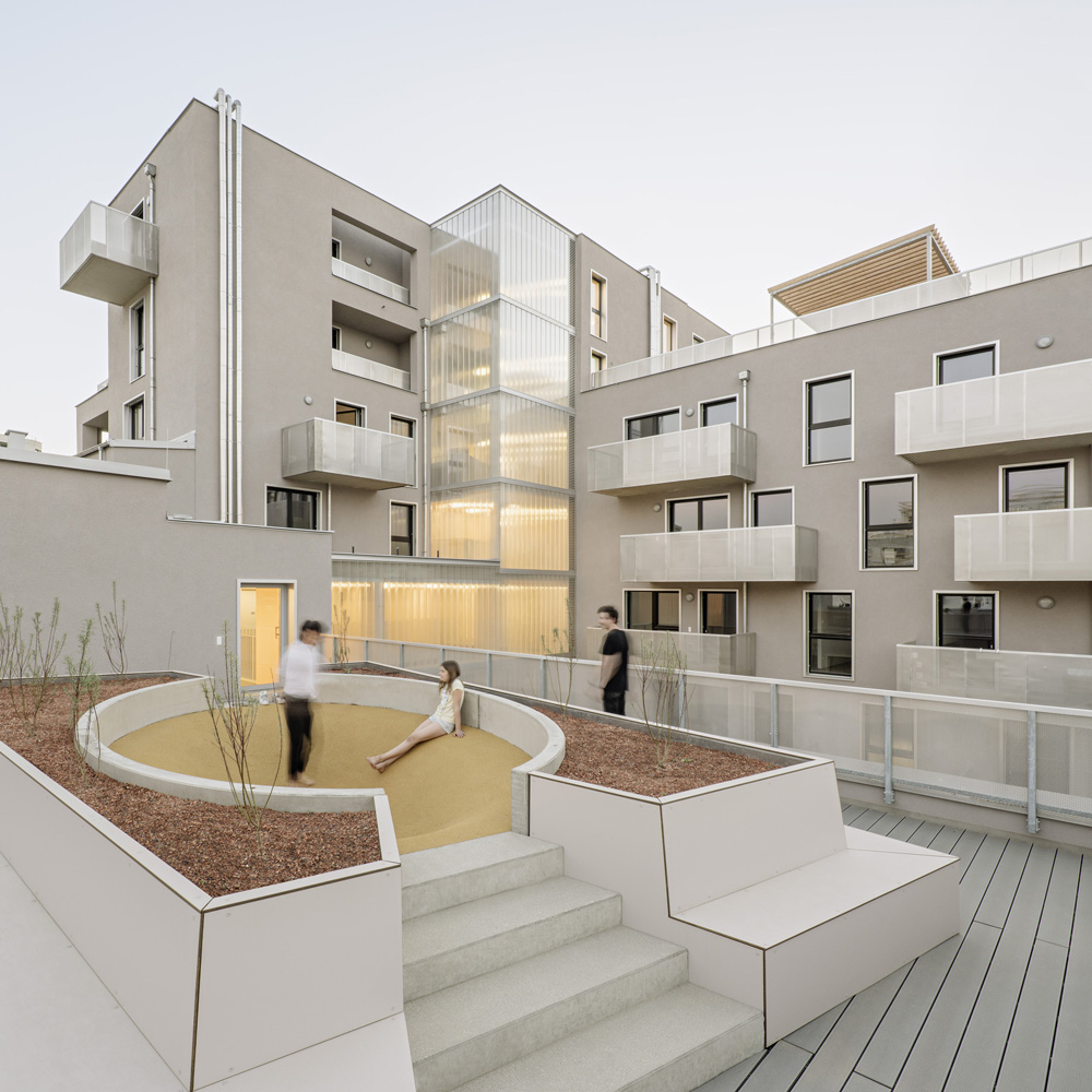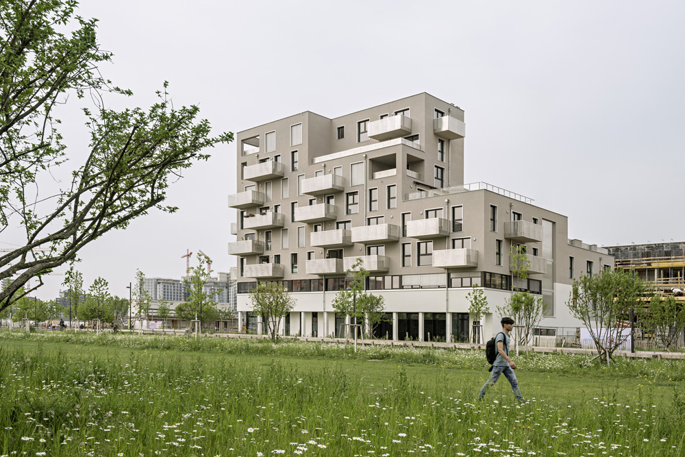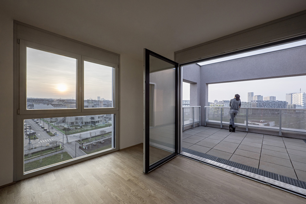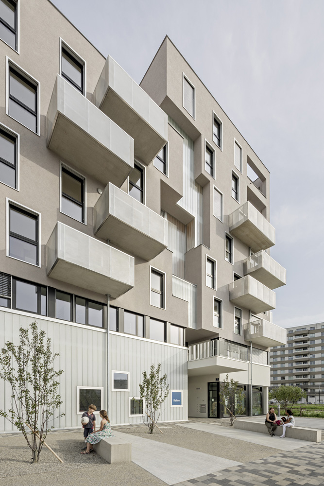 Das „Haus am Park“ ist in relativ kleiner Wohnbau mit nur 29 Wohnungen, drei Büros und einem Tanzstudio im Erdgeschoss und steht direkt am zentralen Helmut-Zilk-Park im neuen östlichen Teil des Sonnwendviertels. Der höchste Bauteil steht selbstbewusst am Eck des Baufeldes. Mit der differenzierten, über den Hof belichteten und nach außen klar ablesbaren Erschließung setzt der Neubau seine urbanen Qualitäten im Inneren fort. Offene und frei nutzbare Stockwerkszimmer und gemeinsame Dachgärten stehen allen Bewohnerinnen und Bewohnern zur Verfügung. SLIM-BUILDING und CLIMALOOP, hauseigene Marken des Eigentümers, sorgen für effizienten Materialeinsatz und geschickte Bauteilaktivierung und damit für Grundprinzipien der Nachhaltigkeit auf hohem Niveau. (Text: Staatspreis Architektur & Nachhaltigkeit 2019)