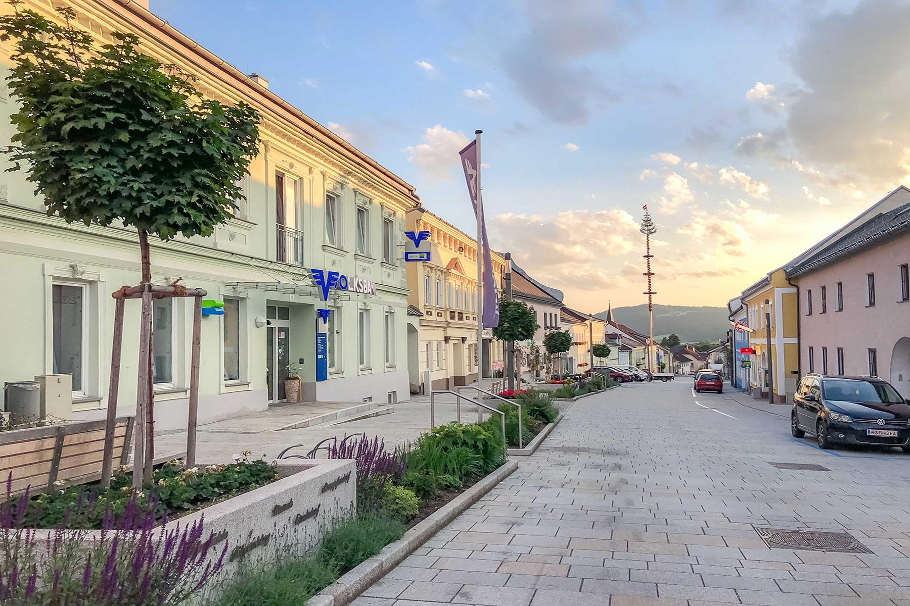 Auch in Oberösterreich: In der Marktgemeinde St. Oswald bei Freistadt beispielsweise hat ein äußerst engagierter Verein die Neugestaltung des Marktplatzes als wirksames Instrument zur Rückeroberung der Mitte erkannt. Nach 15 Jahren beharrlichen Einsatzes des „Forums Marktplatz“ haben im Jahr 2009 Elisabeth Lobmaier-Stockinger und Markus Lobmaier – sie betreiben gemeinsam das Architekturbüro Lobmaierstockinger in Linz – den seitens der Gemeinde ausgelobten Wettbewerb zur Platzgestaltung gewonnen. Darauf folgte ein weitere fünf Jahre währender kooperativer Planungsprozess, in dem jede Einzelheit des 2016 fertig gestellten Platzes mit großer Offenheit von Planern und Aktivisten diskutiert und einvernehmlich festgelegt wurde.