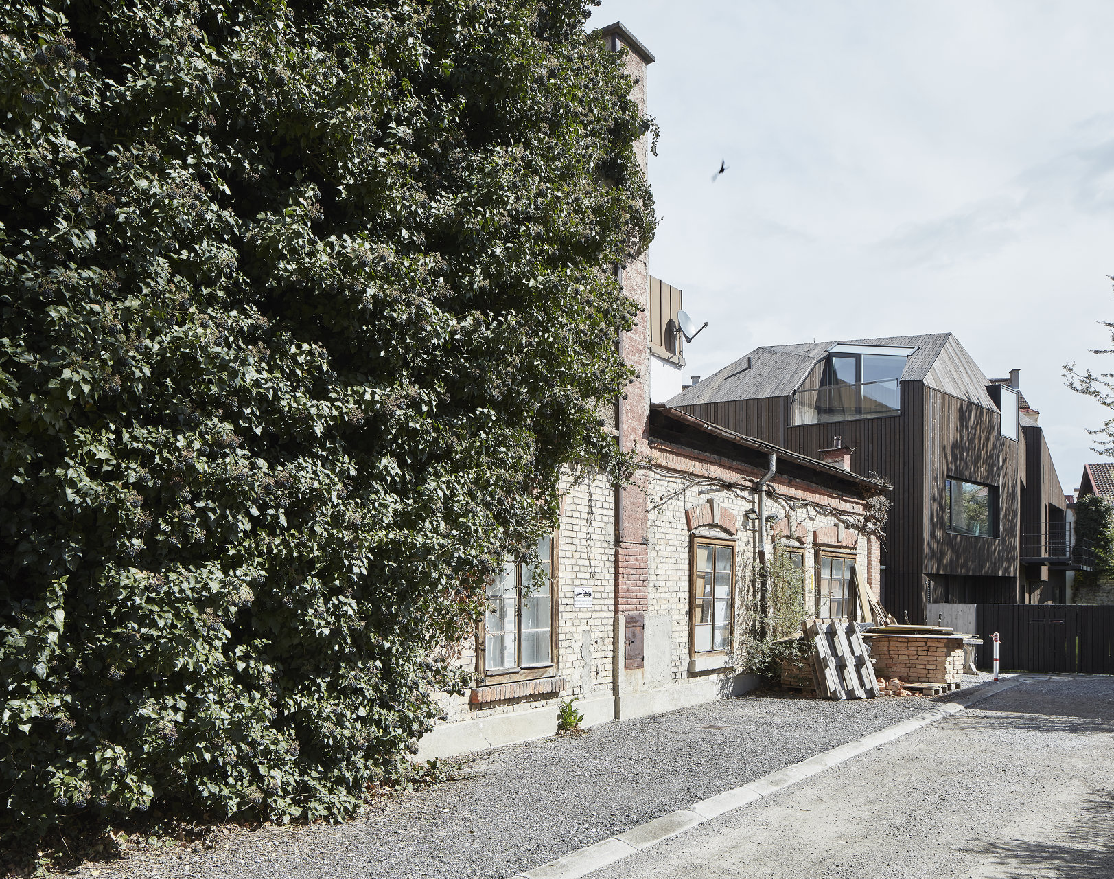 Der Titel „Mut zur Lücke“ leitet sich von der eigentlichen „Unbebaubarkeit“ des Grundstücks ab. Die Bauvorschriften betrachtend war eine Bebauung der Lücke zu Wohnzwecken im Prinzip nicht möglich. Intensives und genaues Studieren der Raumordnungsdefinitionen, Neuinterpretation von gesetzlichen Bedingungen und die Erstellung von einigen Gutachten führten zur Wohnnutzung des Grundstückes. Und mitten im Haifischbecken der gewerblichen Bauträger musste die Entscheidung zum Kauf von der privaten Bauherrengemeinschaft binnen weniger Tage gefällt werden – ganz schön mutig! (Text: Architektin)