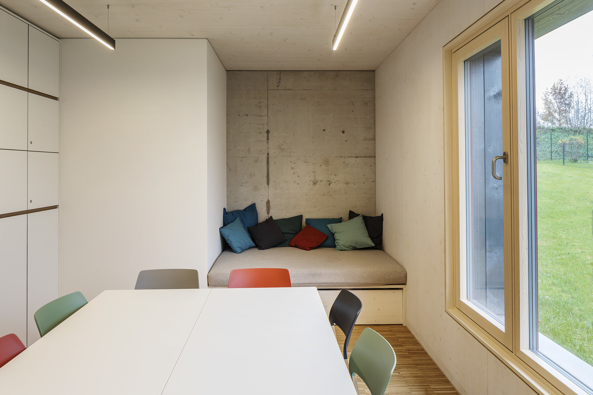 Mit der durchgehenden Materialtreue im Holzbau wird ökologischen Aspekten ein hoher Stellenwert eingeräumt und mit dem Gebäude selbst eine pädagogische Wirkung erzielt. Im Programm „klima aktiv“ wurde die Zertifizierung „Silber“ erreicht. (Text: Architekten)