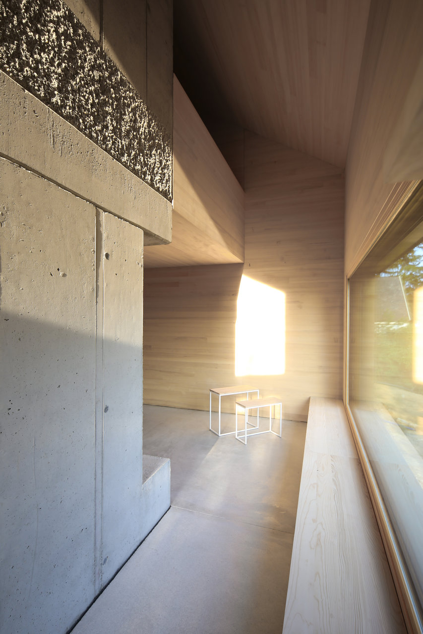 Die anspruchsvollen Details waren für die meisten eine echte Herausforderung, aber bei der Definition des Sichtbetons wurde bewusst eine gewisse Freiheit gelassen, die in Kontrast zur beinahe makellosen Weißtanne stehen.