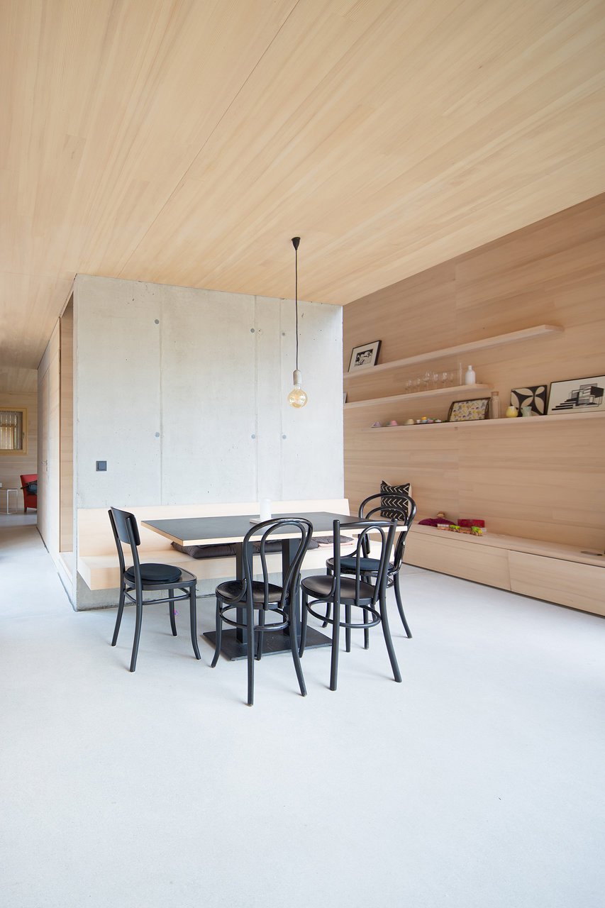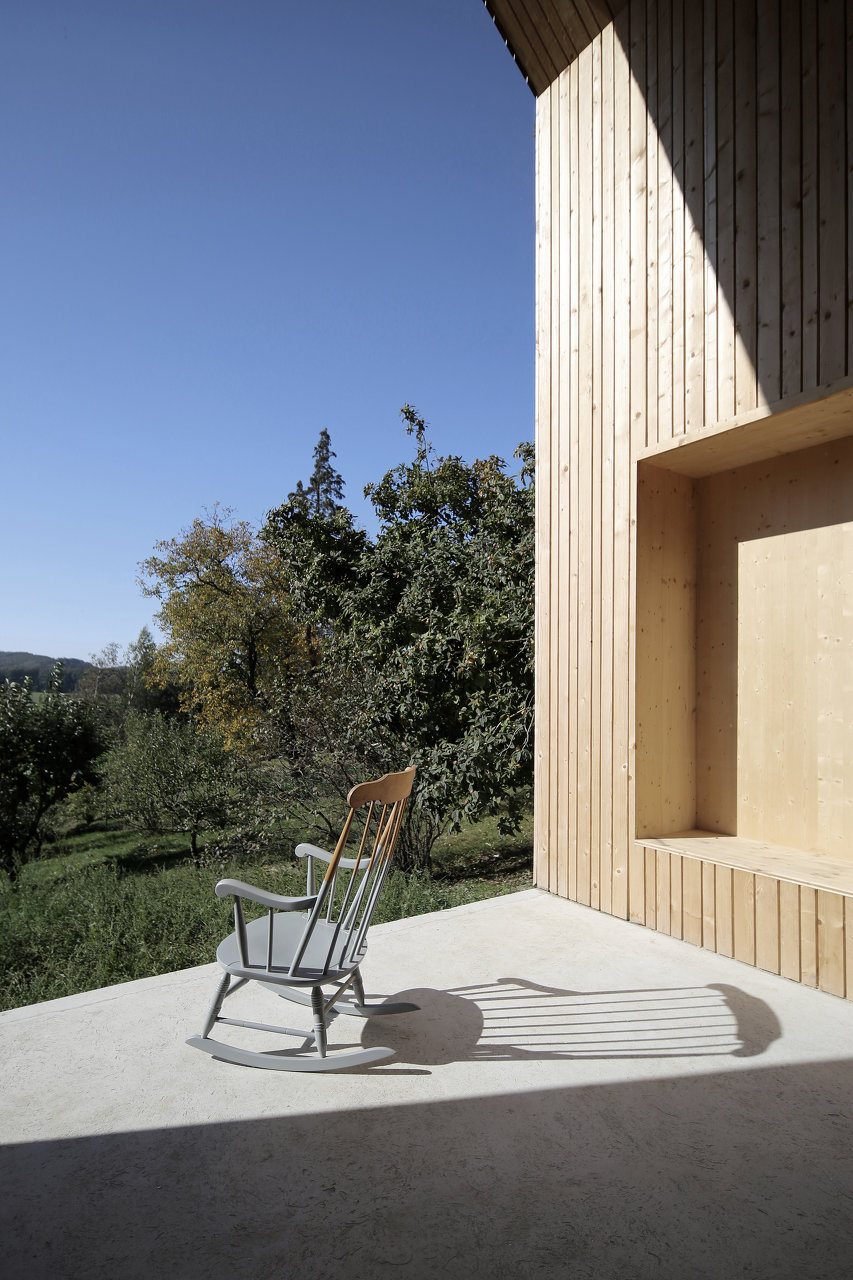 Ebenso ist die Haltung der Bauherrn zu einer flexiblen Nutzung zu unterschiedlichen Lebensphasen hervorzuheben: So soll das Haus derzeit als Zweitwohnsitz fungieren, der aber mit der Wohnung in Wien immer wieder auch für längere Phasen getauscht werden kann. Längerfristig ist aber auch ein Wechsel des Lebensmittelpunktes vollständig aufs Land mit angedacht. (Text: Architekt)