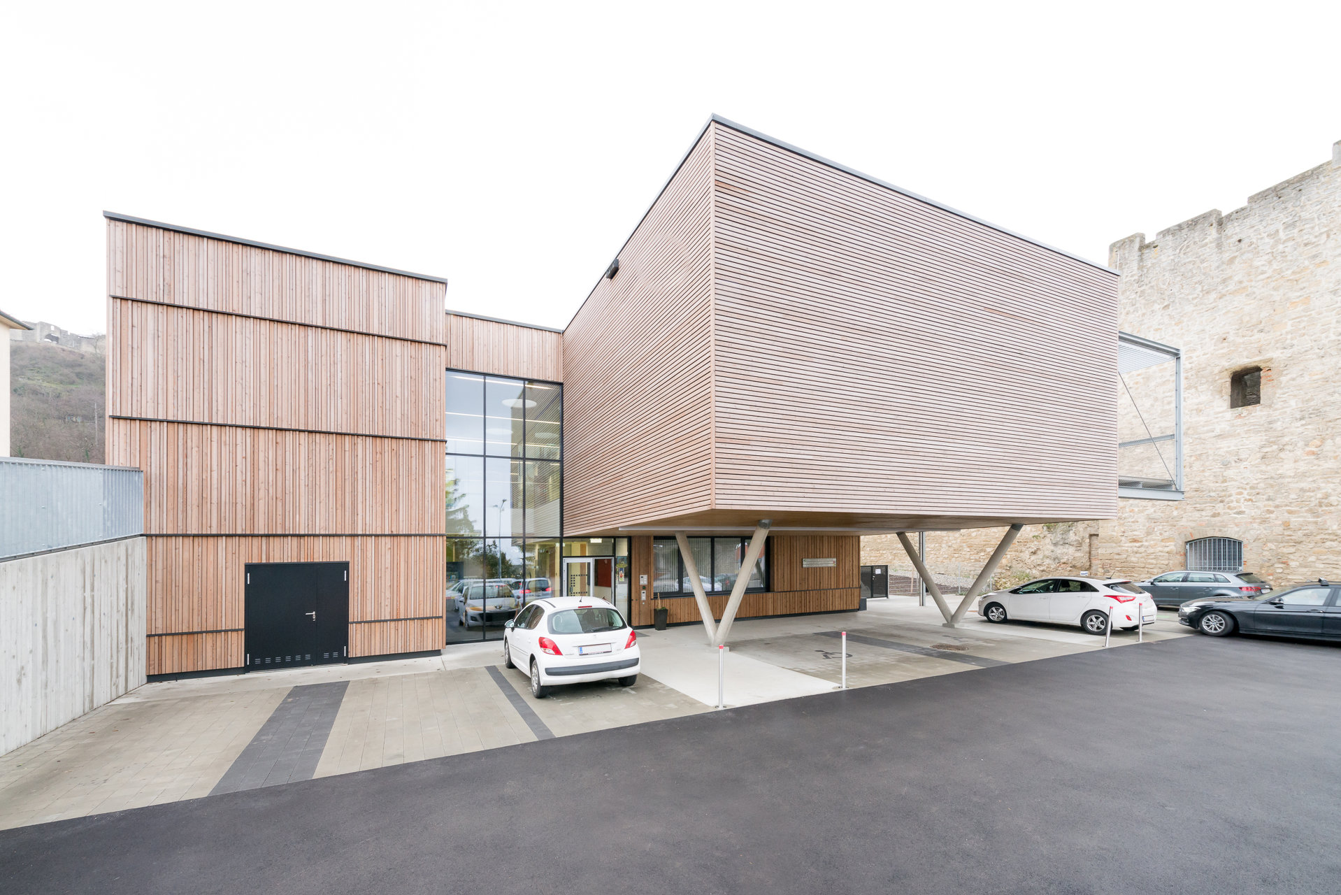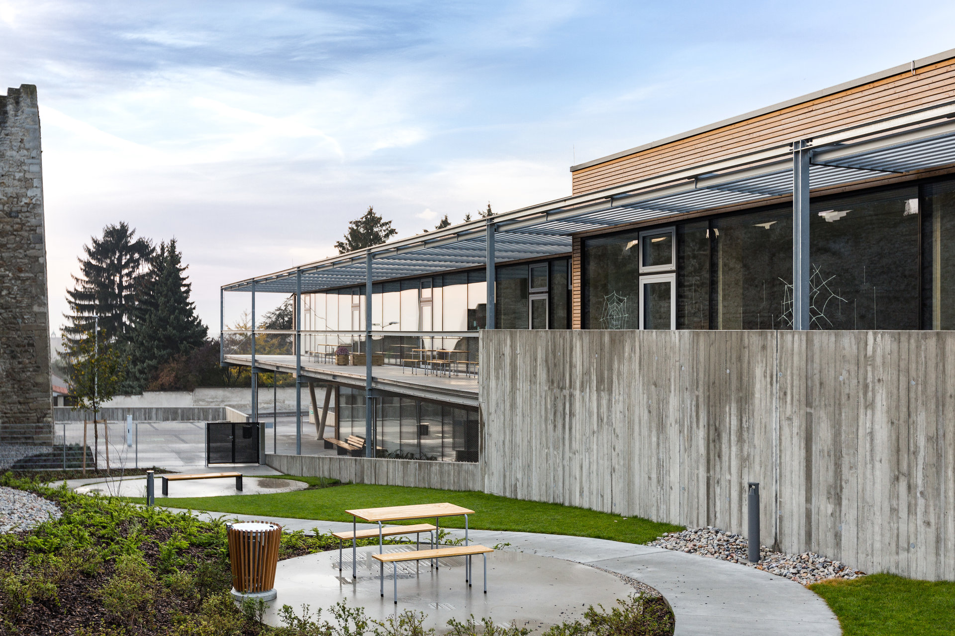 Das Objekt ist in Niedrigenergiebauweise konzipiert und ermöglicht einen reduzierten Heizwärmebedarf. (Luft-Wasser-Wärmepumpe). Die Lüftungsanlagen mit Kreuzstromwärmetauscher und reduziertem hygienisch erforderlichem Luftwechsel sowie reduzierten internen Lasten und optimierte Sonnenschutzeinrichtungen garantieren ein angenehmes Raumklima. Eine Photovoltaikanlage mit 20 kW peak deckt die Hälfte des anfallenden Strombedarfs ab. Die dem Gelände folgenden Außenanlagen bilden eine attraktive Ergänzung des Objektes. (Text: Architekt)