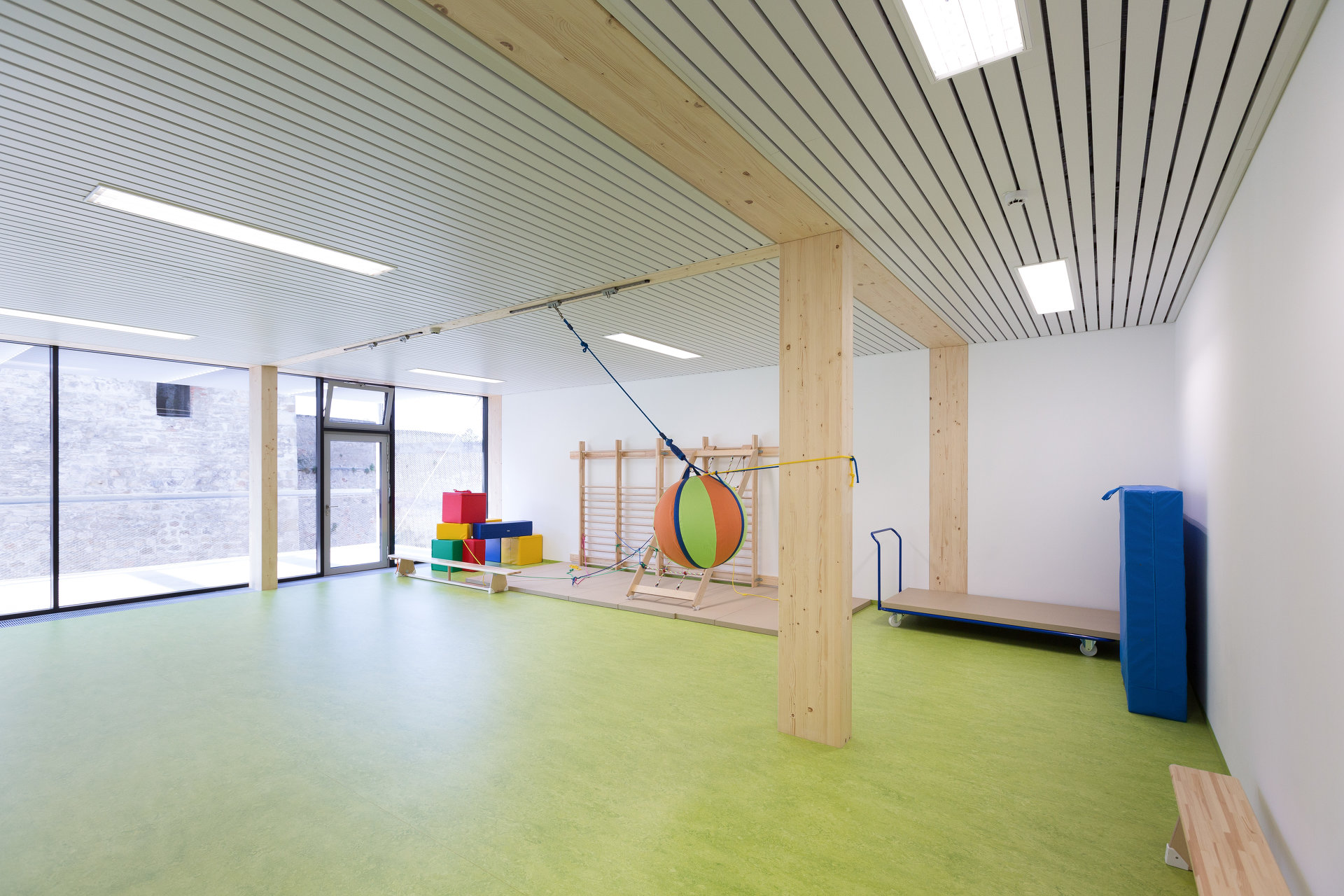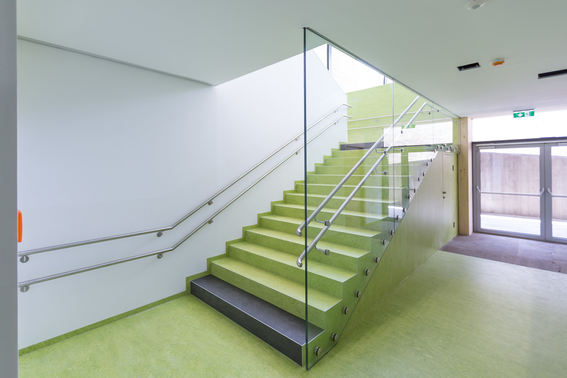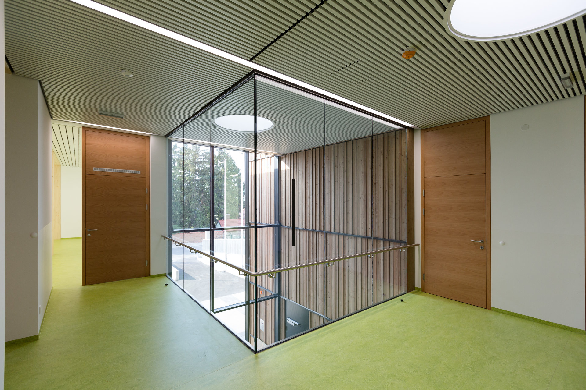 Durch die modulare Anordnung bzw. Konstruktion der Baukörper ist größtmögliche Ökonomie sowohl in funktioneller bzw. konstruktiver als auch in wirtschaftlicher Hinsicht gegeben. Unter Berücksichtigung von ökologischen Kriterien wurden natürliche Linolbeläge in den Funktionsräumen ausgeführt (diese Räume weisen eine lichte Raumhöhe von 3 Metern auf).