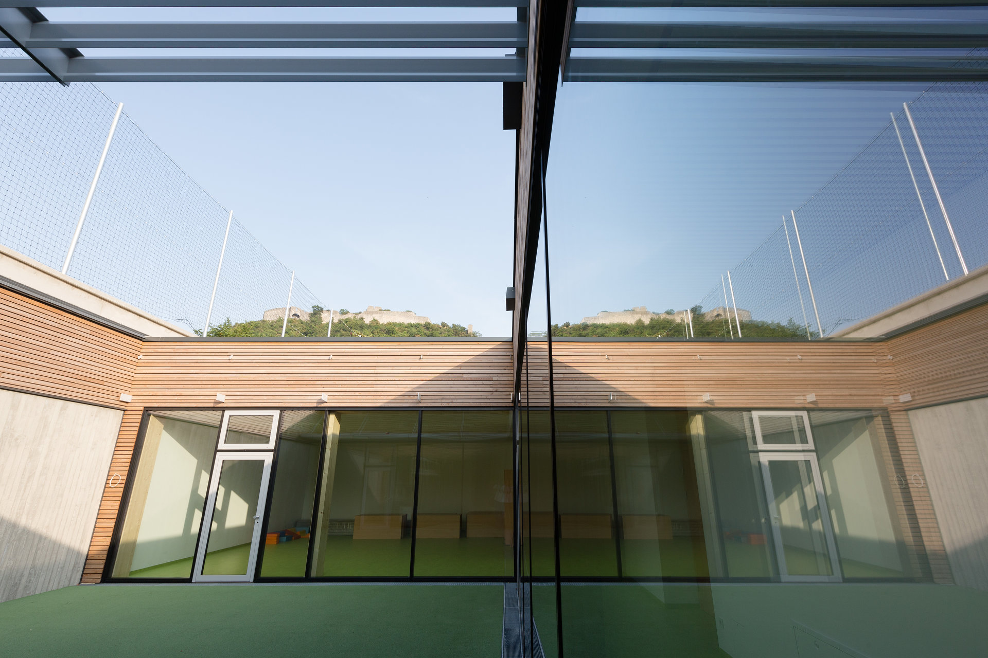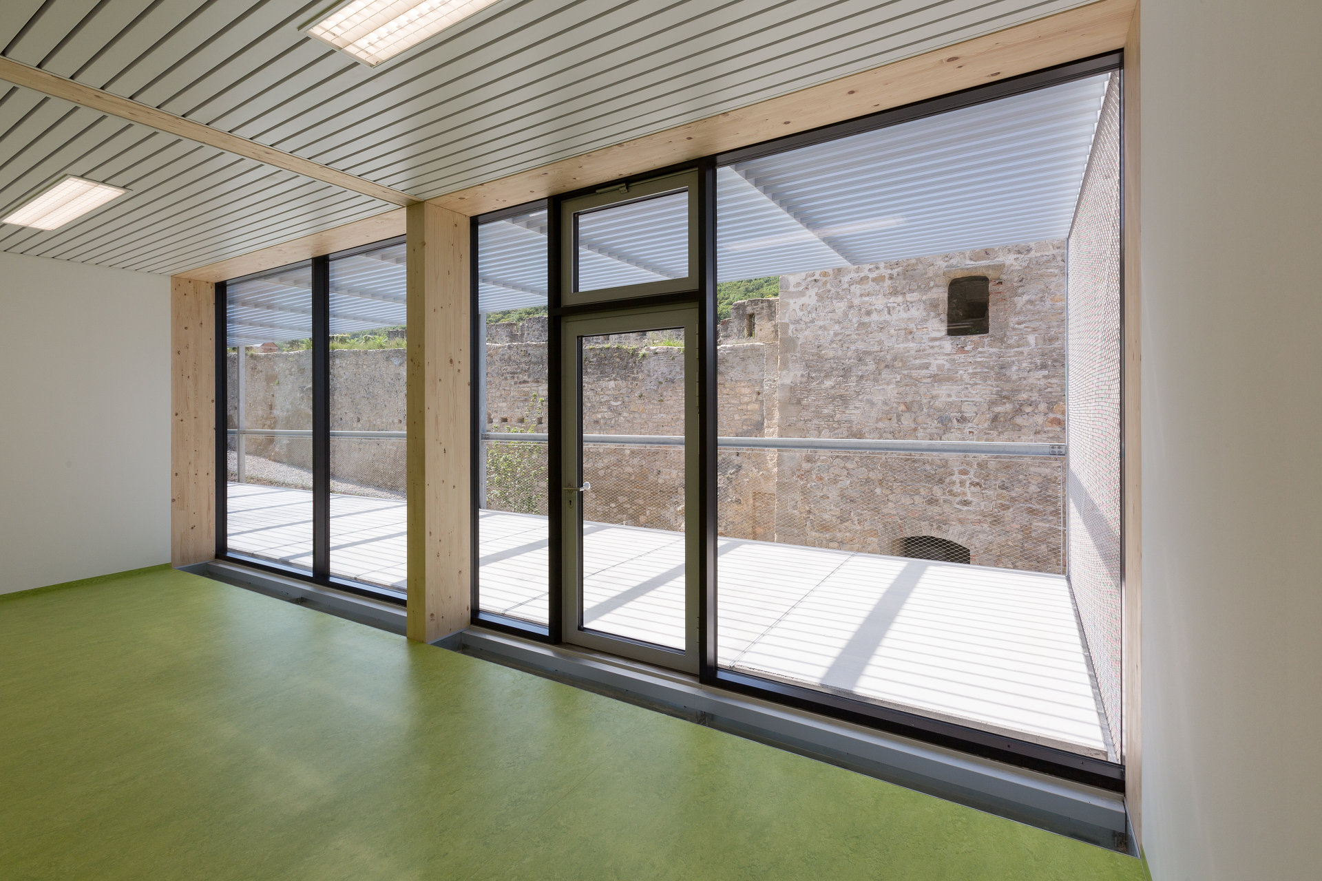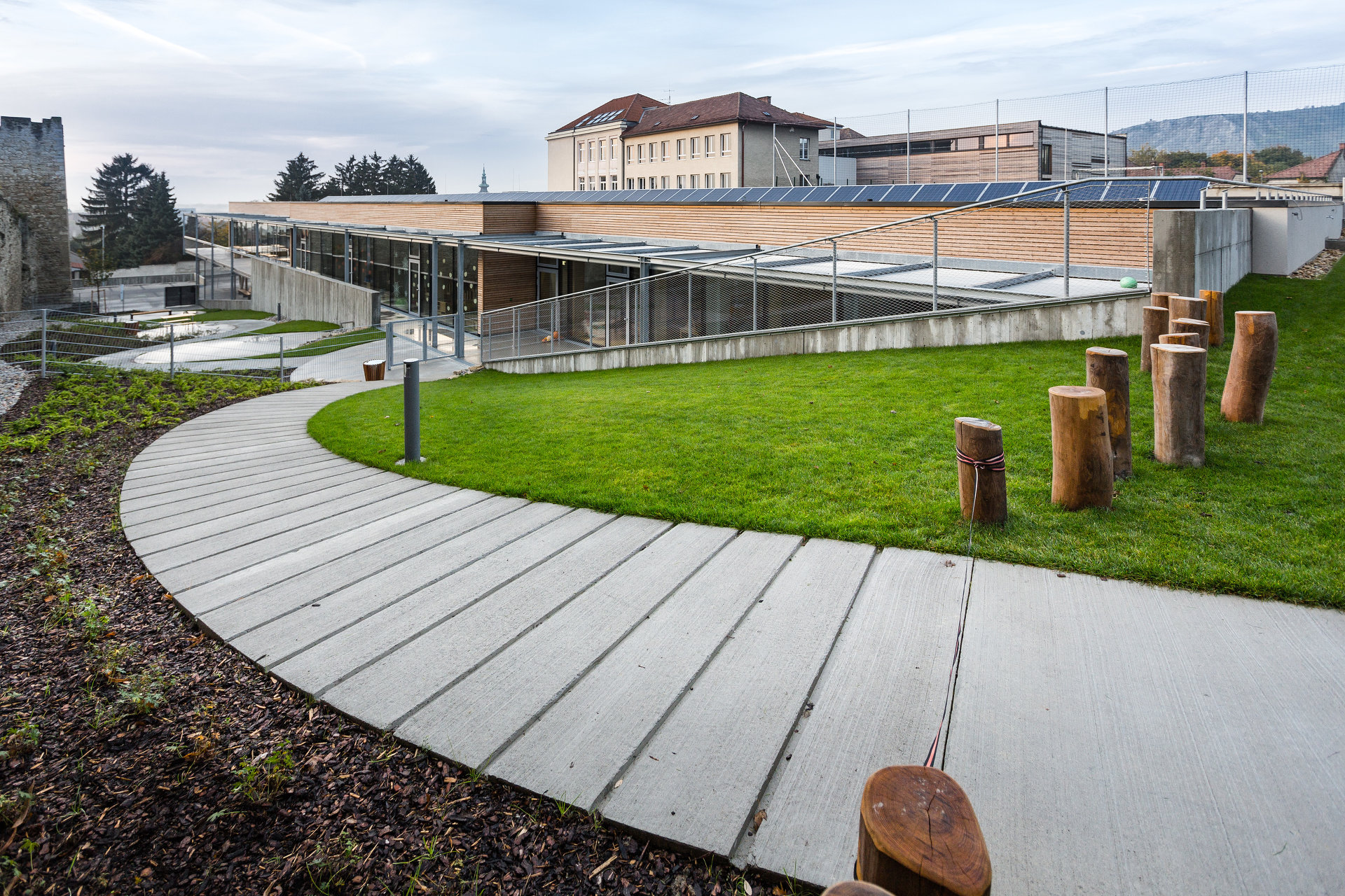 Durch die modulare Anordnung bzw. Konstruktion der Baukörper ist größtmögliche Ökonomie sowohl in funktioneller bzw. konstruktiver als auch in wirtschaftlicher Hinsicht gegeben. Unter Berücksichtigung von ökologischen Kriterien wurden natürliche Linolbeläge in den Funktionsräumen ausgeführt (diese Räume weisen eine lichte Raumhöhe von 3 Metern auf).