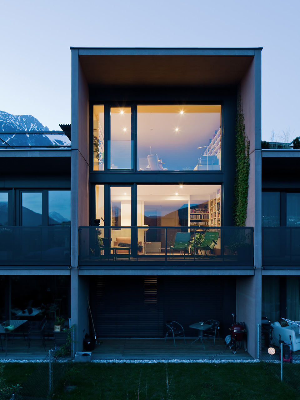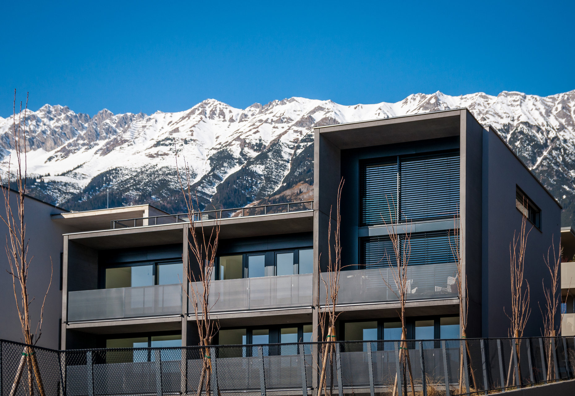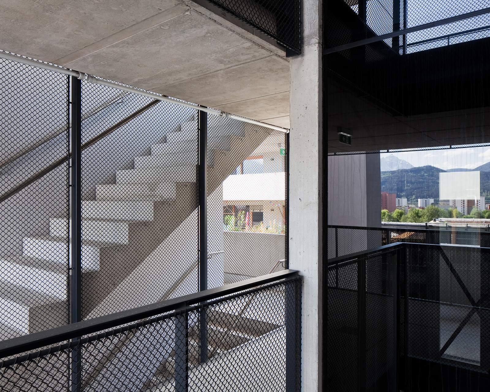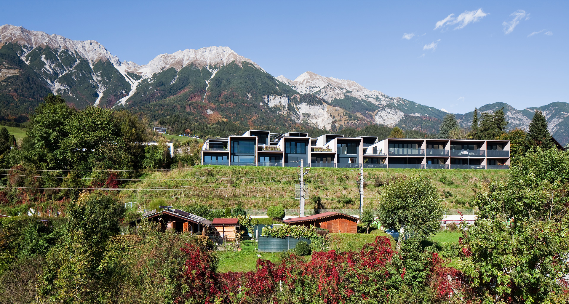 In der Kreuzgasse 32-34 wurden zwei südorientierte, terrassierte Gebäudezeilen mit 52 Wohnungen errichtet. Die unterschiedliche Höhenlage maximiert die Wohnqualität und sorgt auch im Erdgeschoss für Sonne und Ausblick. Das gesamte Grundstück bleibt verkehrsfrei. Die Garage gruppiert sich um einen teilweise offenen, begrünten Innenhof, der ausreichend Tageslicht einfallen lässt und für die Bewohner eine sichere, angenehme Zufahrt bedeutet. Die Südfassade öffnet sich mit großflächigen Fensterfronten, die Nordfassade ist bis auf die notwendigen Oberlichten weitgehend geschlossen – so erzielt man eine sehr gute Energiebilanz.