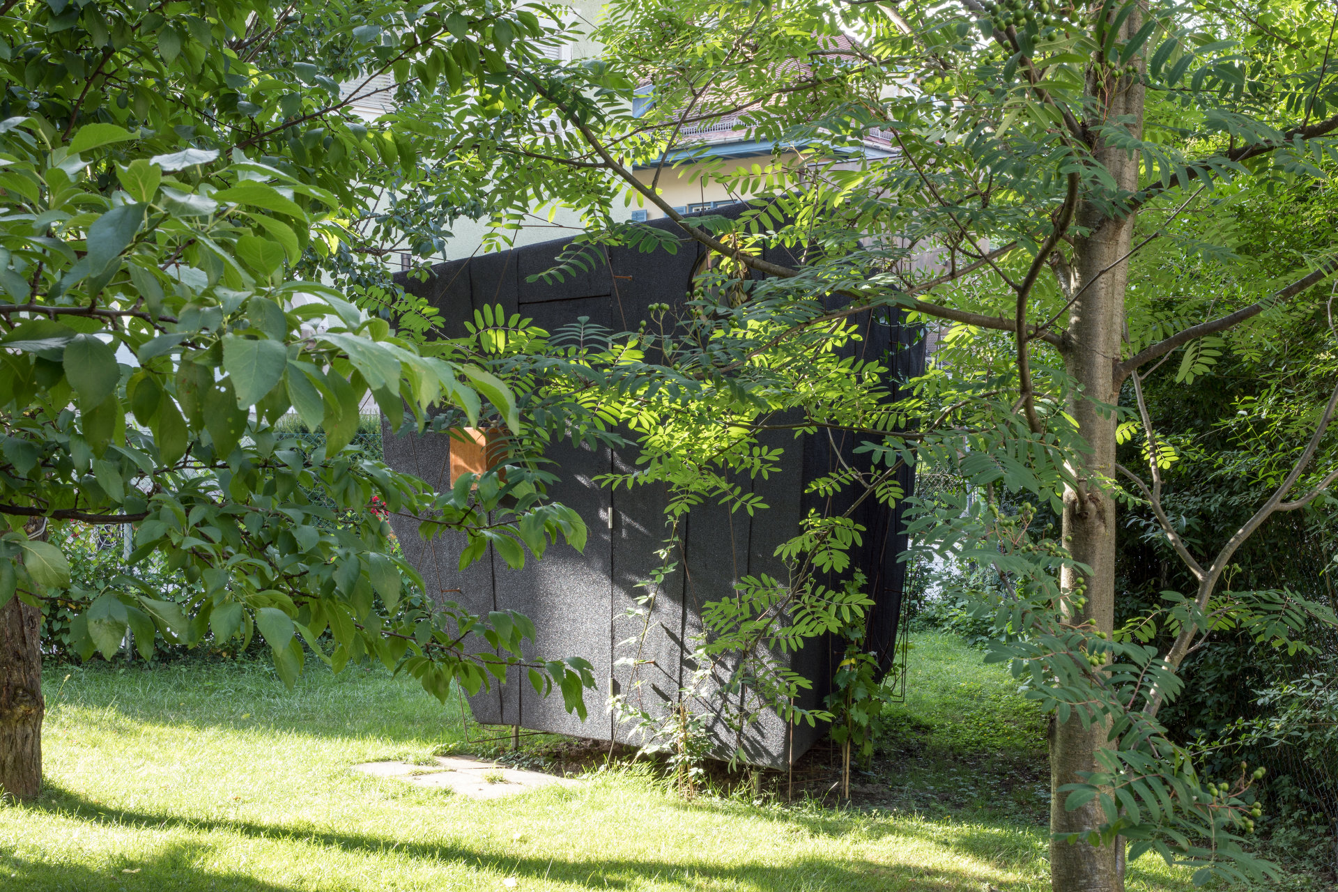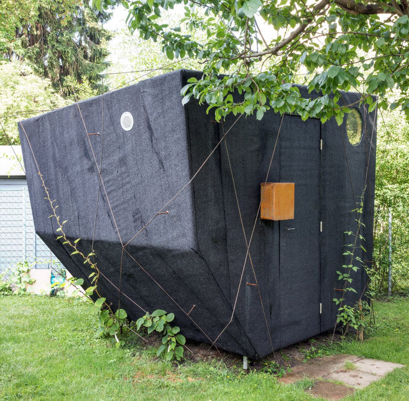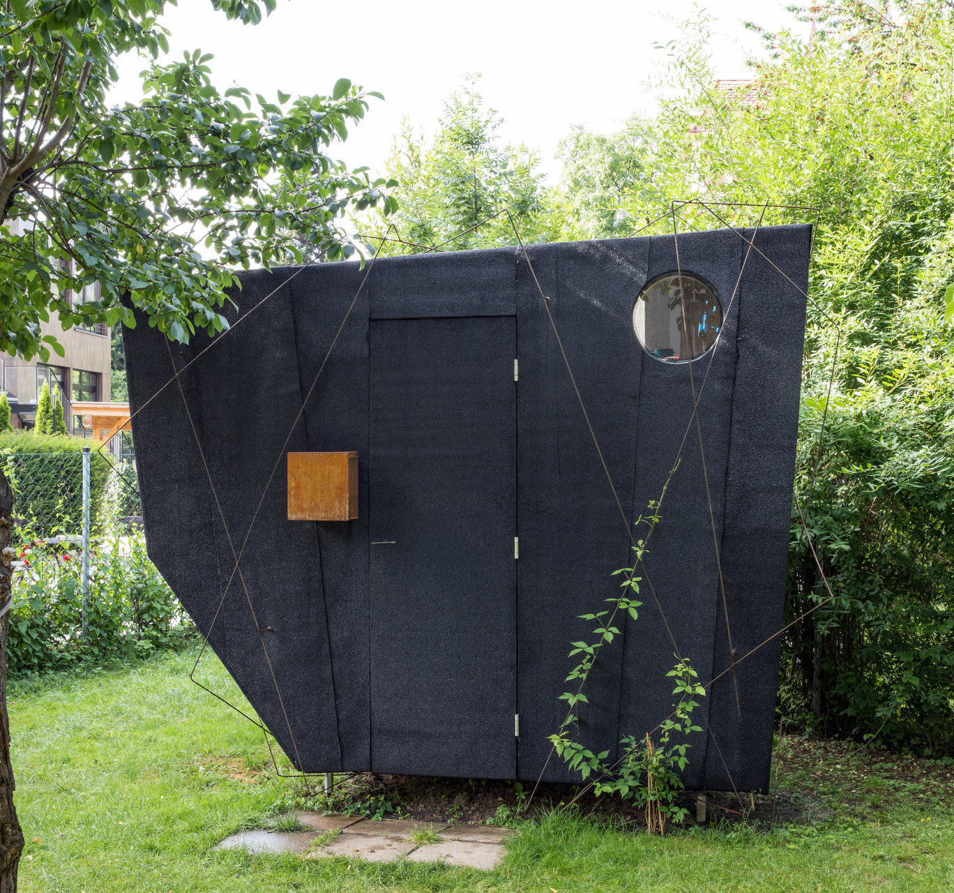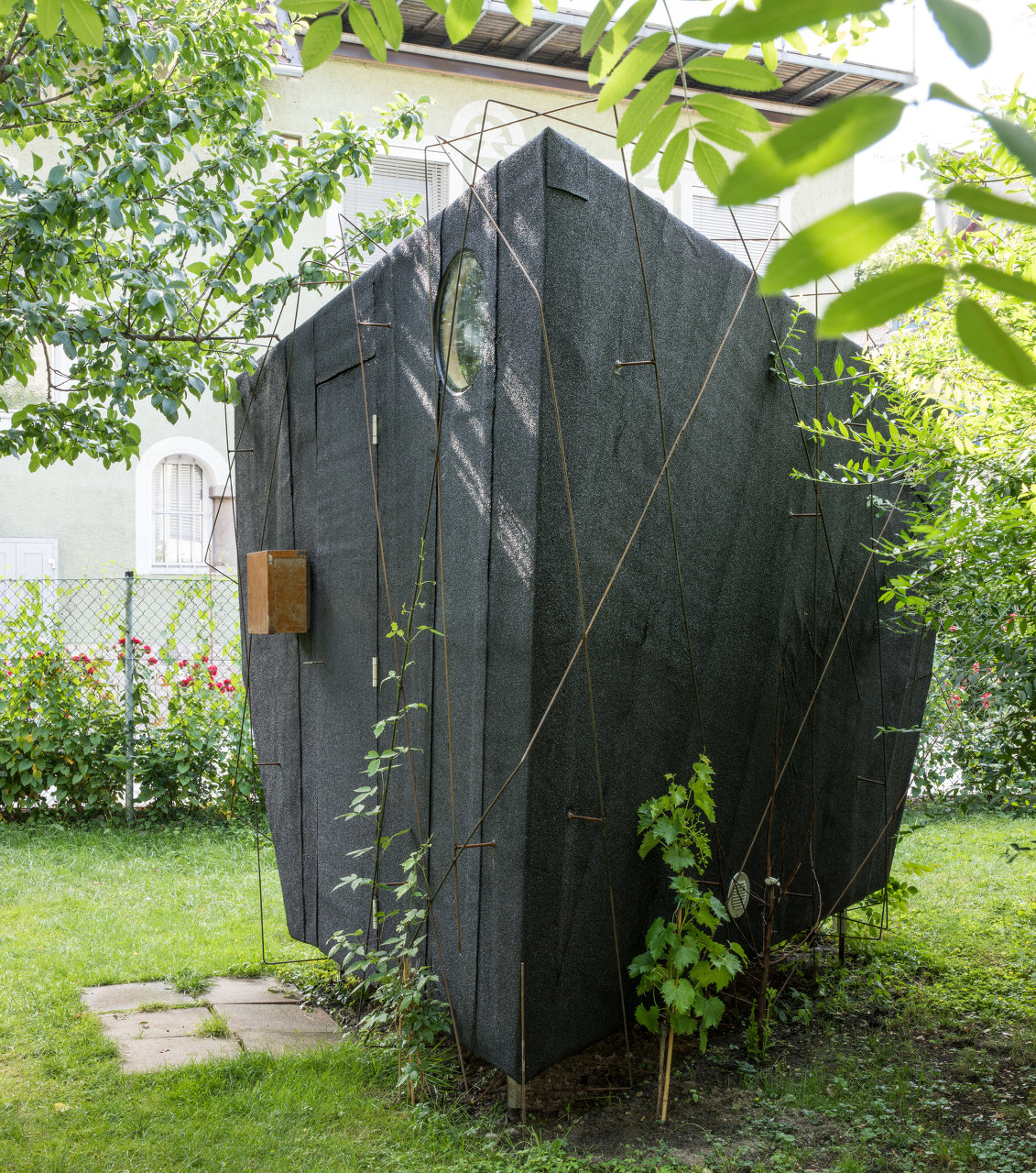 Feine Rankstäbe führen Kletterpflanzen rund um das Gebilde, das somit irgendwann einfach zu einem großen Busch werden wird. (Text: Architekten)