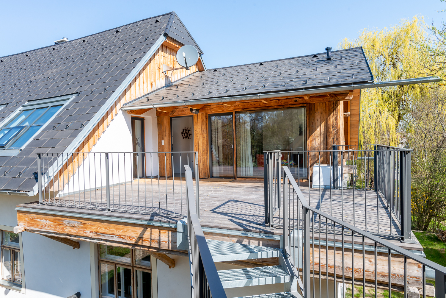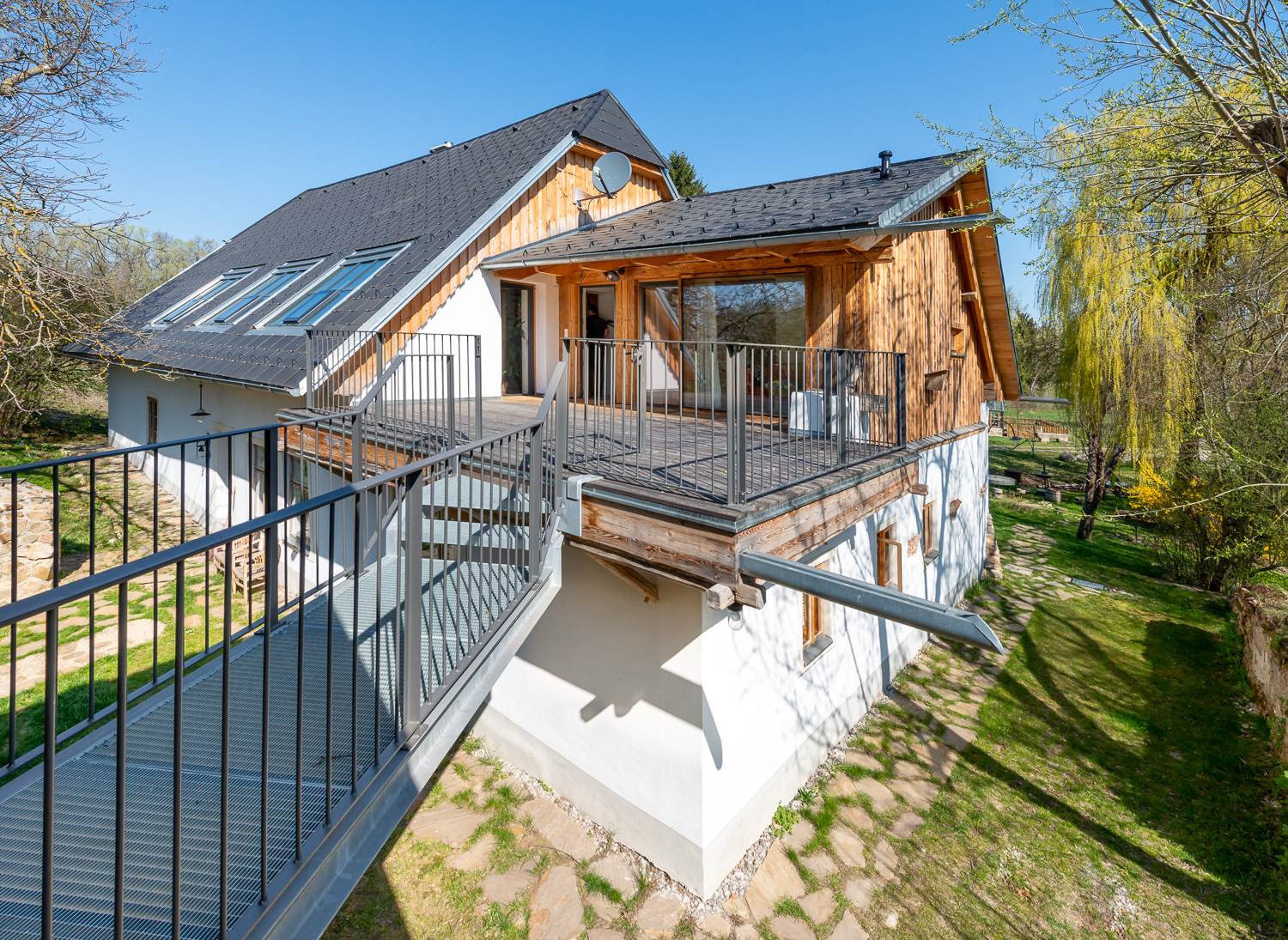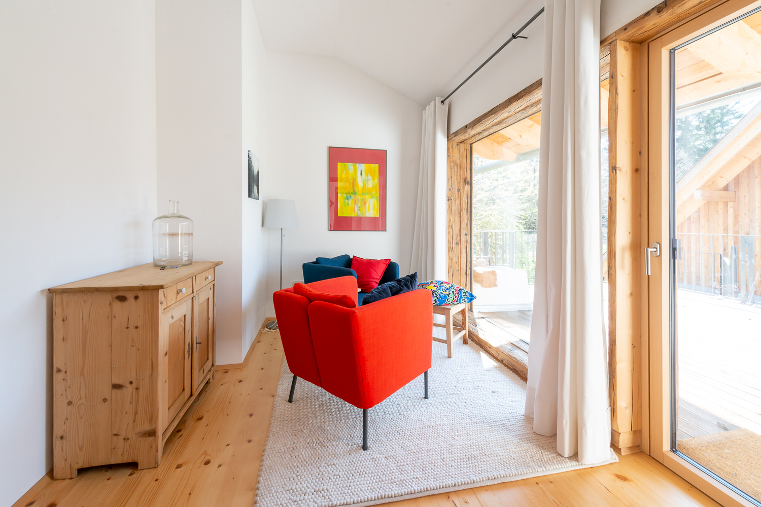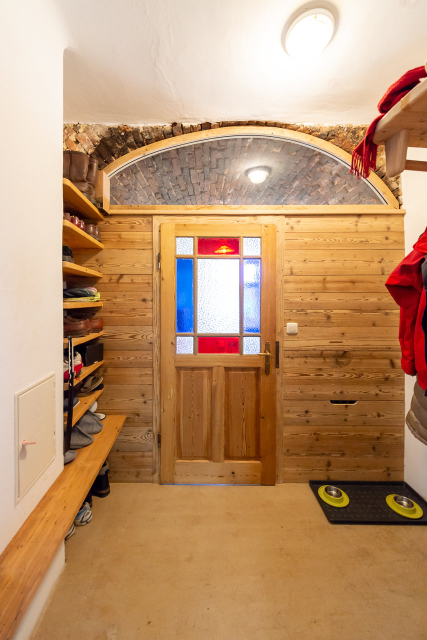 Das durch den Umbau anfallende Altholz wurde für den Bau der neuen Küche, der neuen Stiege oder neue Türen – in alter Mühlentradition oft in Kombination mit Schwarzstahl – wiederverwendet. In direkter Nachbarschaft zu vielen ebenfalls erhaltenen Elementen aus der Mühlenmechanik dominiert dieses Gestaltungskonzept das Gebäude und trägt so den ursprünglichen Charakter aus der eigenartigen vormaligen Nutzung auch in die Zukunft.