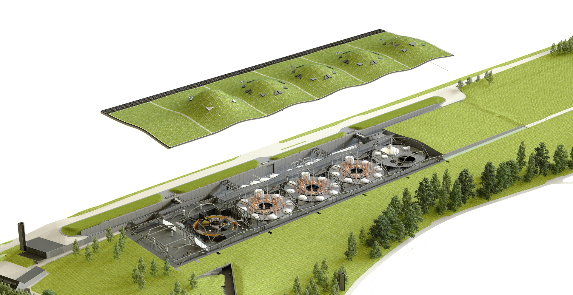 Dazu wurde ein bestehender Hügel abgetragen und das Firmengebäude in die Landschaft eingebettet. Das Gründach kommt auf einem Holzdach zu liegen und besteht aus fünf Kuppeln mit auslaufendem Vordach. In den vier gleich hohen Kuppeln ist die Fabrikation angesiedelt, in der fünften, höheren Kuppel ein Ausstellungsbereich mit Flachdach und Besucherzentrum. Bei diesem Projekt wurde das natürliche Baumaterial Holz mit modernsten, hoch komplexen Konstruktionsmethoden kombiniert. (Jurytext Holzbaupreis Oberösterreich 2019)