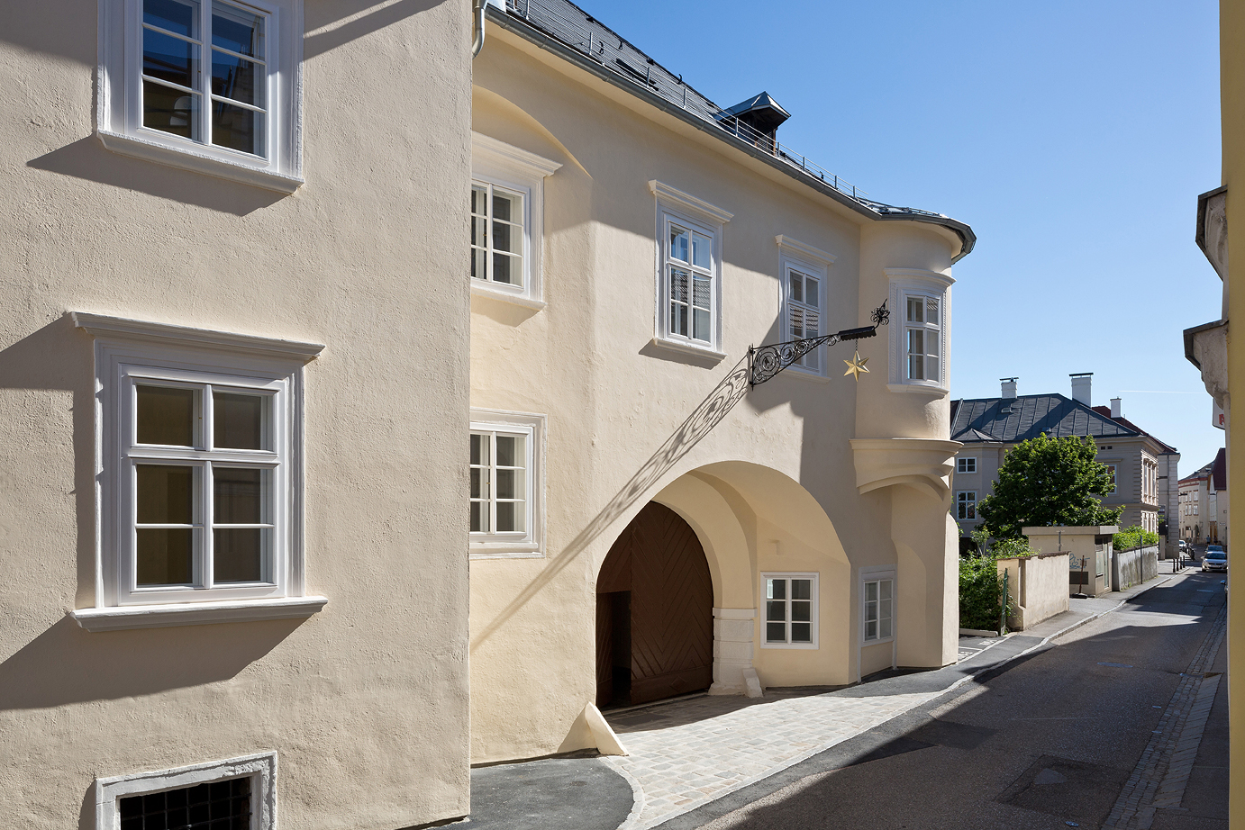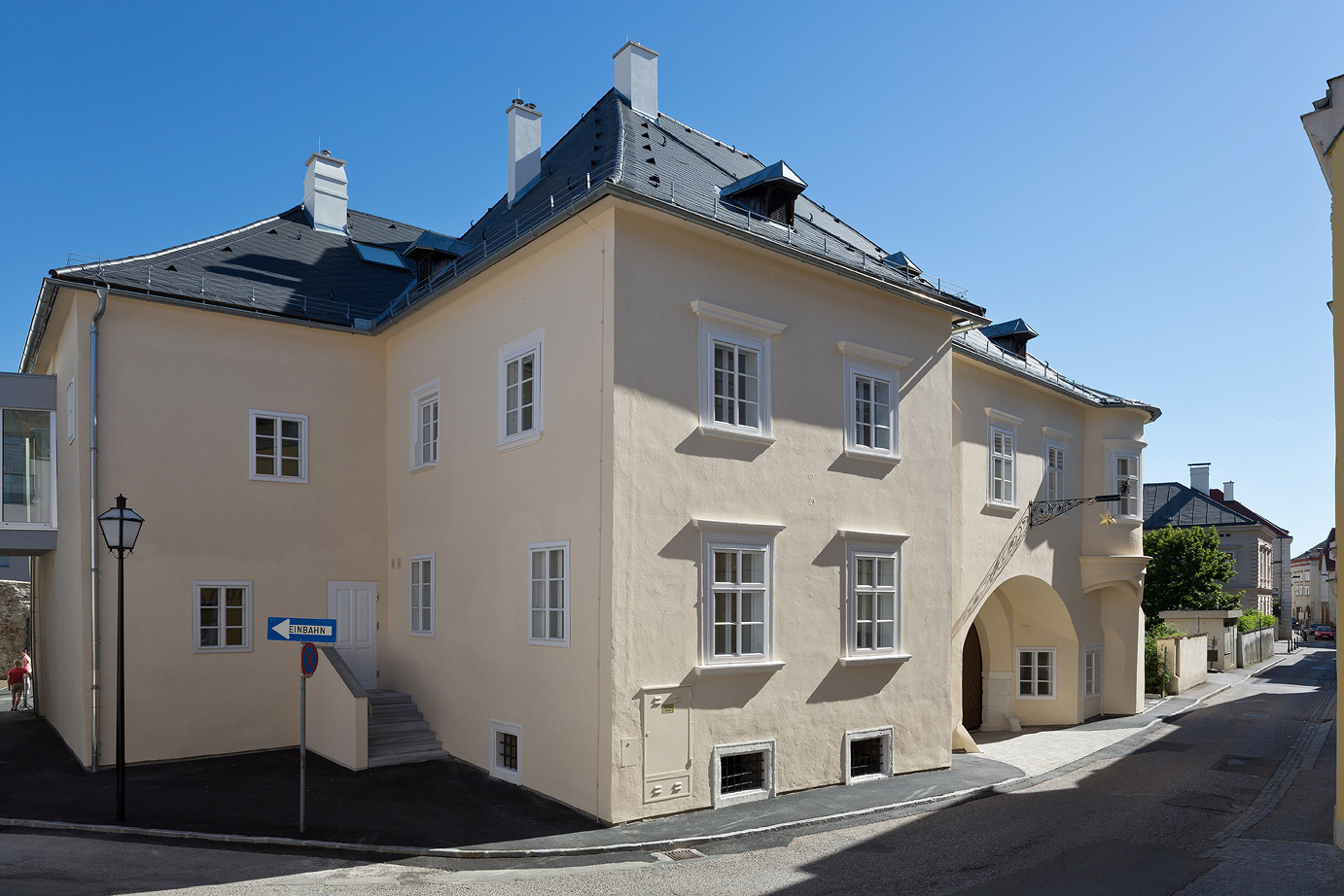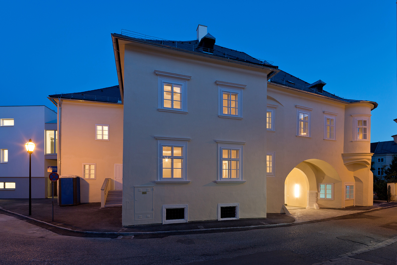 Ein Geschäftslokal, Gemeinschafts- und Praxisräumlichkeiten, Therapieraum, acht renovierte Wohnungen im denkmalgeschützten Haus sowie fünfzehn seniorengerechte, barrierefreie Wohnungen im Neubau stellen eine Aufwertung der Innenstadt dar. In enger Abstimmung mit dem Bundesdenkmalamt wurde der Altbau aufwändig restauriert.