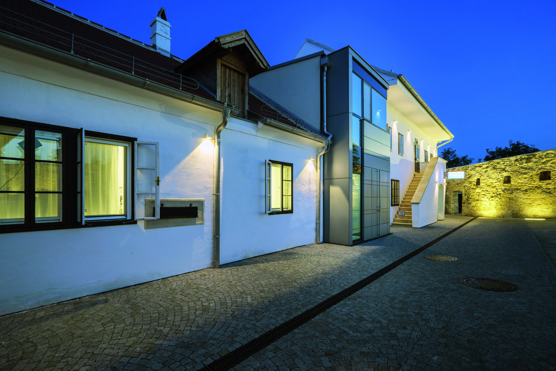 Durch zeitgemäß gestaltete Ergänzungen entsteht ein Spannungsfeld zwischen Vergangenheit und Gegenwart. Es kommt nun an diesem einen Ort zur Auseinandersetzung mit ästhetischen und innovativen Grundsätzen aus den Blickwinkeln jeder Epoche zugleich. (Text: Architekt:innen)