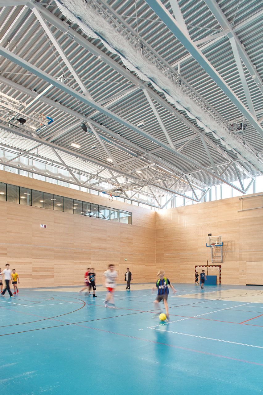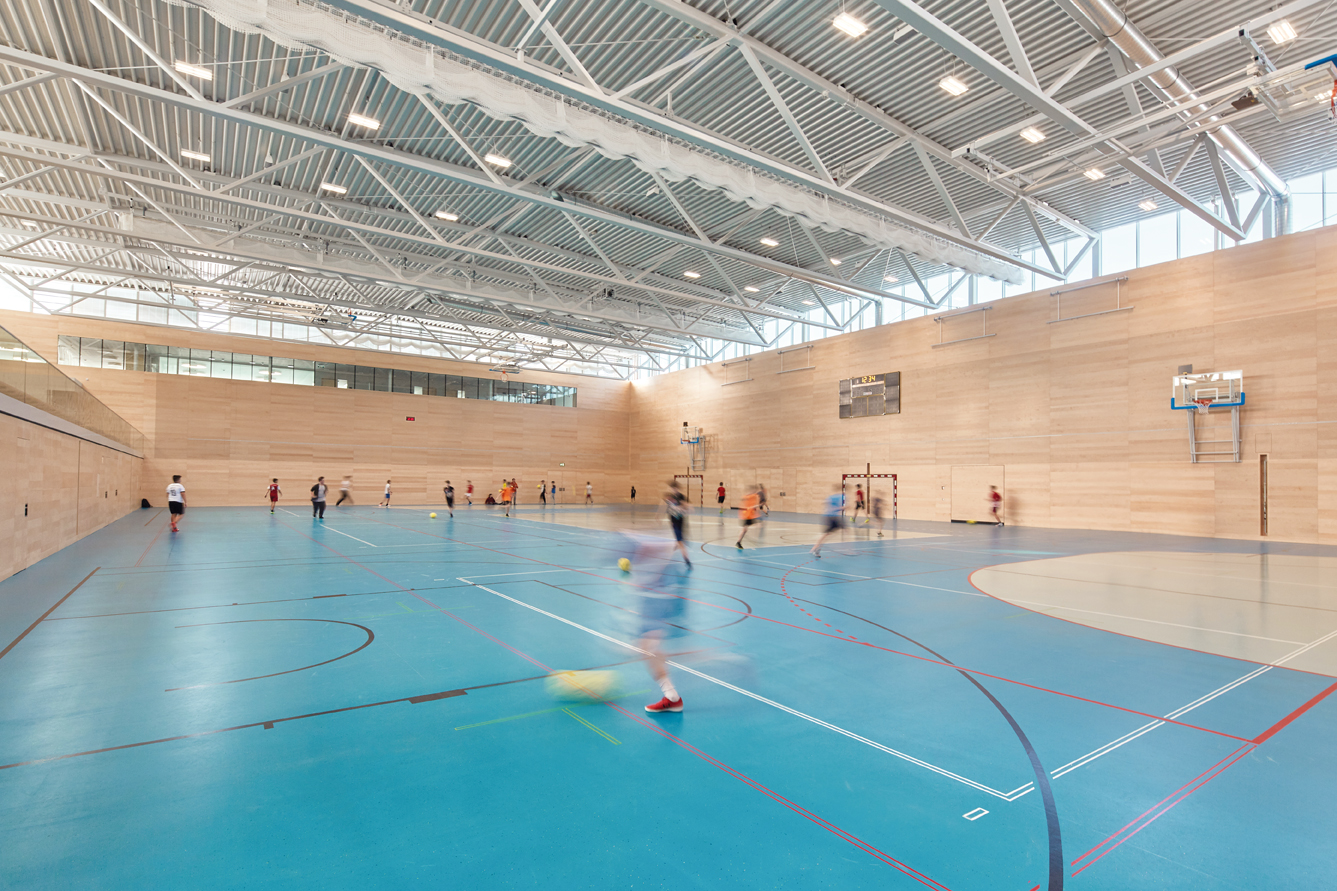 Die Sporthalle lässt sich in drei Sektoren teilen und bietet mit ihren Abmessungen von 45 m x 29,6 m und einer lichten Höhe von 9 m Standards für viele Sportarten, auf der Tribüne finden rund 300 Besucher Platz. Ergänzend gibt es noch einen 90 m² großen Bewegungsraum für Gymnastik, Yoga und Tanz. Büroflächen für die Salzburger Vereine und Sportverbände finden sich im Obergeschoß. Besonderes Augenmerk wird auf den Behindertensport gelegt: Für den Rollstuhlsport führt eine großzügige Rampe vom Foyer zum Spielbereich.