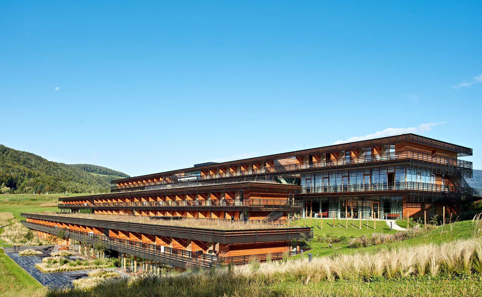 Zwölf Fußballfelder: So viel Boden wird in Österreich täglich der Kulturlandschaft entzogen, um Verkehrsflächen und Bauland zu schaffen. Aufs Jahr hochgerechnet, entspricht das einem Zehntel der Fläche Wiens. Die Österreicher sind Meister im Asphaltieren und Zersiedeln: Im Verhältnis zur Einwohnerzahl besitzt das Land das umfangreichste Straßennetz Europas, und knapp 80 Prozent aller Gebäude sind Einfamilienhäuser. Der grassierende Bodenfraß ist nicht nur ein ästhetisches, sondern ökologisches Problem, da unter diesen Bedingungen die Biodiversität leidet und Ökosysteme ihre Widerstandskraft verlieren. Wer heute ein großes Gebäude in die Landschaft stellt, darf sich daher auf Fragen nach seinem ökologischen Gewissen gefasst machen.