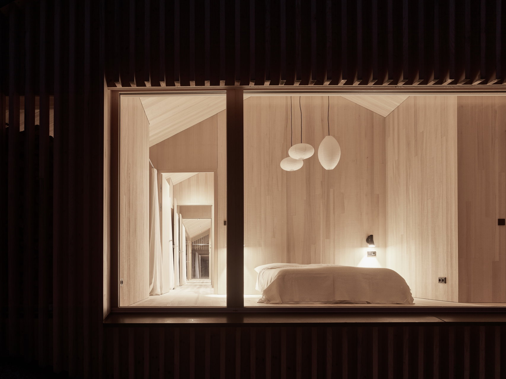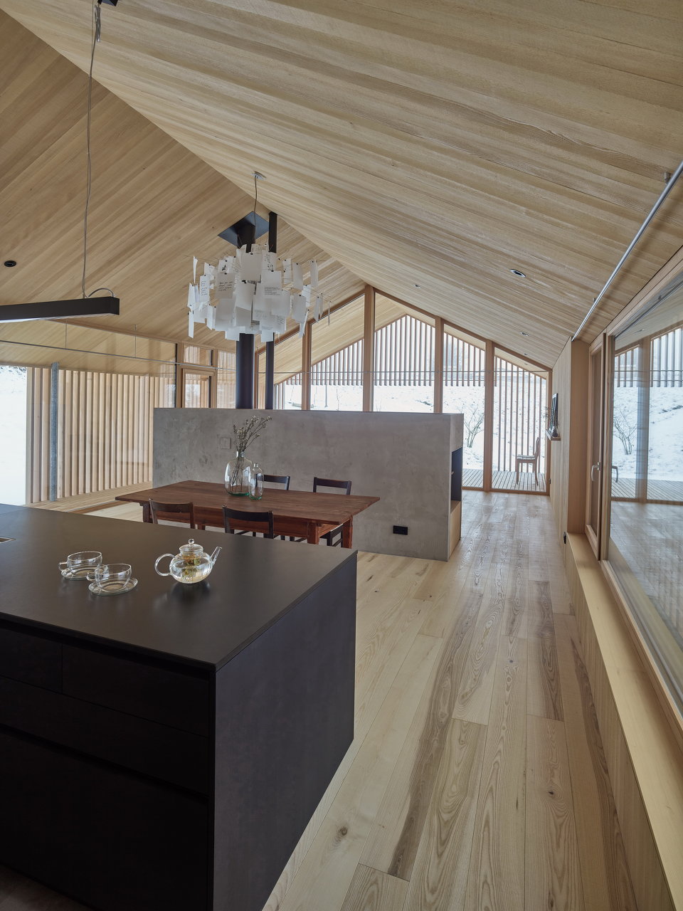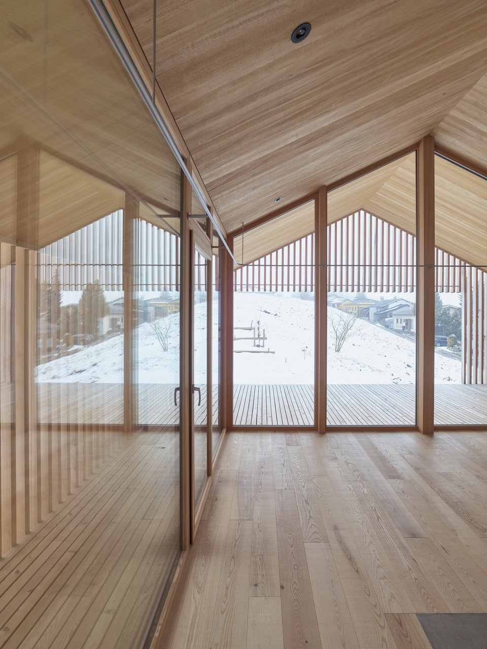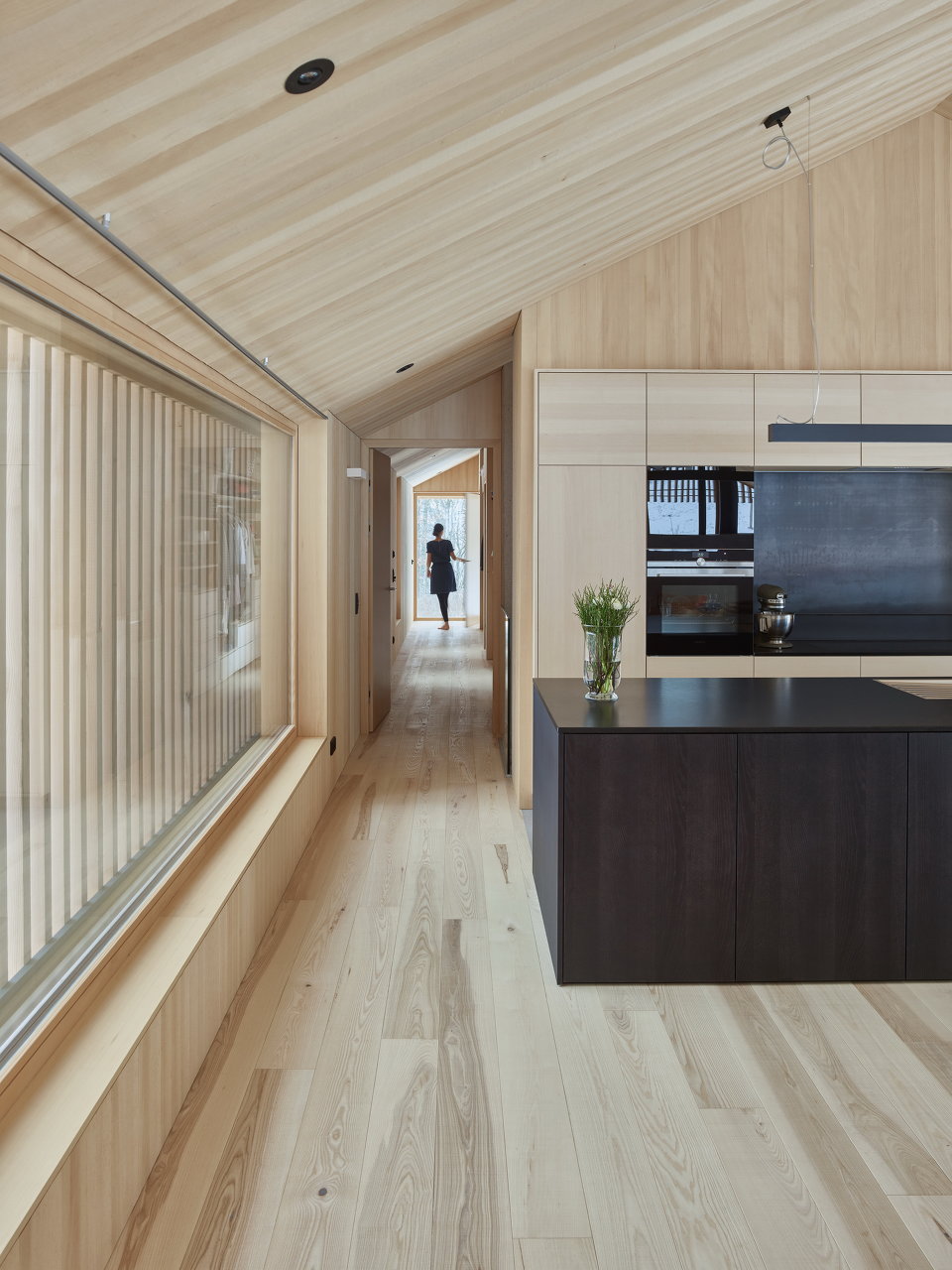 Sowohl Architektur als auch Holzbau des Hauses stammen aus Vorarlberg. Mit hohem Präzisionsgrad wurden die Elemente geplant, vorgefertigt und auf der Baustelle montiert. (Text: Architekt:innen)