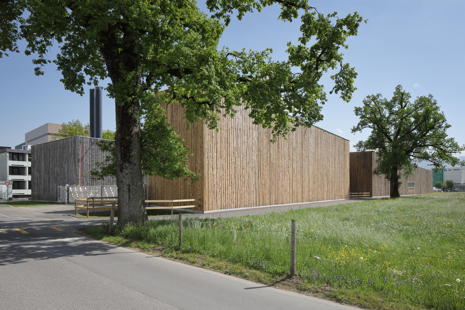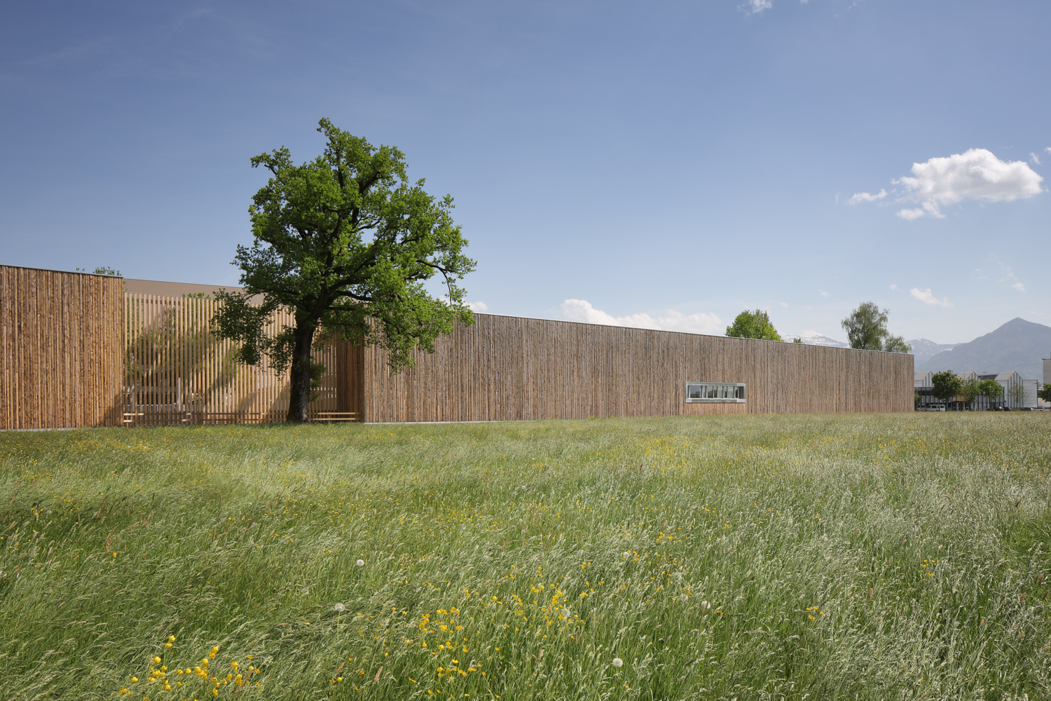 Die klassische Waldkantenleiste wird weitestgehend den untergeordneten Verwendungszwecken der Holzverwertung zugeführt, um nicht zu sagen, weggeschmissen. Als Fassadenbekleidung eines äußerst direkten und pragmatischen Ingenieurholzbaues mit großer Längsentwicklung kommt die Waldkante hier mit der gebotenen Grobheit zu hohen Ehren. Die Holzkonstruktion ist selbsterklärend einfach und beeindruckend zugleich mit ein paar statischen Finessen. (Vorarlberger Holzbaupreis 2019 - Begründung der Jury)
