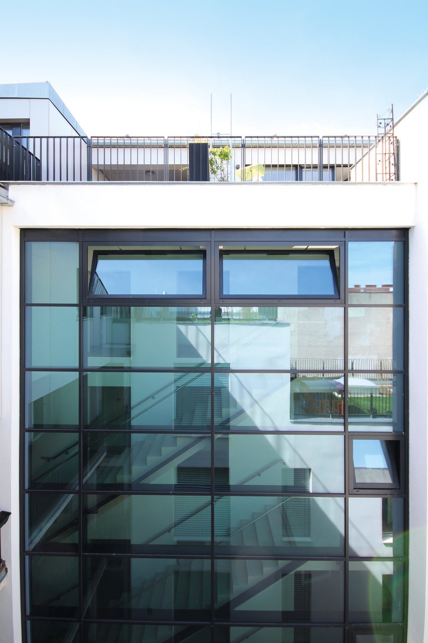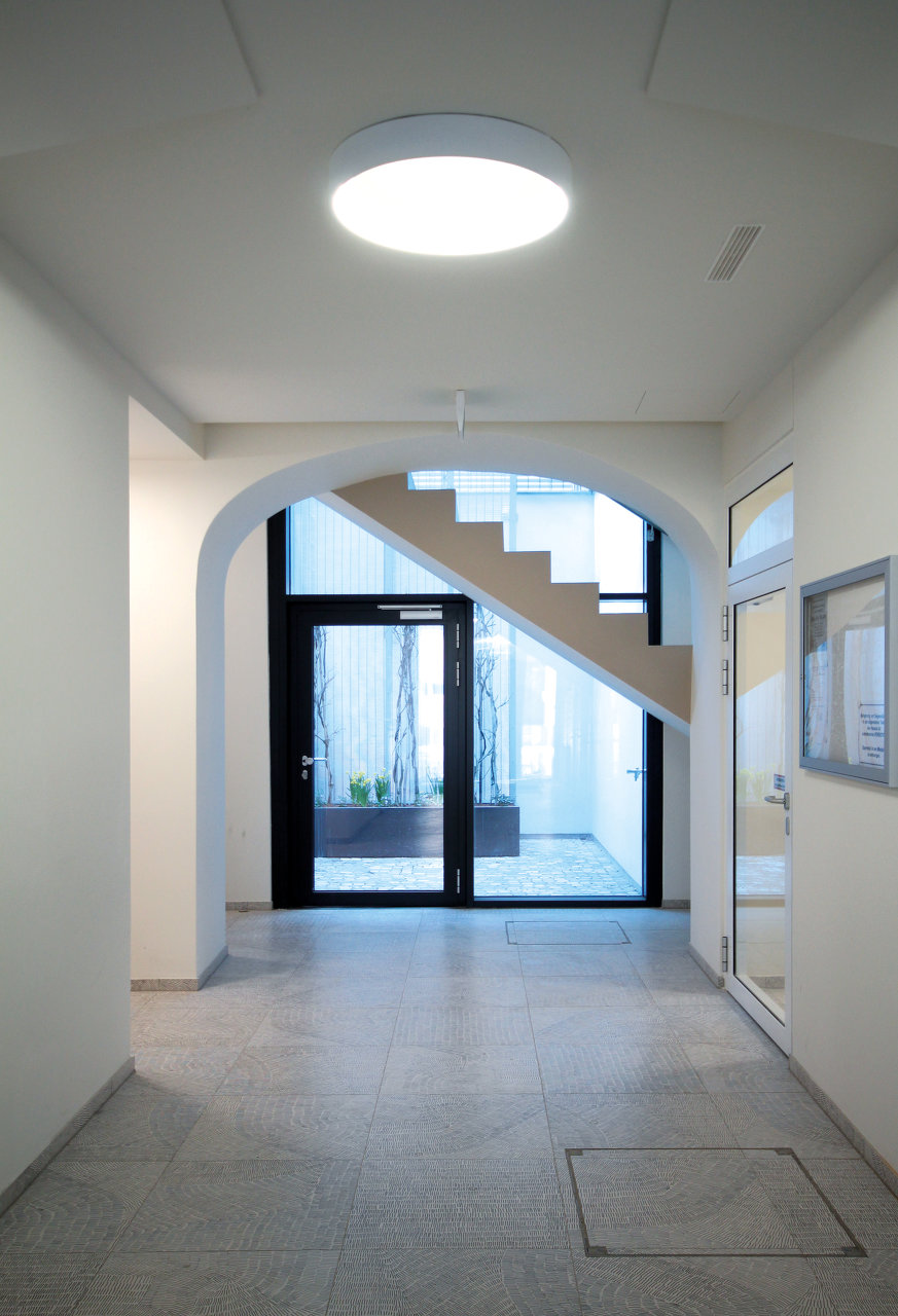 Eine Optimierung der Erschließungsflächen konnte durch den Abbruch des einsturzgefährdeten Stiegenhauses, die Errichtung eines neuen, zeitgemäßen Stiegenhauses im Innenhof und eine Reduktion der Gangflächen erreicht werden. Eine Aufzugsanlage gewährleistet die barrierefreie Erschließung aller Wohnungen.