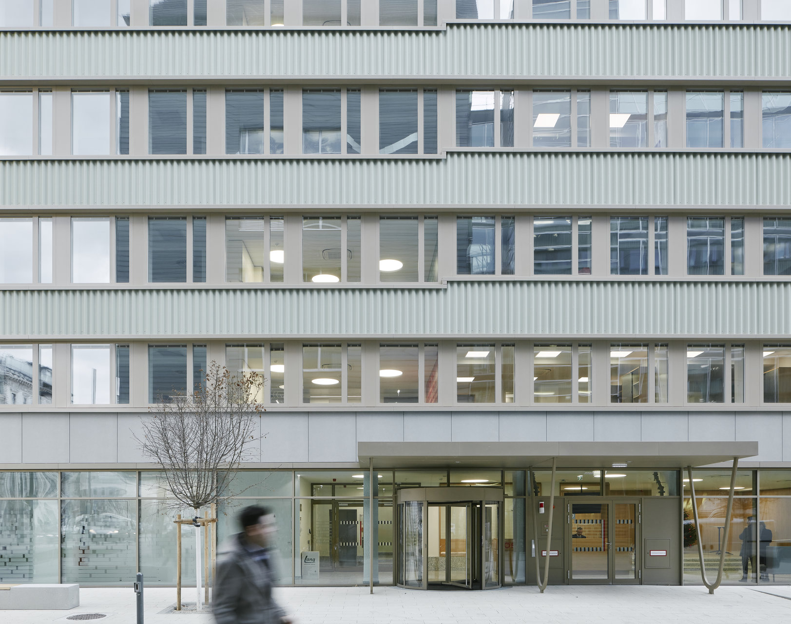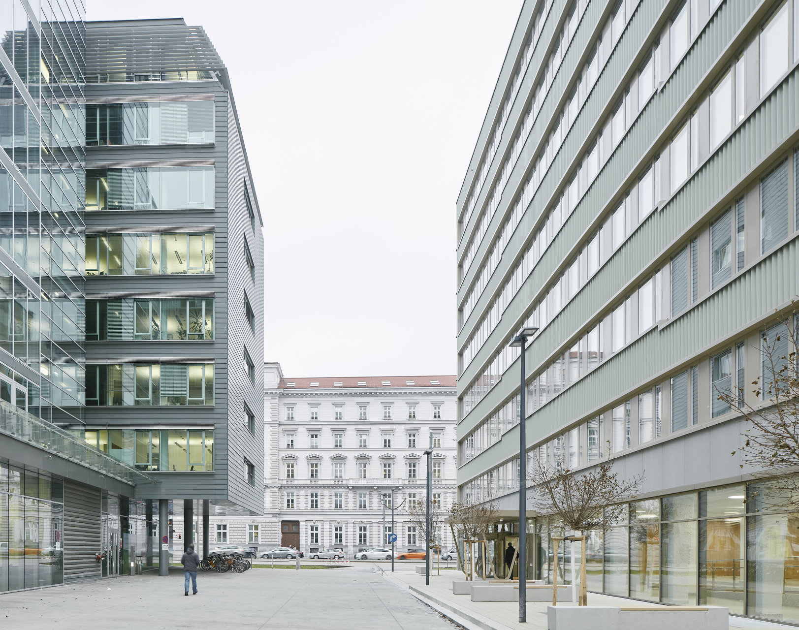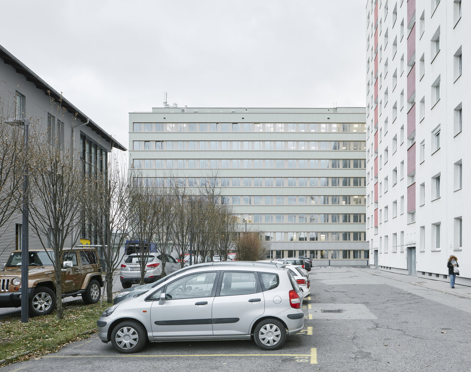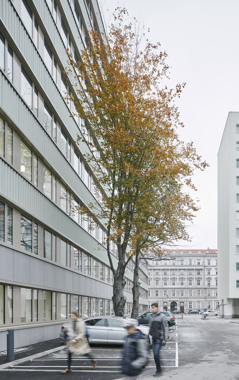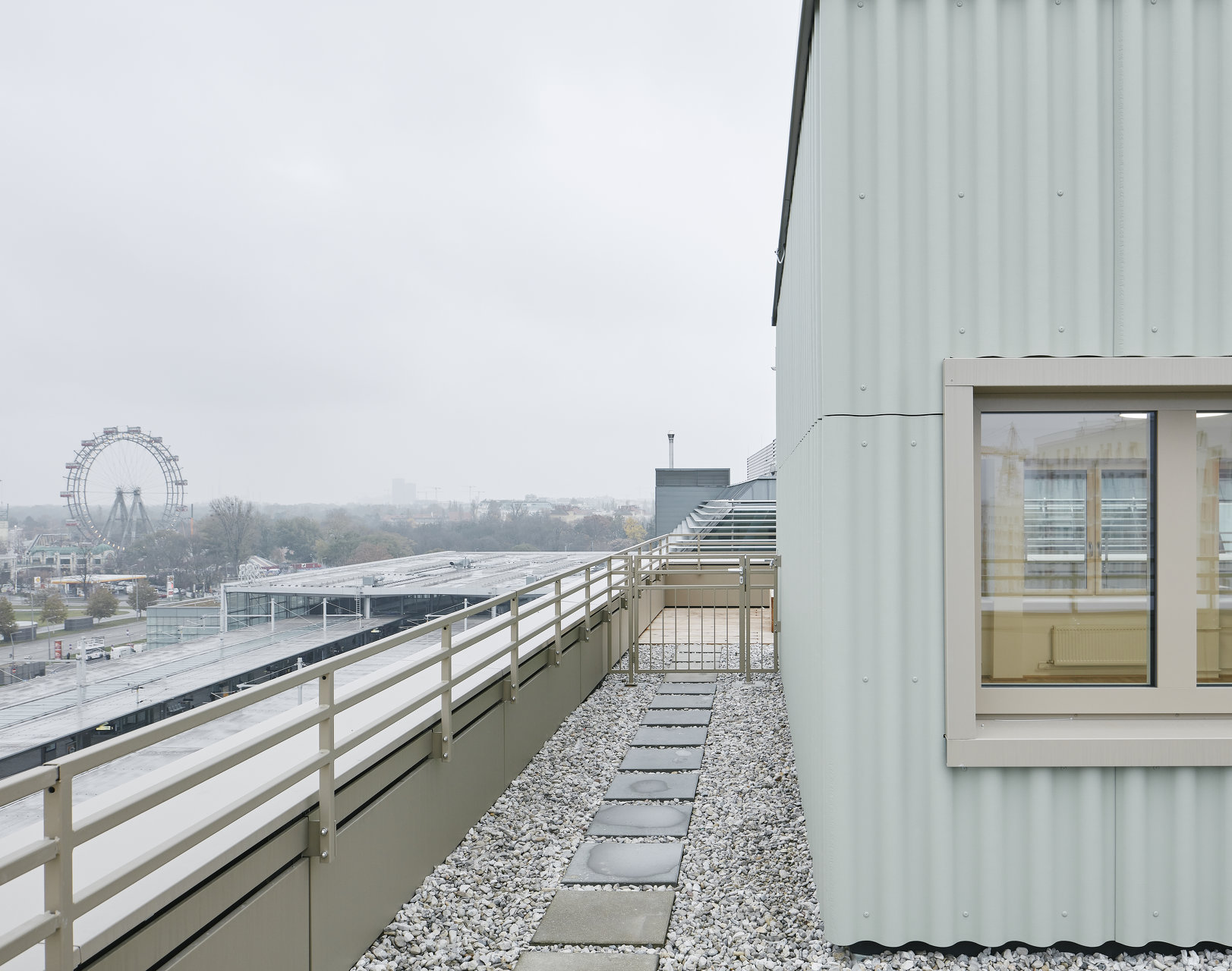 Die ÖBB wollte ihre Standorte um den Praterstern herum zusammenlegen und sich intern neu organisieren und ihre einst qualitativ gebaute Immobilie – aus den 60er Jahren – zu einem zeitgemäßen Bürokomplex adaptieren. Unter anderem wurden zwei von vier Stiegenhäusern entfernt, die Fenster ersetzt und durch einen moderne Sonnenschutz ergänzt. Eine hellgrüne, gerillte Welletrnithülle mit Aluminiumprofilen erneuert die Fassade, die neu gedämmt und hinterlüftet wurde.