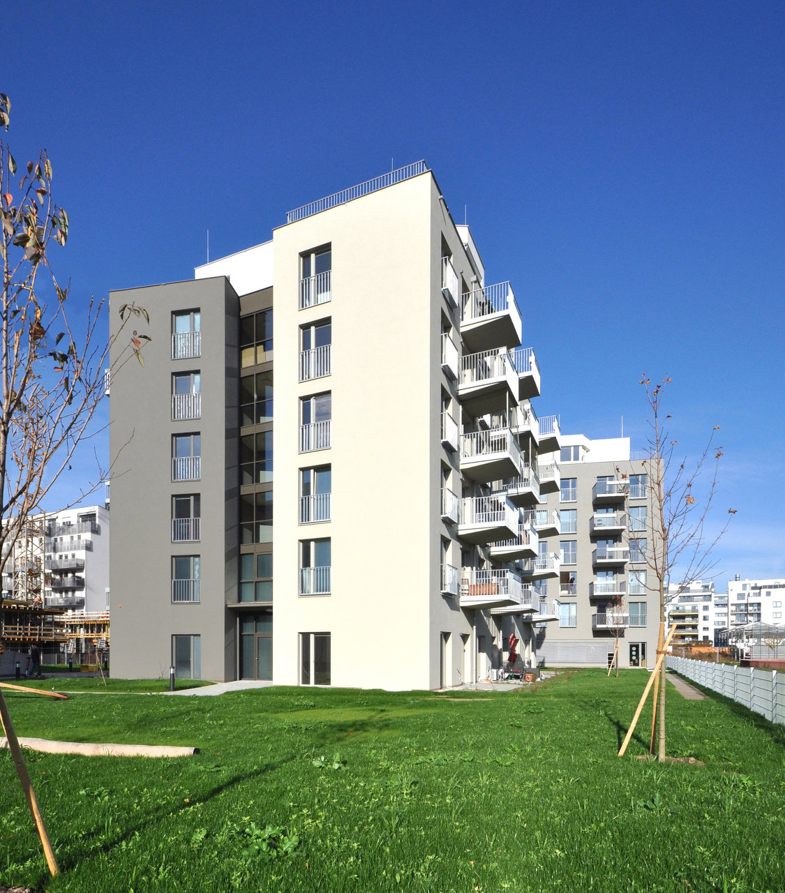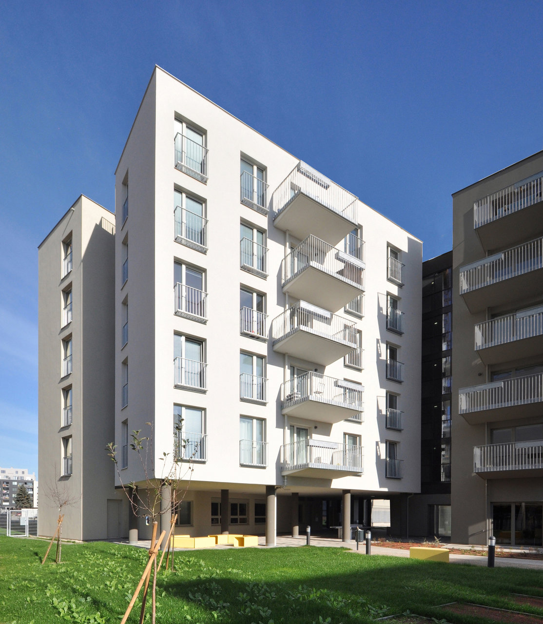 Für den Bauträgerwettbewerb für das Gebiet Kagran West III im Jahr 2015 brüteten die Architekten des Büros WUP-Wimmer und Partner (Helmut Wimmer, Bernhard Weinberger, Andreas Gabriel) darüber, wie sie dem Thema mit mehr als den üblichen netten Zuckerln gerecht werden können. Seit nicht ganz einem Jahr ist das Produkt der Überlegungen, das vom Bauträger Building Development Network umgesetzt wurde, fertig und eingewohnt.