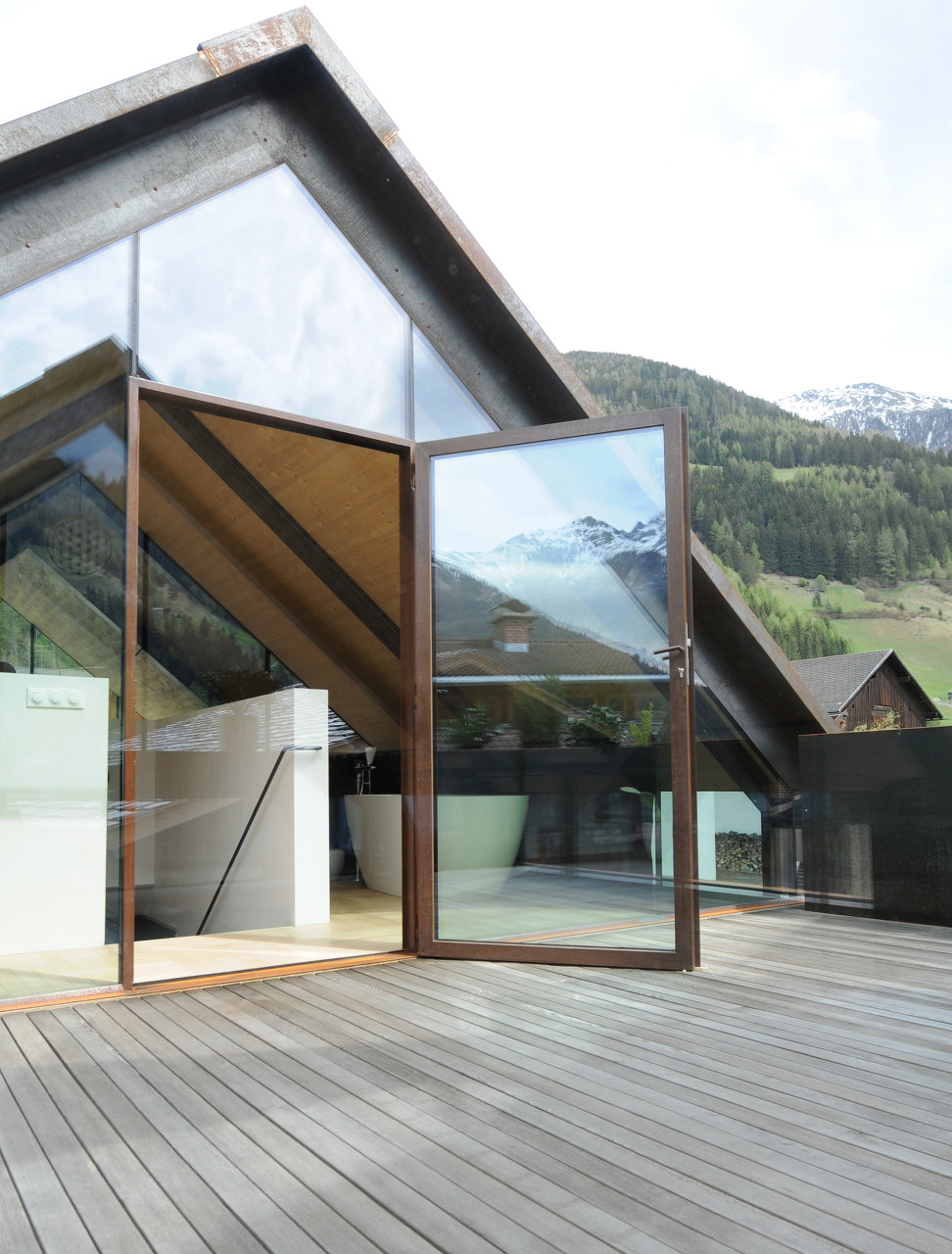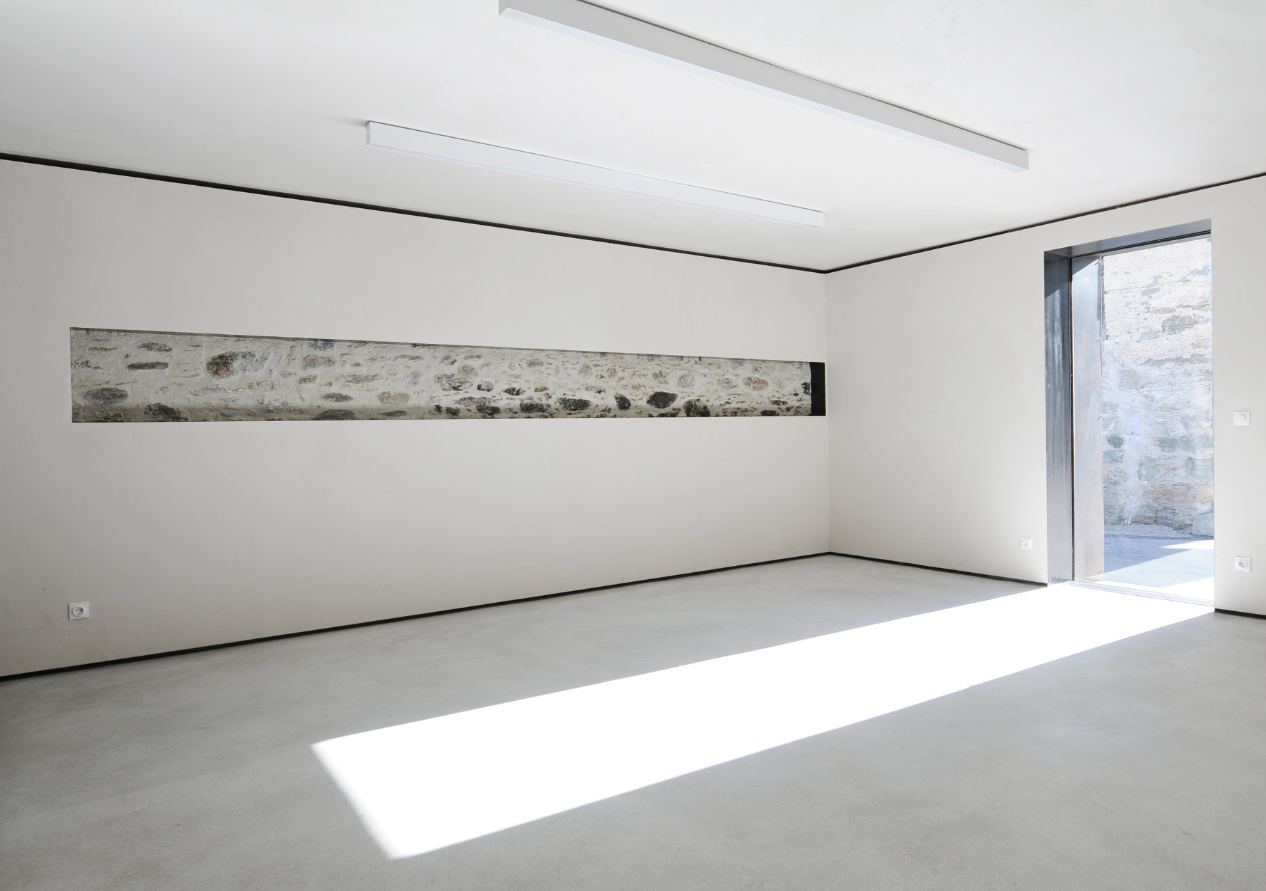Das Erdgeschoß wird mit Galerie und Depot zum halböffentlichen Raum. Die Obergeschoße – eine Mischung als Atelier und Wohnfunktion – lassen in diffiziler Vielschichtigkeit die Zusammenhänge aus Raum, Material und Landschaft spüren. (Text: Martina Pfeifer Steiner, nach Texten von Architekt und Bauherr)