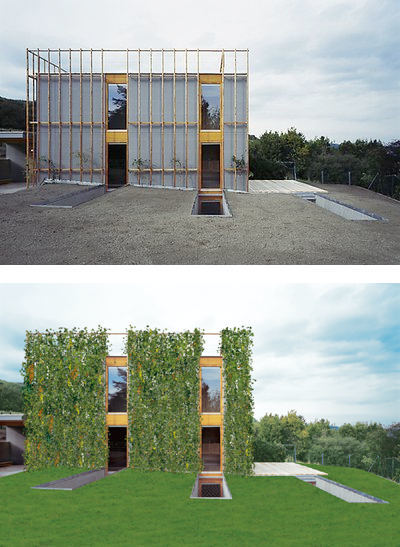 30 cm Abstand garantieren, dass die Eternitverkleidung nicht leidet. Mit den Gartenarchitekten neubert & fuchs oeg (plan2) wurden Pflanzen gewählt, die das Haus das ganze Jahr erblühen lassen. Im Frühling werden Blauregen und weiße Glyzinien Akzente setzen, im Sommer Jasmintrompeten und Kletterrosen orange und rot sprießen, im Herbst rankt rotlaubiger Wein die Ecken hoch. Im Winter zeigt sich das Haus ohne Pflanzenkleid Eternitgrau mit hellen Fenstern.