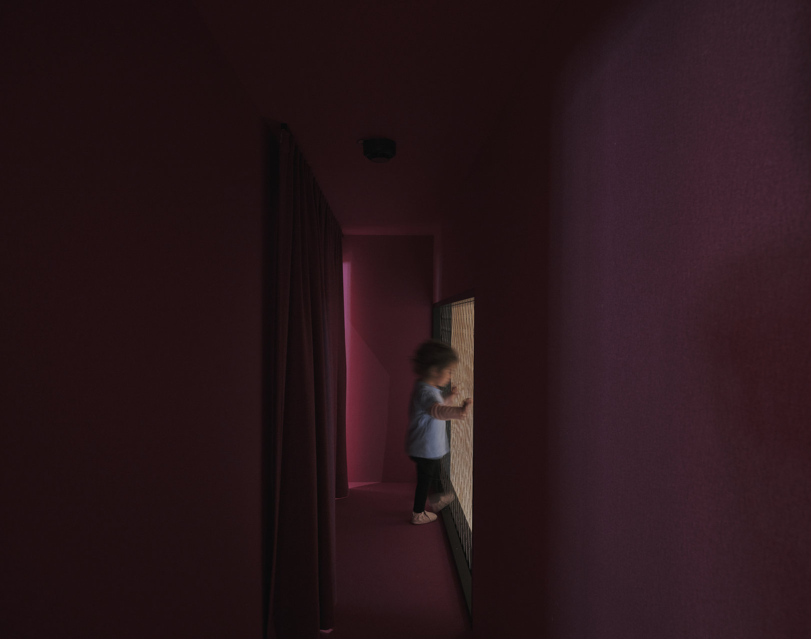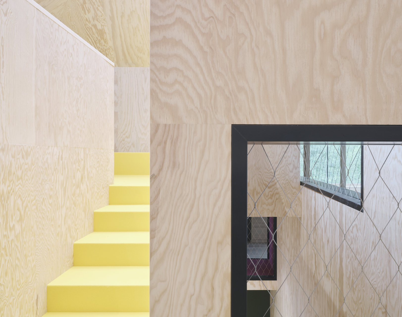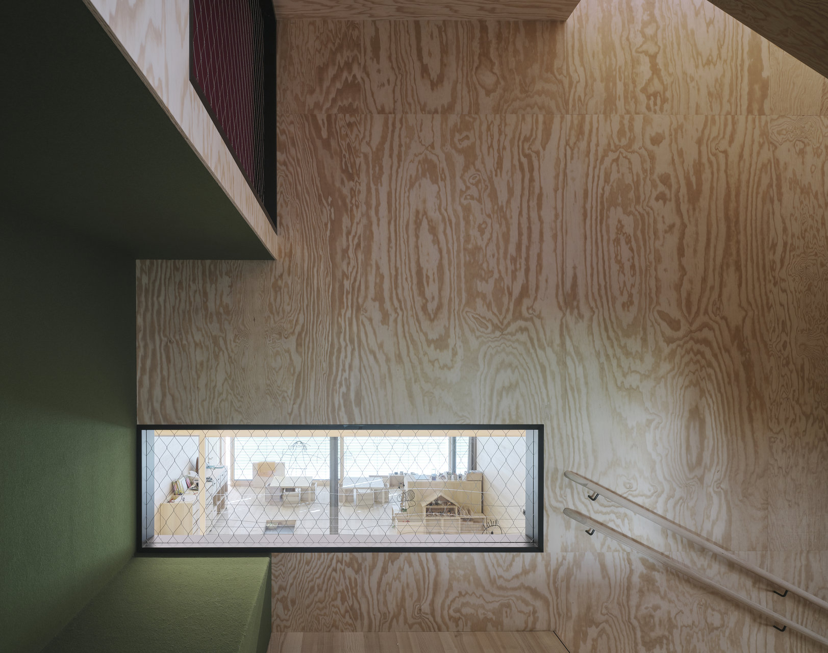 Der sägeraue, unbehandelte Eschenholzboden lädt zum Sitzen und Liegen ein. Licht, Farbe und Geruch der natürlichen Materialien lassen eine behagliche Atmosphäre entstehen. Auch das Stiegenhaus wird seinem Namen gerecht und ist ebenfalls zu einem qualitativen Raum geworden, statt nur Erschließungselement zu sein. Es ist als Haus im Haus gestaltet, mit Nischen, die teils in intensive Farben getaucht sind und zum Verweilen einladen. Das neue Kinderhaus in Kennelbach ist ein Ort für das gemeinsame Wachsen geworden – für die persönliche Entwicklung von Kindern und Eltern und die Entwicklung einer guten Dorfgemeinschaft. Dafür ist es nicht nur Motor, sondern in seiner Umsicht und Vielfalt bereits sichtbarer Ausdruck. (Text: Verena Konrad/Clemens Quirin)