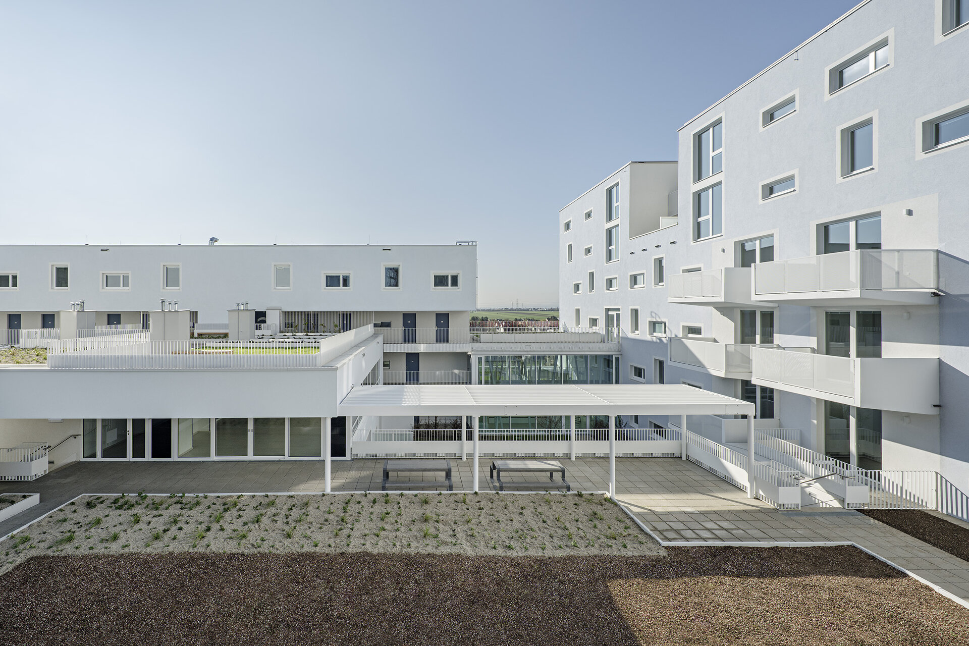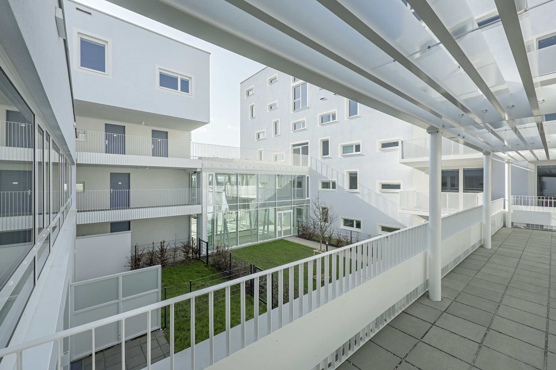 Und wo sind die Abstriche? Mehr als Stahlbeton, in Wärmedämmung verpackt, ist konstruktiv zu diesem Preis nicht zu haben; Sanitärbereiche und Küchen sind minimalistisch ausgestattet; die Balkone und Loggien entwässern über kleine Wasserspeier, die sich in der Fassade wichtigmachen, und die Details der Geländer sind mit „schlicht“ nur unzureichend beschrieben. Zumindest bei den Fenstern aus Holz und Aluminium wurde nicht gespart. Trotzdem: Für dieses Segment des geförderten Wohnbaus ist hier eine hervorragende Lösung entstanden, an der sich der „Gemeindebau neu“ zu messen haben wird.