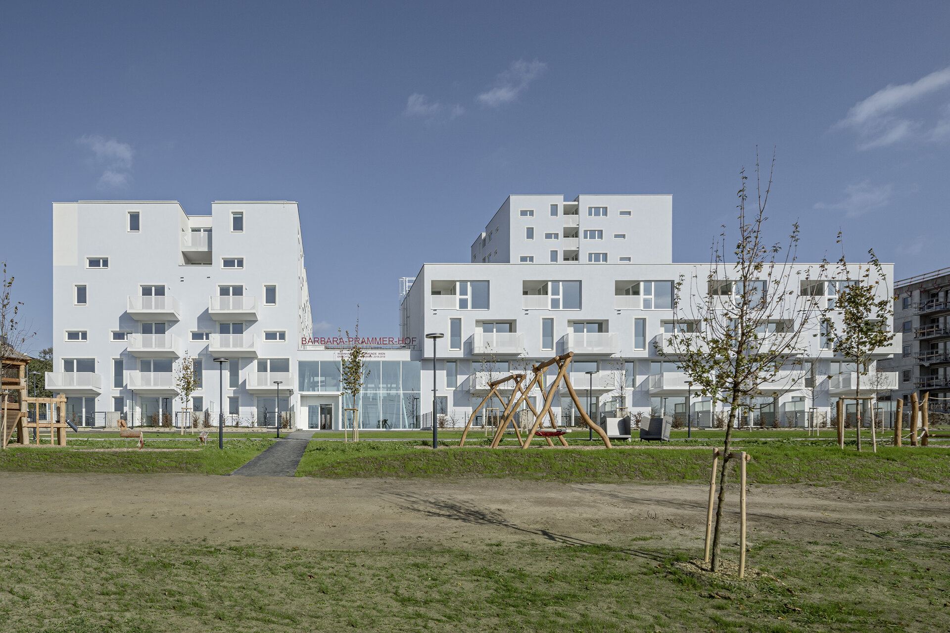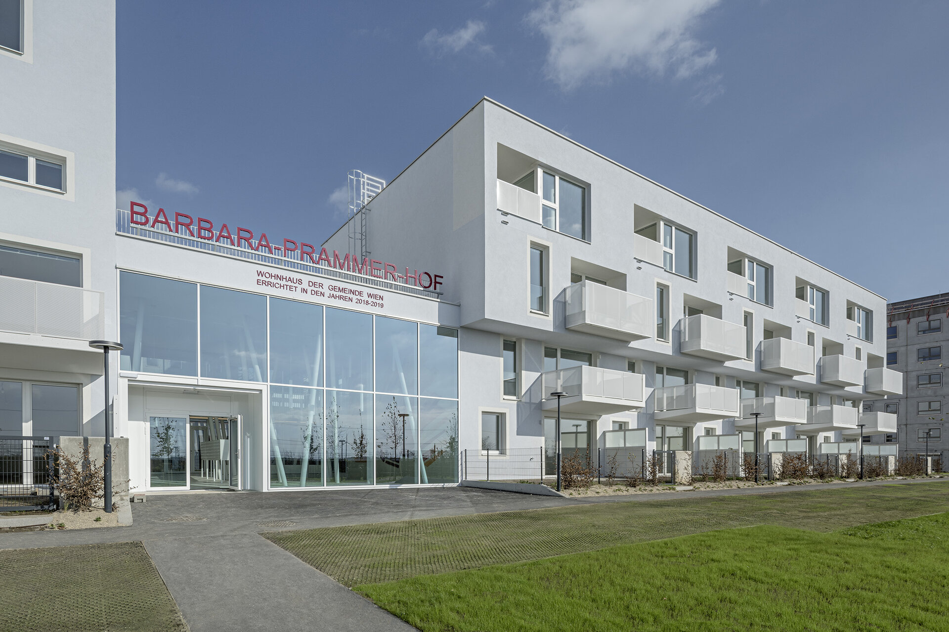 Der erste fertiggestellte „Gemeindebau neu“ in der Fontanastraße, in alter Gemeindebautradition Barbara-Prammer-Hof genannt, weist in eine andere Richtung. Sein Entwurf ist Ergebnis eines zweistufigen Architekturwettbewerbs, in dem dieselben Kriterien galten wie im geförderten Wohnbau, also Architektur, Ökonomie, Ökologie und soziale Nachhaltigkeit, allerdings gebunden an Errichtungskosten von 1850 Euro pro Quadratmeter Wohnnutzfläche und unter Wegfall des Eigenmittelbeitrags, der im geförderten Wohnbau von den Nutzern verlangt wird. Das Resultat beweist, dass das möglich ist, aber zeigt auch, wo Abstriche gemacht werden müssen.