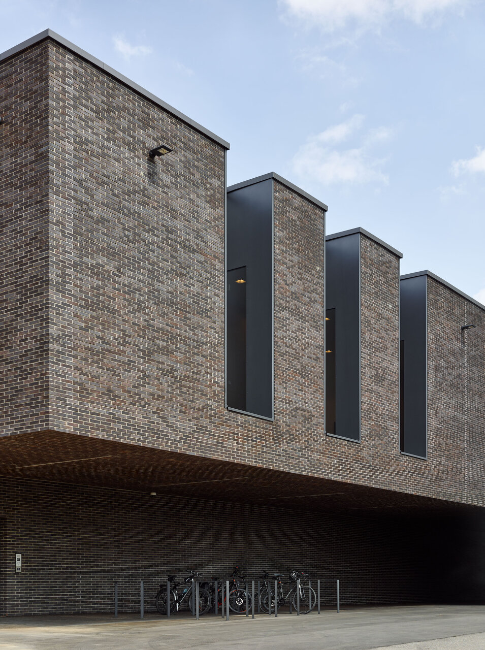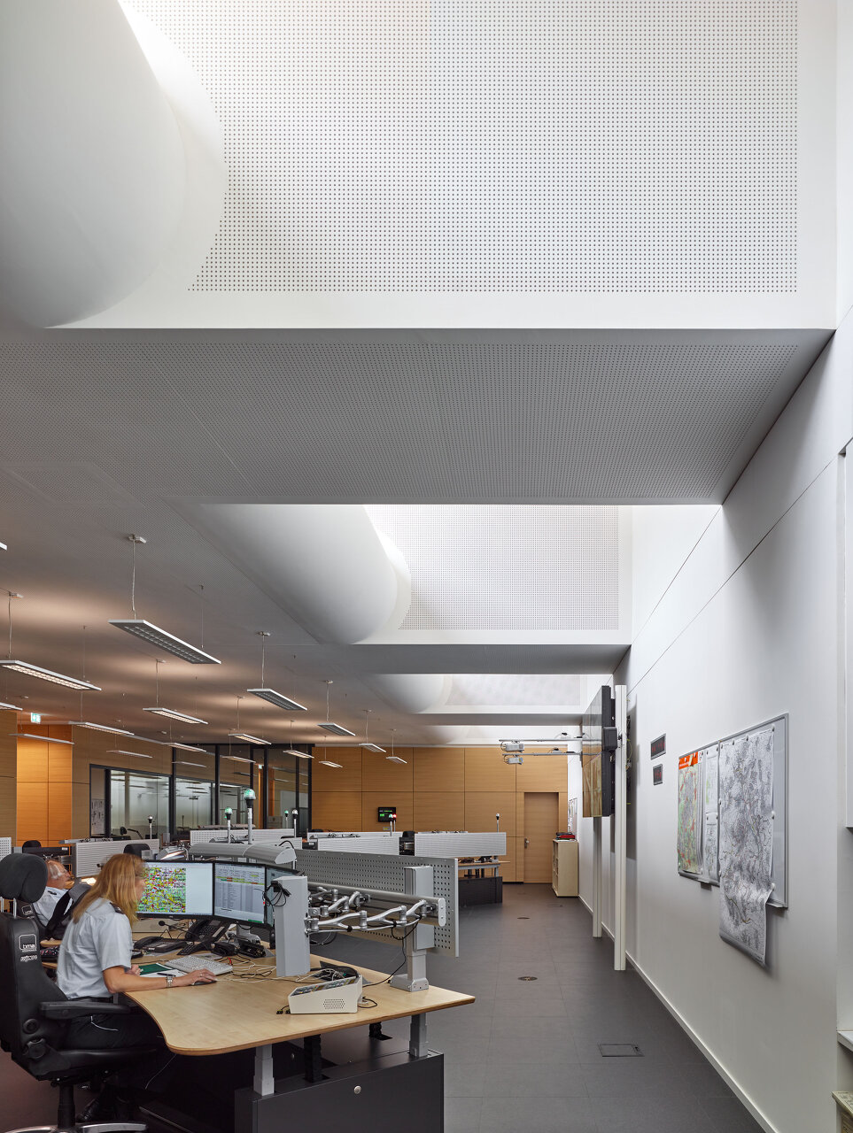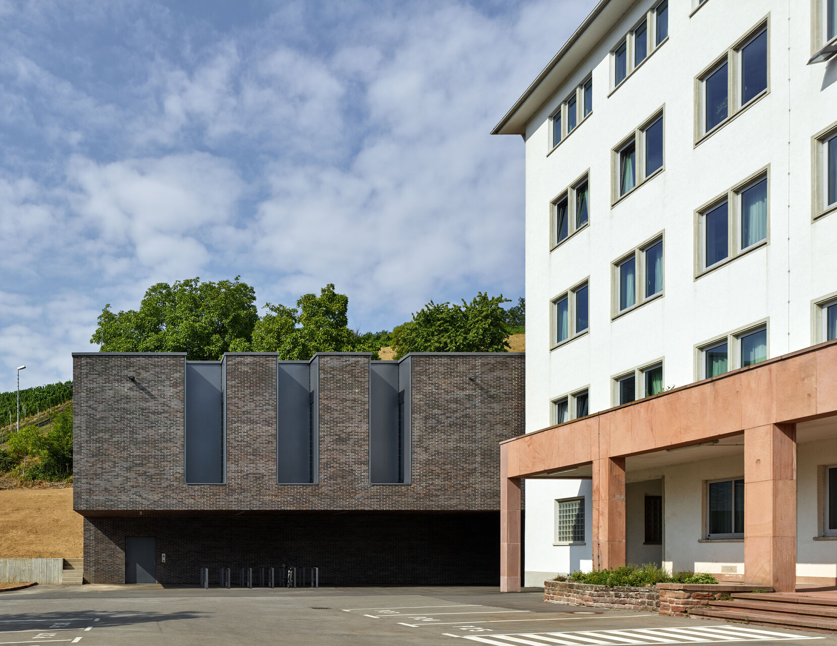 An der Nordseite schiebt sich das Sockelgeschoss in den Hang und bildet die Basis für das nach Süden zum Eingangshof des Hauptgebäudes stark auskragende Obergeschoss. Die Anordnung der beiden Baukörper ersetzt gemeinsam mit der Oberlichtkonstruktion und der hohen geschlossenen Nordfassade umfangreiche Sicherungsmaßnahmen. Drei nicht direkt einsehbare Einschnitte im Volumen belichten den Innenraum zusätzlich. Das Sockelgeschoss nimmt die technische Versorgung für den Dauerbetrieb des energieeffizienten Gebäudes mit zweischaliger Außenwandkonstruktion auf. (Text: Architekt, bearbeitet)