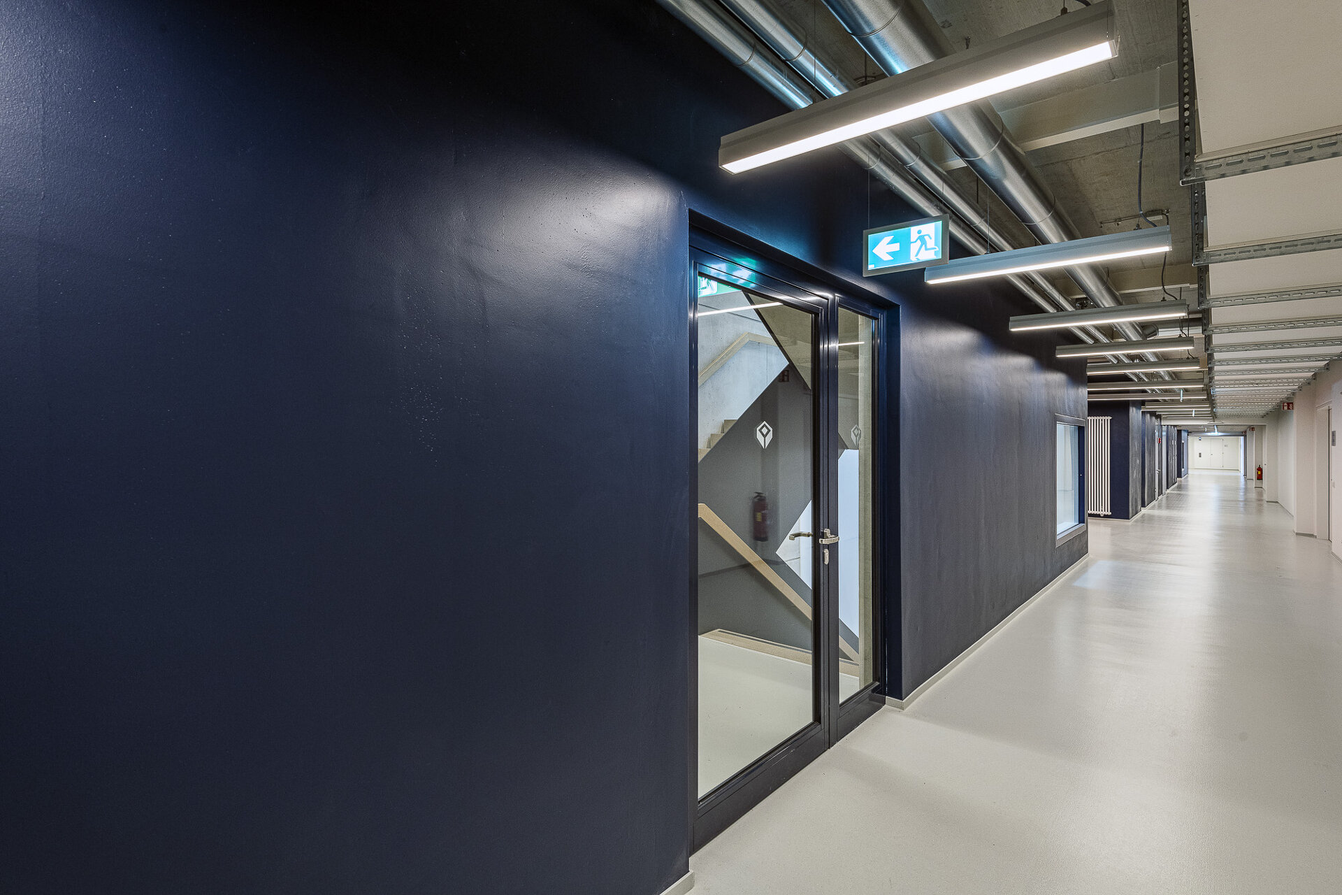 Das viergeschossige Gebäude kann durch flexible Trennwände auf die Bedürfnisse der zukünftigen Mieter und Nutzungen reagieren. Im Erdgeschoss sind 15 größere Werkstätten mit großen Sektionaltoren angeordnet. In den Obergeschossen befinden sich rund 60 flexibel abtrennbare Werkstätten. Das Erdgeschoss präsentiert sich als heller Sockel, bestehend aus Stahlbetonsandwichelementen und steht im Kontrast zu einer dunklen Klinkerfassade in den Obergeschossen. Die rhythmische Anordnung der Fenster in den Obergeschossen resultiert aus dem vorgesehenen Ausbauraster welches Einheiten ab einer Größe von rund 40 m² ermöglicht.