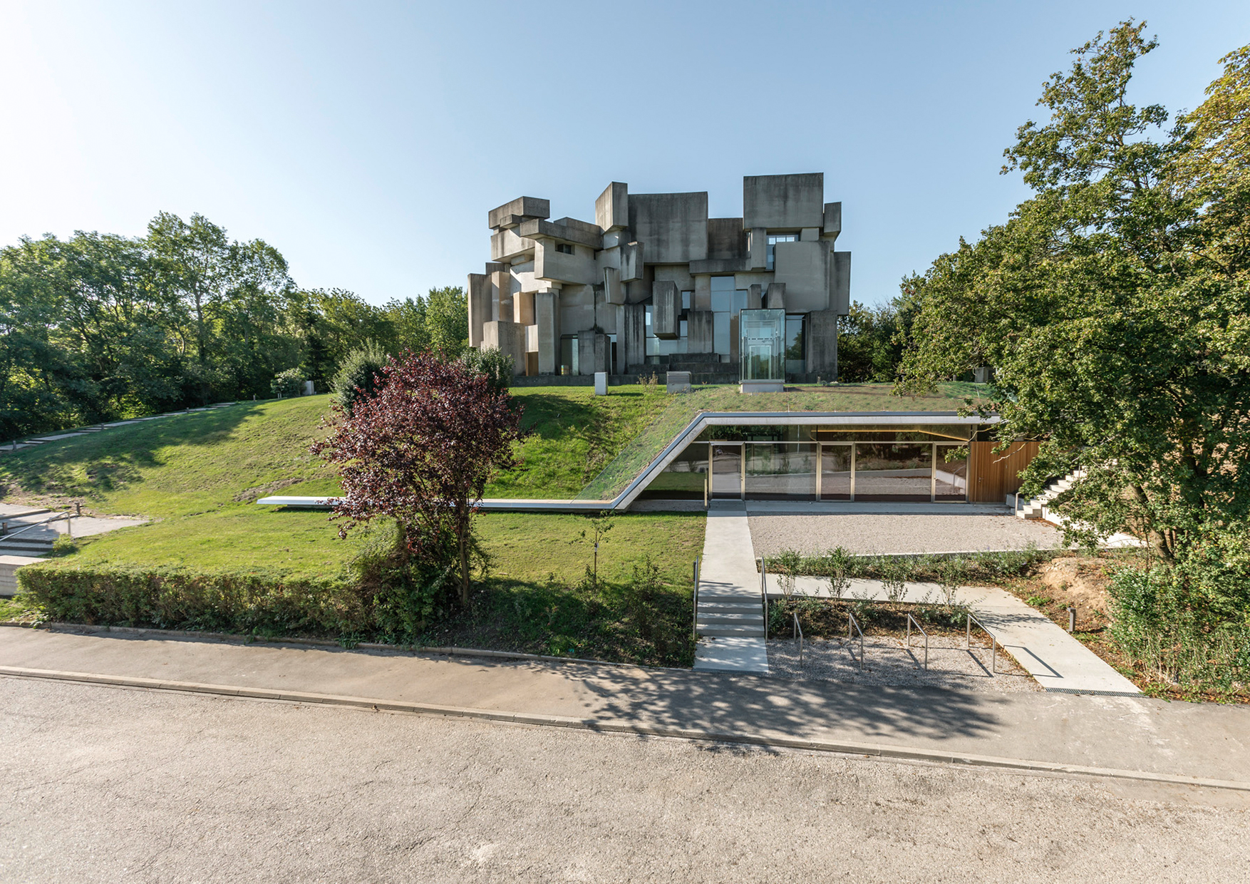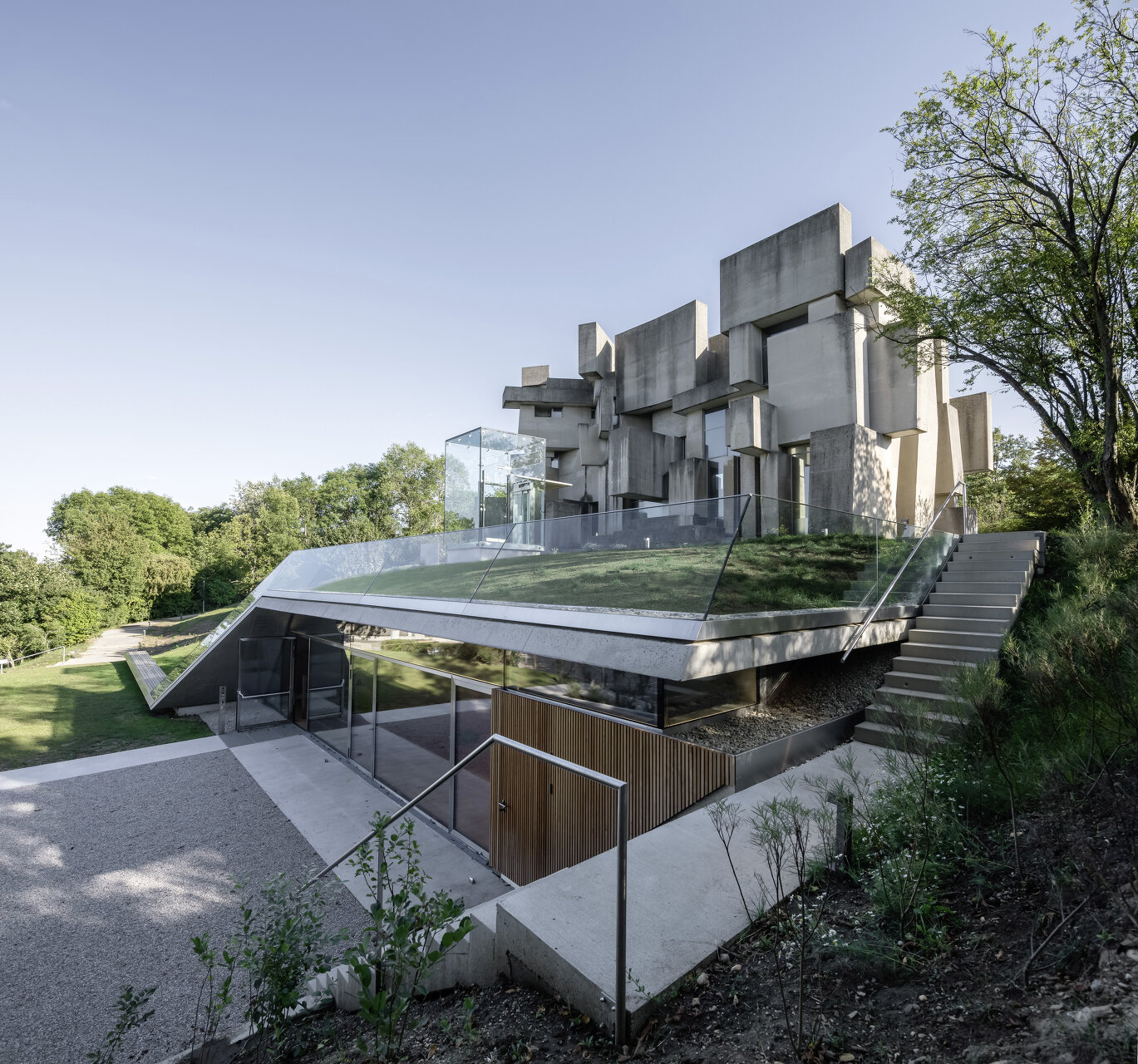 Die Gründe dafür sind nachvollziehbar. Ein drei Meter hoher Glaskubus, der vor der Kirche aufragt, tritt zwangsläufig in einen skulpturalen Dialog mit dem Kirchenbau, der aber inhaltlich leer bleiben muss. Dasselbe gilt für die die gläserne Vitrine, die der Kirche, zumindest von Nordwesten her betrachtet, den Boden unter den Füßen wegzieht, von den als Absturzsicherung nötigen gläsernen Brüstungen ganz zu schweigen. Die Architekten Formann und Puschmann, die unter dem Kürzel f?p firmieren, haben zwar ein in den Details feines Projekt gezeichnet. Darauf kommt es hier aber nicht an: Das Projekt beschädigt schon im Ansatz die kompromisslose Aura von Wotrubas Skulptur.