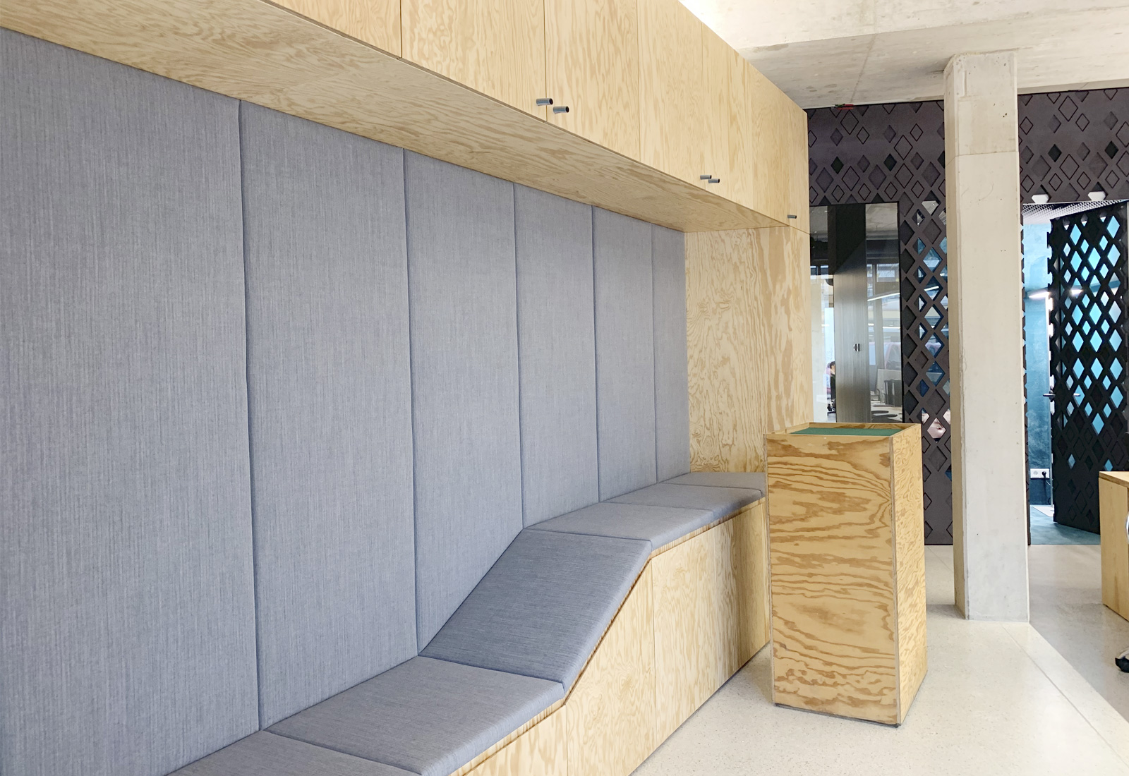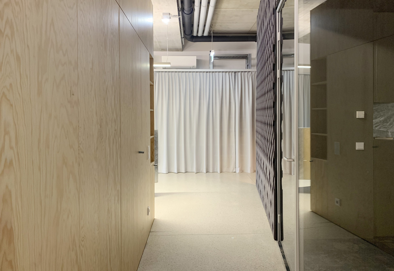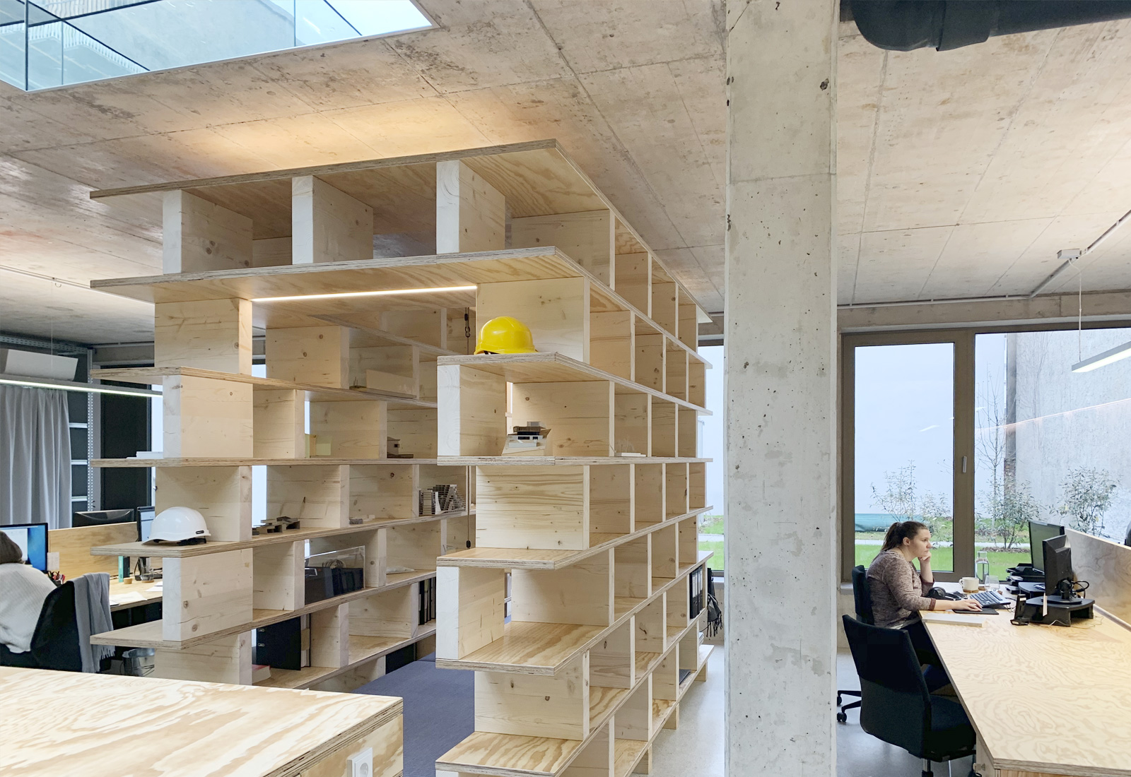 Im Inneren der Blockrandbebauung ergibt sich ein Gartenhof auf zwei Ebenen. Am Dach des Erdgeschoßes der Geschäftsflächen breitet sich hier der Kinderspielplatz aus. Wohnanlage und die doppelstöckige Tiefgarage werden von der Anzengruberstaße erschlossen, die drei Geschäftsflächen, darunter auch das Büro der planenden X-Architekten, öffnen sich zur Wienerstraße.