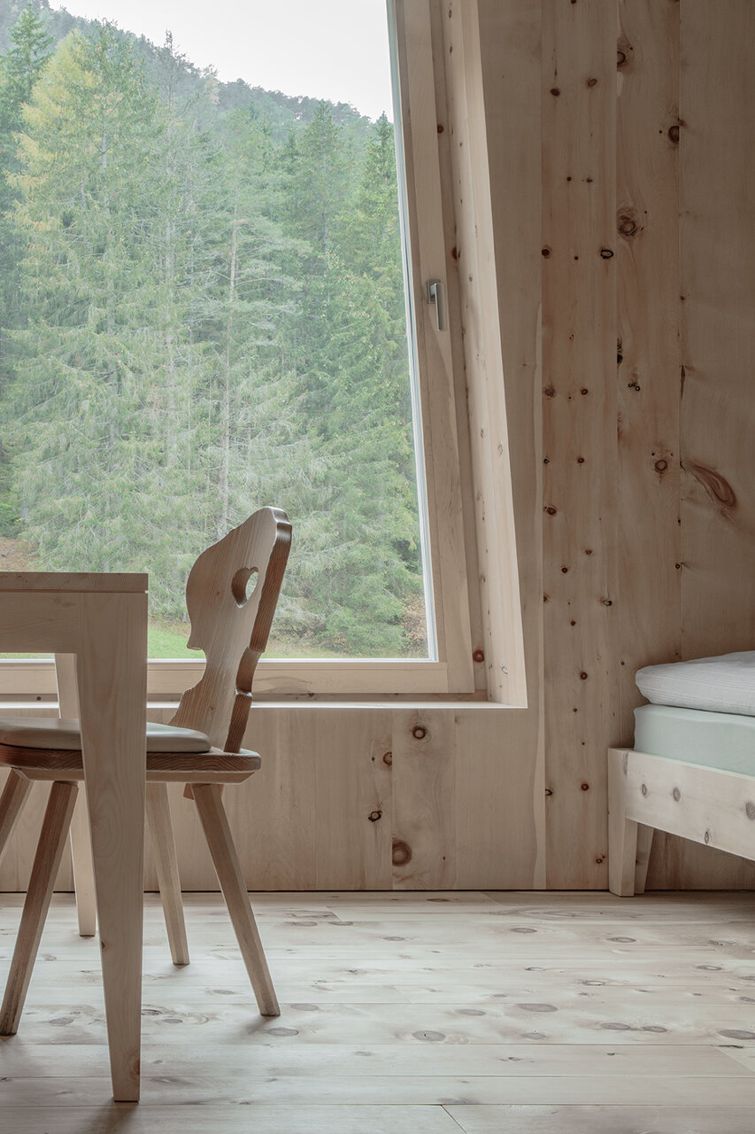 - Es wurde ausschließlich Sturmholz aus den umliegenden Wäldern verwendet, das bereits auf einer Waldlichtung zu Bohlen weiterverarbeitet wurde.