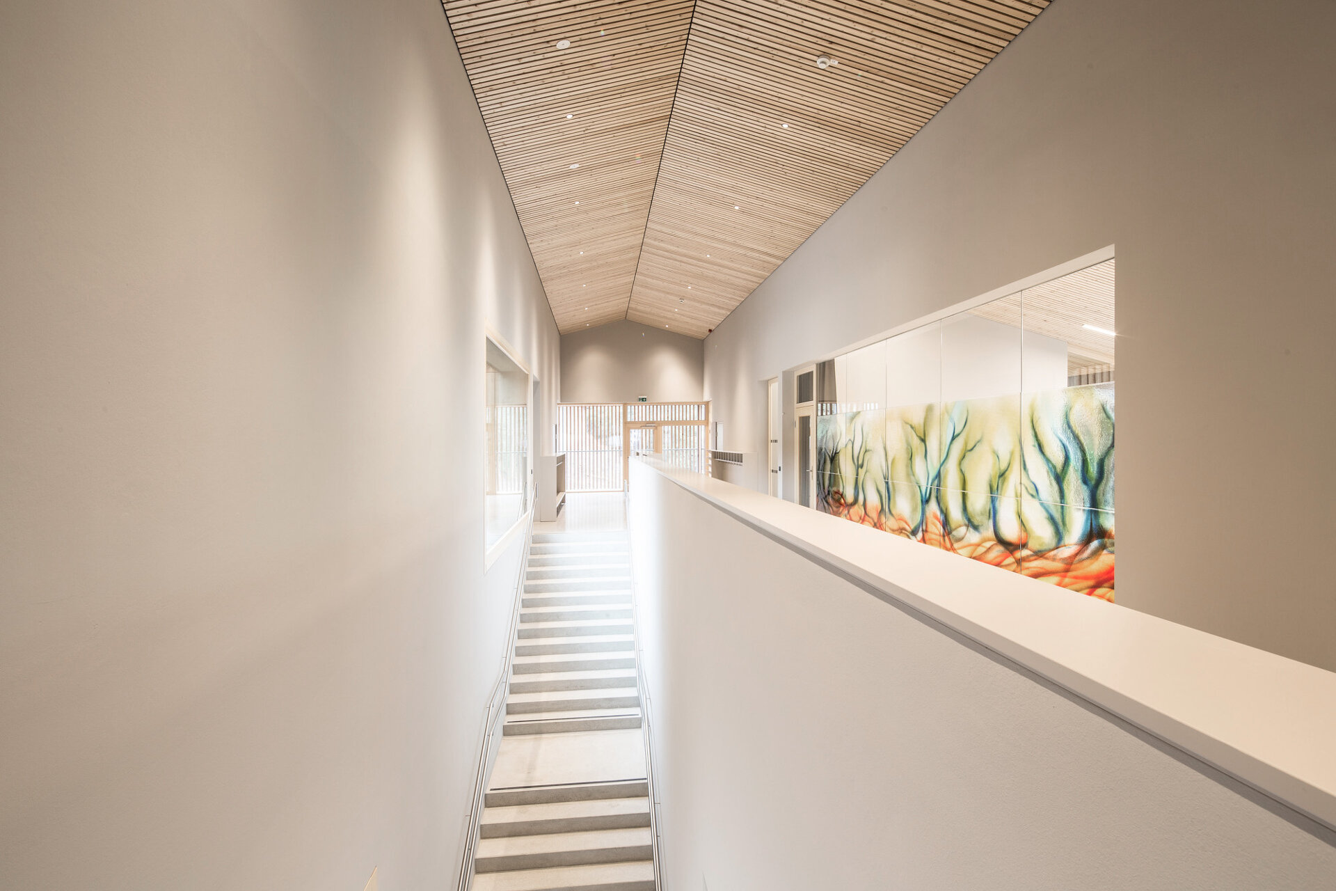 In Schlierbach im oberösterreichischen Traunviertel etwa war die Wahl des Bauplatzes für den kürzlich fertiggestellten Neubau des Gemeindekindergartens an der Fürstenhagenstraße nicht unumstritten. Es gab starke Stimmen, die seiner Errichtung „auf der grünen Wiese“ den Vorzug gegeben hätten. Es war Überzeugungsarbeit notwendig, um diese auf den ersten Blick einfachere und billigere Wahl abzuwenden. Aus Sicht der Schlierbacher Bürgermeisterin, Katharina Seebacher, hat sich der Diskussionsprozess gelohnt: Der Kindergarten ist dem Ortskern als wichtiger Impulsgeber erhalten geblieben. Die zu Beginn der Diskussion noch fehlende Vorstellung, wie man dem steil geneigten Abhang eine räumlich ansprechende, barrierefreie Anlage abgewinnen kann, hat die Architektur ergänzt. Eine von Wolf Architektur (Grieskirchen) und Architekt Kienesberger (Wels) gebildete Arbeitsgemeinschaft hat den Architekturwettbewerb zum Neubau des Kindergartens für sich entschieden und wurde mit der Generalplanung beauftragt.
