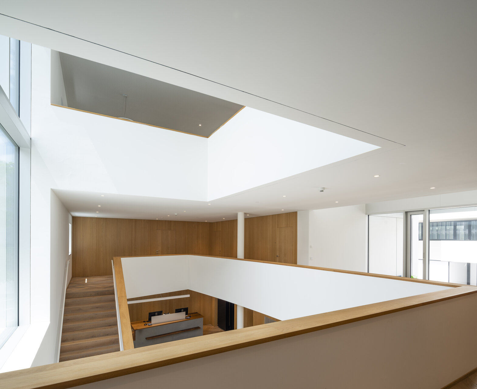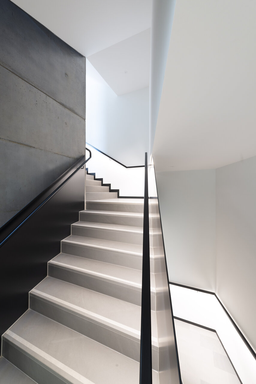 - Stahl-Glaskonstruktion, Stahlbeton, Vermeidung von PVC für Fenster, Türen