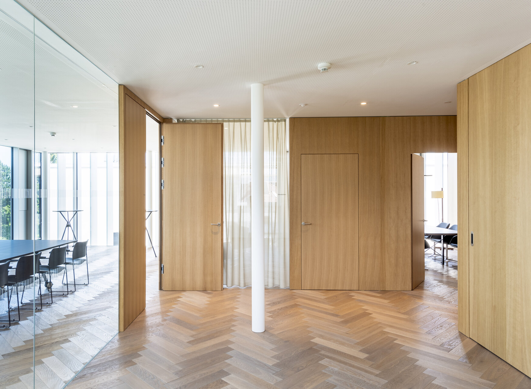 Um in den Räumen eine möglichst hohe Behaglichkeit im Winter wie auch im Sommer zu schaffen, wurden großflächige Heiz- und Kühlflächen geschaffen. Die Energieabgabe und Energieaufnahme geschieht zum größten Teil über Strahlung und somit kommt es zu fast keinen Luftbewegungen und damit verbunden Zugerscheinungen. Durch die richtige Auslegung und Wahl Medientemperatur in den Heiz- Kühlflächen kann eine Oberflächentemperatur nahe der Raumtemperatur realisiert werden. Dies hat den Vorteil, dass es zu keiner „Strahlungsasymmetrie“ im Raum kommt. Die Strahlungsasymmetrie spielt eine große Rolle für das Wohlbefinden des Menschen. Negativbeispiel wäre ein elektrisches Infrarotheizpaneel mit einer Oberflächentemperatur von ca. 100°C. Oberflächentemperaturen nahe der Raumtemperatur haben zusätzlich den Vorteil, dass im Sommer hohe Vorlauftemperaturen möglich sind und im Umkehrschluss im Winter mit niedrigen Vorlauftemperaturen gearbeitet werden kann. Dies hat zur Folge, dass der Wirkungsgrad von Wärmepumpen und Kältemaschinen merklich besser wird.