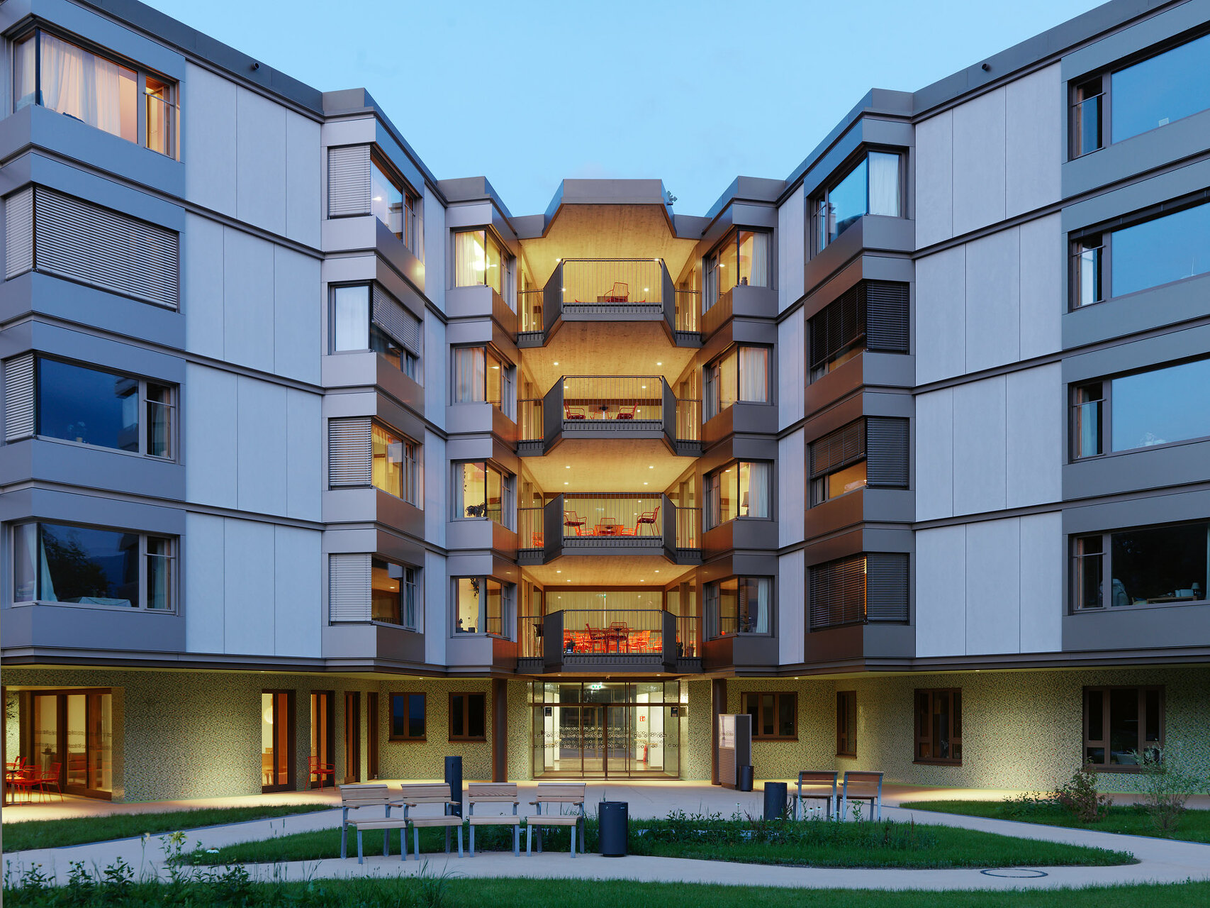 In der Salzburger Altenpflege setzt man auf das Hausgemeinschaftsmodell: Den Altbestand der früheren Vereinigten Versorgungsanstalten ergänzt nun das Seniorenwohnheim Nonntal. Umgesetzt von den Villacher Architekten Gasparin und Meier.