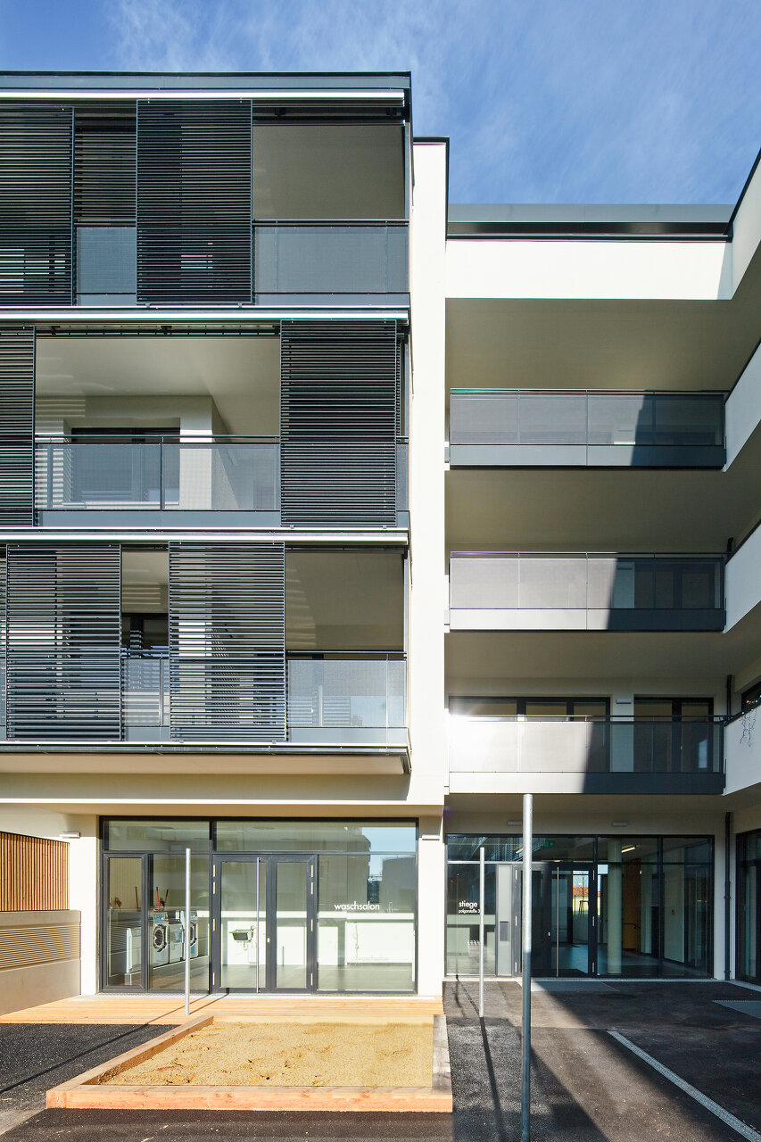 Diverse Gemeinschaftseinrichtungen, wie Kinderspiel- und Gemeinschaftsraum mit einer Küche oder Gemeinschaftsgärten im Hof unterstützen und fördern die nachbarschaftlichen Aktivitäten. Das Jugendzentrum mit seinem Mehrzweckraum bildet das soziale, quartiersübergreifende Zentrum. Das RÄP (Räume Polgarstrasse) ist ein in Österreich einmaliges Modell der verschränkten Mehrfachnutzung. So entsteht ein Ort für intergenerativen und interkulturellen Dialog. Diverse Wohnungstypen haben viel Potential mit minimalen Interventionen sich ändernden Bedürfnissen anzupassen.
