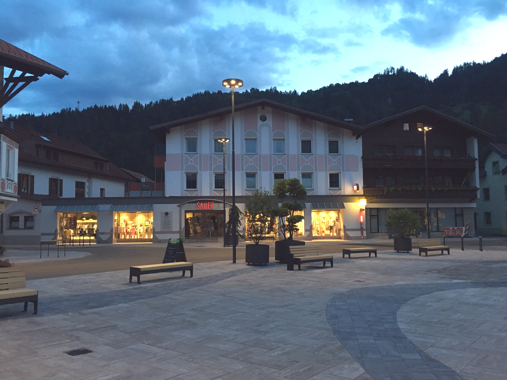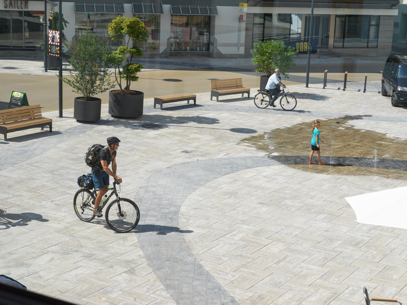 In einem zweiten Schritt wurde das Büro FXA mit einem vom Land Tirol geförderten Begegnungszonencheck beauftragt, der eine eindeutige Empfehlung dafür ergab. Aus dem vorher unbelebten Platz und der daran angrenzenden Durchzugsstraße ist nunmehr ein belebter Raum für alle geworden. Zwischen dem historisch wertvollen und jüngst renovierten „Winkl“-Gebäude und den Gebäuden an der Kanuertalerstraße laden Bänke, Wasserspiele und Trinkbrunnen zum Verweilen ein. Das „Innopark“ Gebäude wurde zu einer Insel inmitten eines belebten öffentlichen Raums. Wichtiges Element ist auch die neue Beleuchtung aus drei, im Dreieck aufgestellten runden Stelenleuchten am Platz sowie auf den Giebeln oder Pfetten der Häuser montierte blendfreie LED-Leuchten.