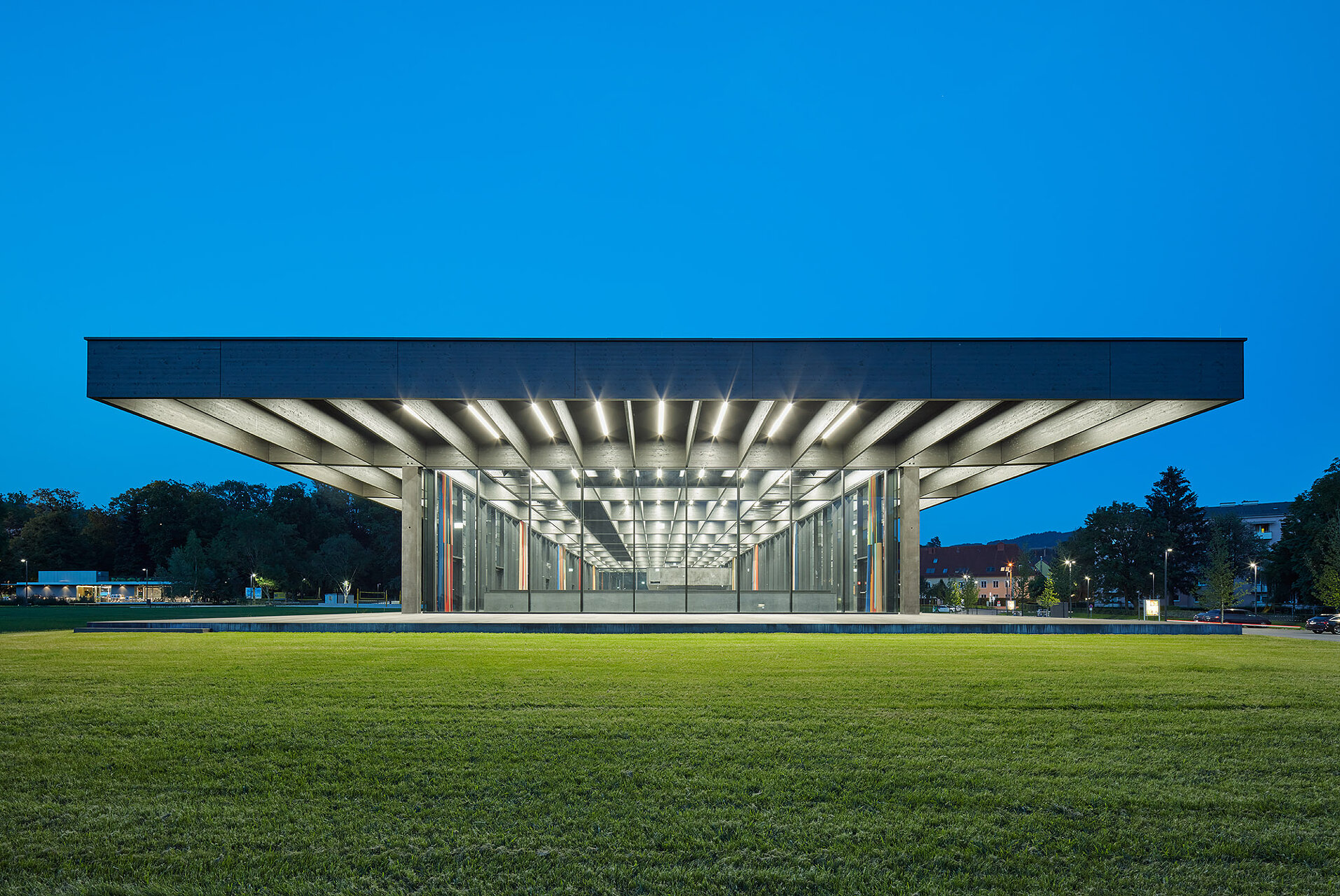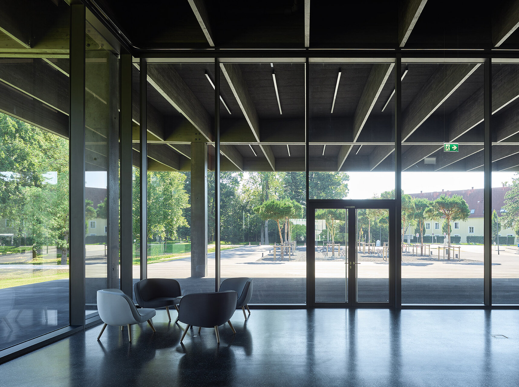 Eine Typologie der Klassischen Moderne – ein fliegendes Dach auf zarten Stützen auf einer sich leicht über die Landschaft hebenden Platte, darunter ein von transparenten Wänden definierter Raum – steht für Offenheit, Innovation und höchste Qualität. Das gibt den Freiflächen, die sich zwischen Kepler Hall und Hörsaaltrakt aufspannen, die nötige Fassung und stimuliert deren Belebung. Innen und außen gehen ineinander über, ein flexibel gestaltbarer Raum entsteht, offen für vielfältige Nutzungen, der das breite Spektrum bestehender Ansprüche abdecken kann und darüber hinaus auch bislang unerprobte Nutzungsformen ermöglicht und fördert.