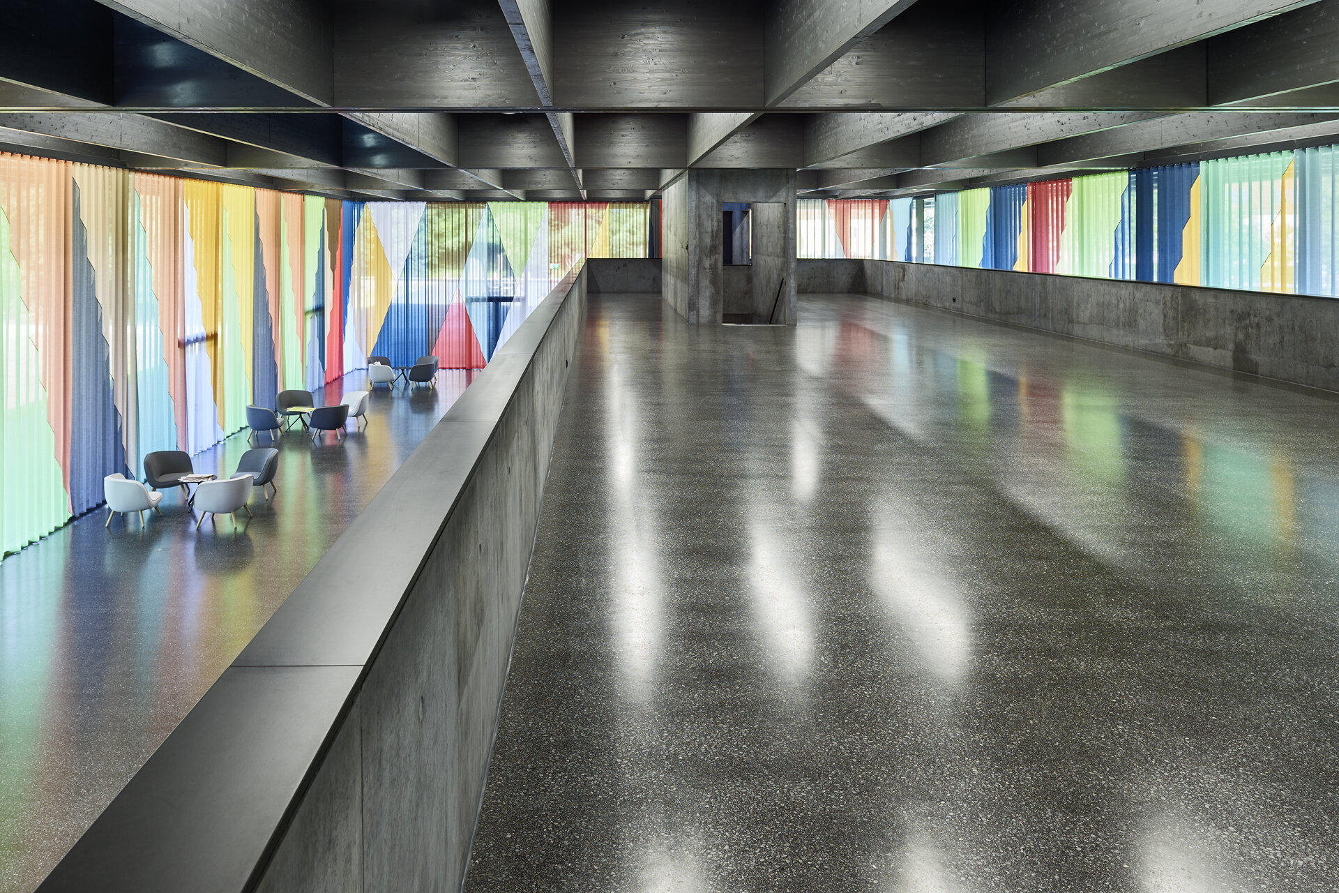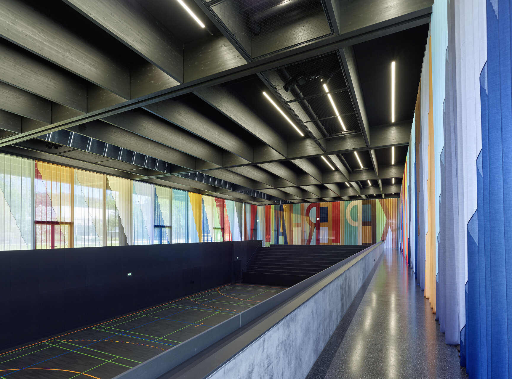 Aufgrund von Größe und Ausstattung ist die abgesenkte Arena keinesfalls nur als Sporthalle verwendbar. Sie kann Infocenter, Kino oder Ballsaal sein und bietet sich für universitäre Großveranstaltungen genauso an wie für gastronomische Bespielungen. Auch eine Nutzung als Wochenmarkt für Uni und Nachbarschaft oder andere öffentliche Formate sind denkbar. Die Kepler Hall ist zentraler Raum der akademischen Community für den täglichen Gebrauch wie für besondere Events – eine neue Aula für die JKU. (Text: Architekten, bearbeitet)