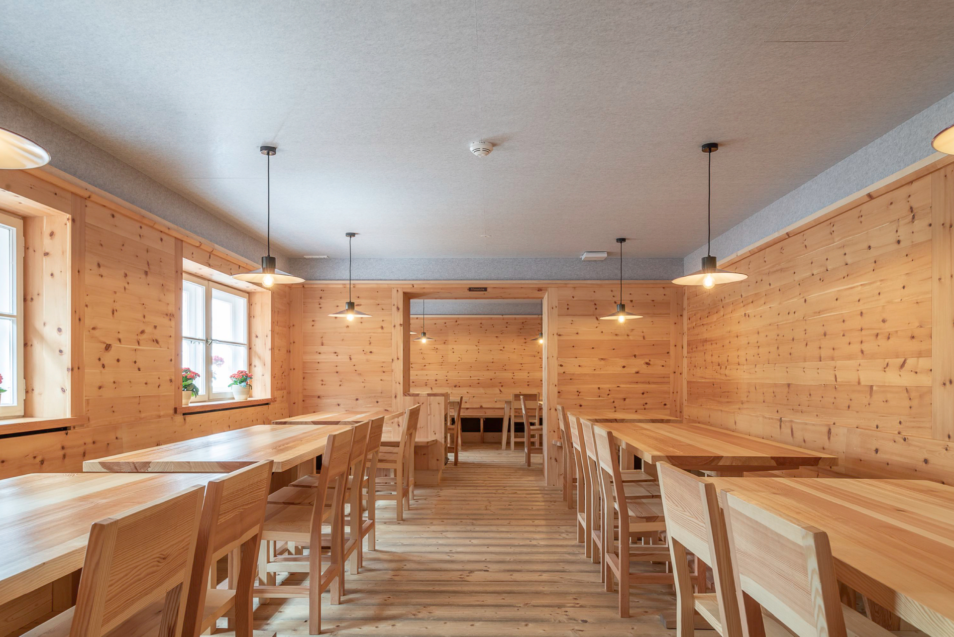 Hauptgebäude: Foyer, 4 Stuben mit Terrasse, Küche mit Aufenthaltsbereich, Lebensmittellager, Schuhraum, Trockenraum, Gästezimmer (53 Betten) Sanitärräume mit Dusche, PächterwohnungAnbau: Seminarraum, Personalwohnung, Gästezimmer (40 Betten), Sanitärräume mit DuscheWinterraum: Windfang, Stube, Stauraum, 8 Schlafstellen, ToiletteBergstation
