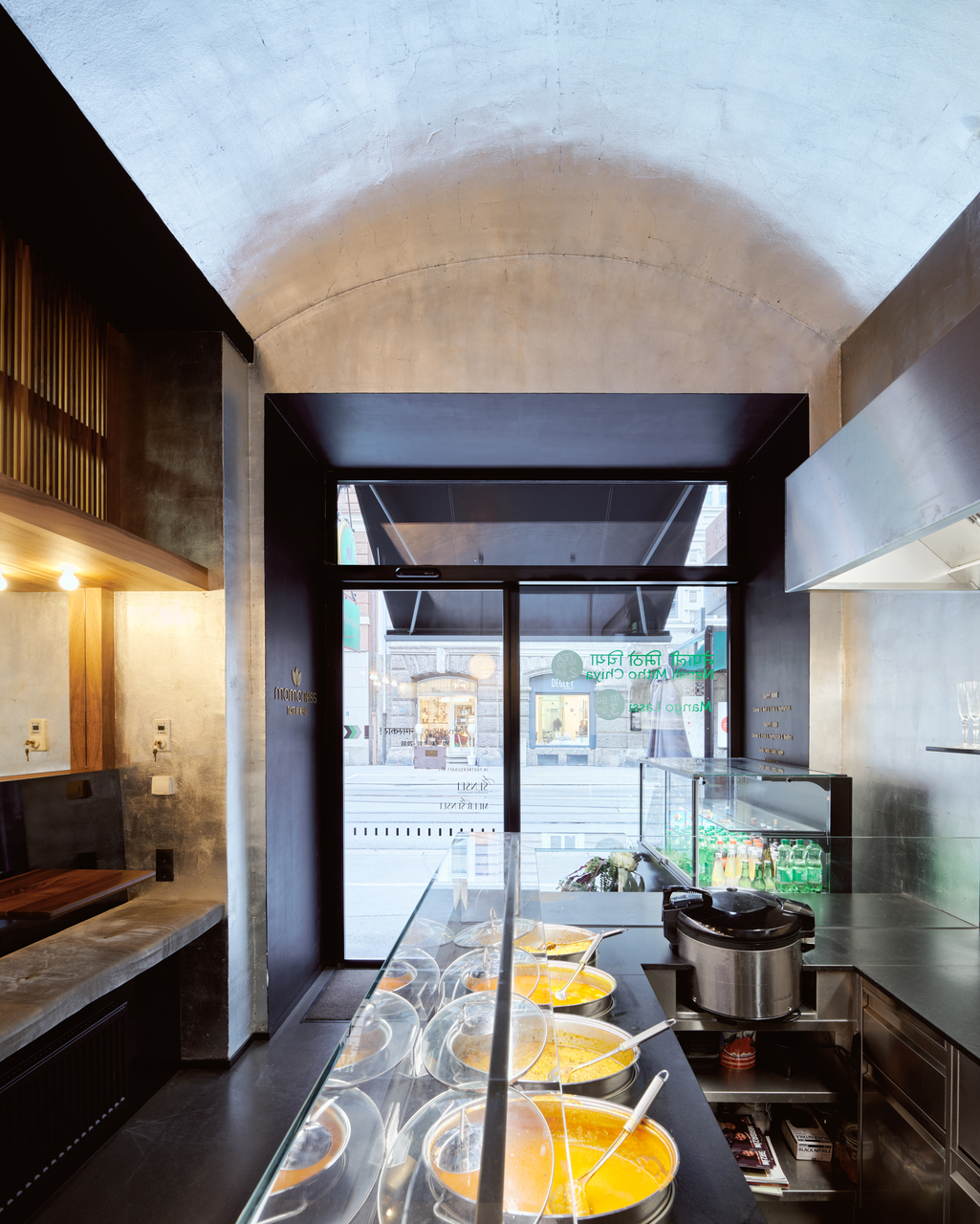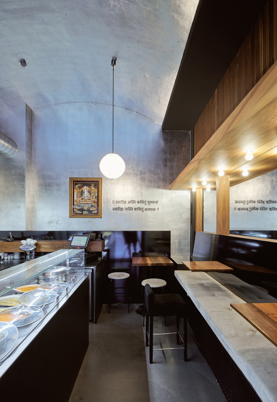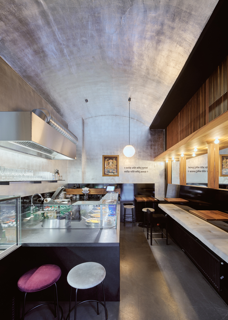 In der Anichstraße wurde Dil Ghamal dazu ein kleines, unattraktives Geschäftslokal angeboten, das dem Eigentümer auf Grund dauernder Mieterwechsel Sorgen bereitete. Auf nur 17 Quadratmetern Fläche galt es einen Raum zu schaffen, der nicht die dunkle, japanische und exklusive Sprache der Vorgängerlokale sprechen sollte. Nach langer Entwurfsarbeit, die von ebenso lang dauernden Behördenverfahren begleitet wurde, entstand schlussendlich eine räumliche Atmosphäre, die ganz anders ist als im „Sensei“ und trotzdem eine Verwandtschaft dazu aufweist. Der im Grundton silberne Raum – Schlagmetall aus Aluminium gibt Glanz und Helligkeit – hat ganz unbeabsichtigt mit der Goldschmiedfamilie Ghamal zu tun. Das kontrastierendes Schwarz, das edle braune Nussholz und die Spiegel verbreiten einen Hauch Nepal. So wie der in Sanskrit an die Wand geschriebener Spruch, nach dessen Bedeutung oft gefragt wird: „Wenn es Ihnen geschmeckt hat- erzählen Sie es weiter. Wenn nicht – sprechen Sie mit mir“. (Text: Claudia Wedekind, nach einem Text des Architekten)