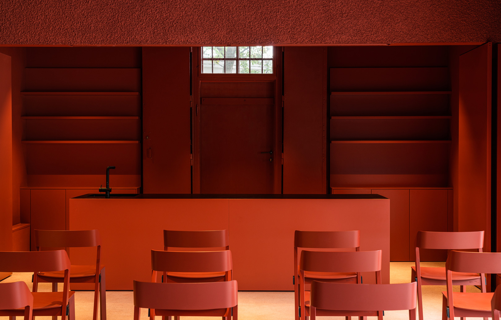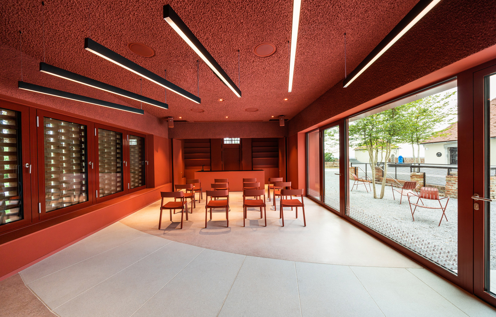 Der Kreis organisiert die Wegführung für die Besucherinnen und Besucher. Er ordnet und öffnet die zuvor problematische Außenwand und macht sie zu einer intuitiven Eingangssituation. Entlang des Kreises sind die stark frequentierten öffentlichen Bereiche angesiedelt und aktivieren so den Hof der ehemaligen Bastei.