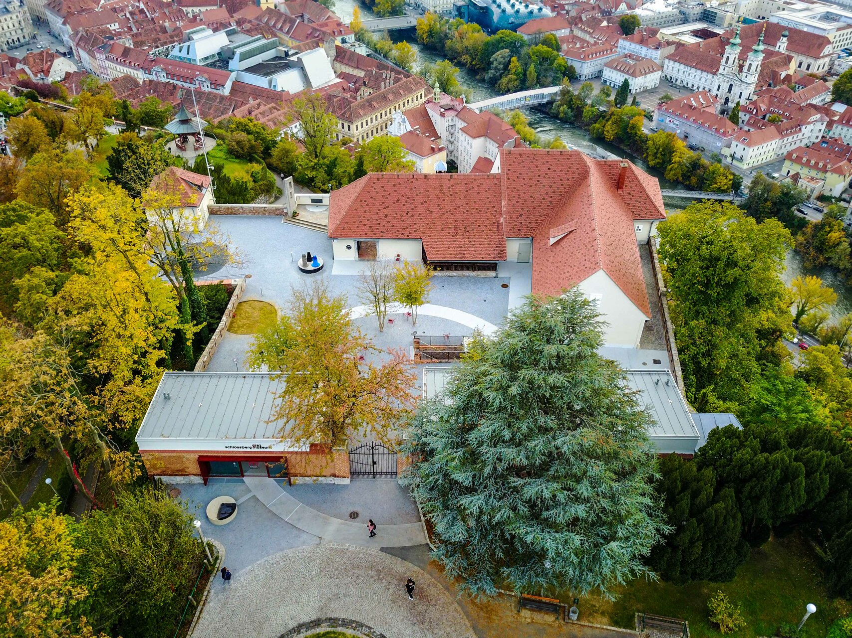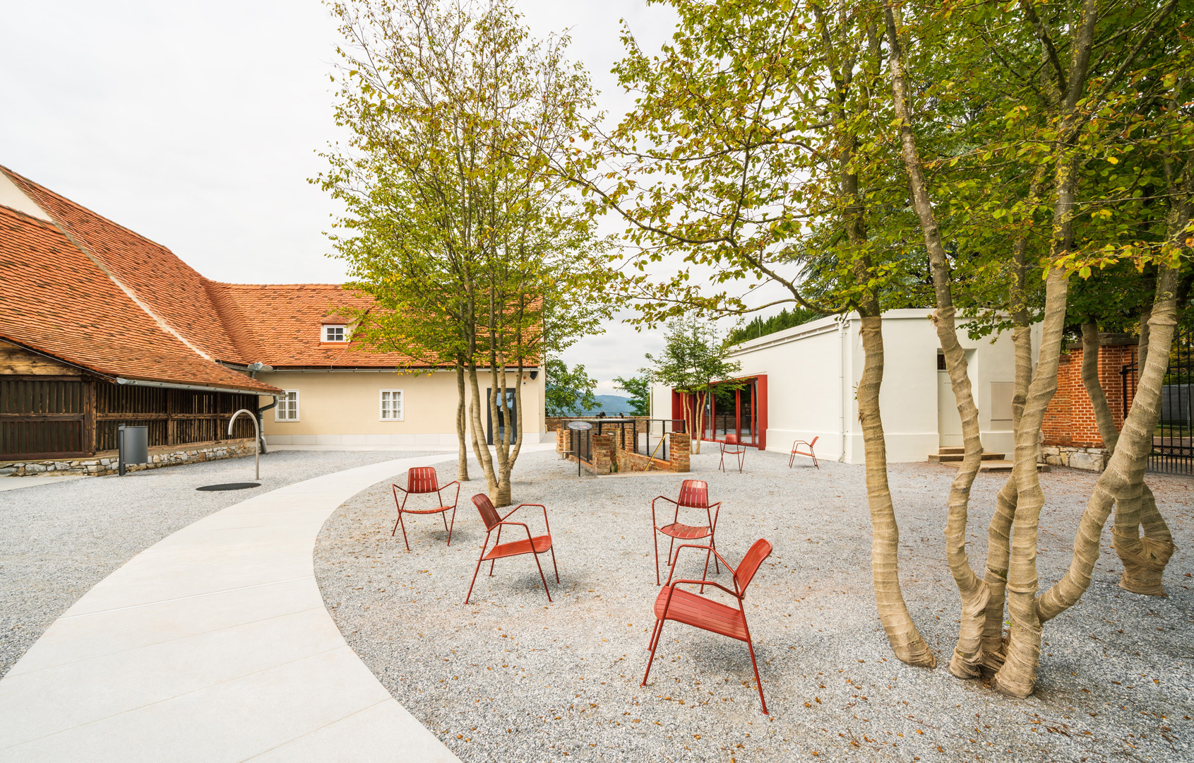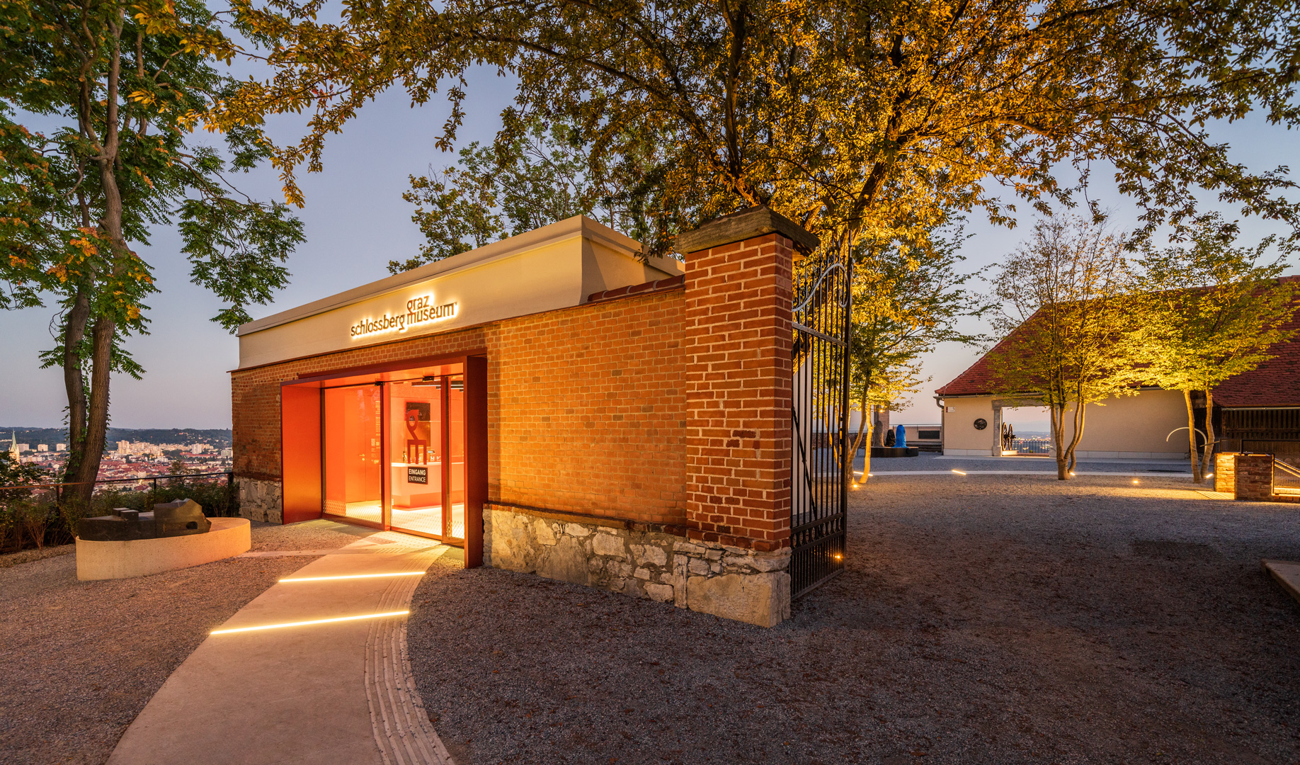 Mit Kreisweg und Baumhain wird ein neuer verbindender Layer über das geschichtsgeladene Areal gezogen. Er spiegelt auch die Haltung wider, welche das neue Museum vermitteln soll. Eine einladende Geste für alle Besucher:innen des Schlossberges – die Vermittlung eines niederschwelligen und offenen Museums.