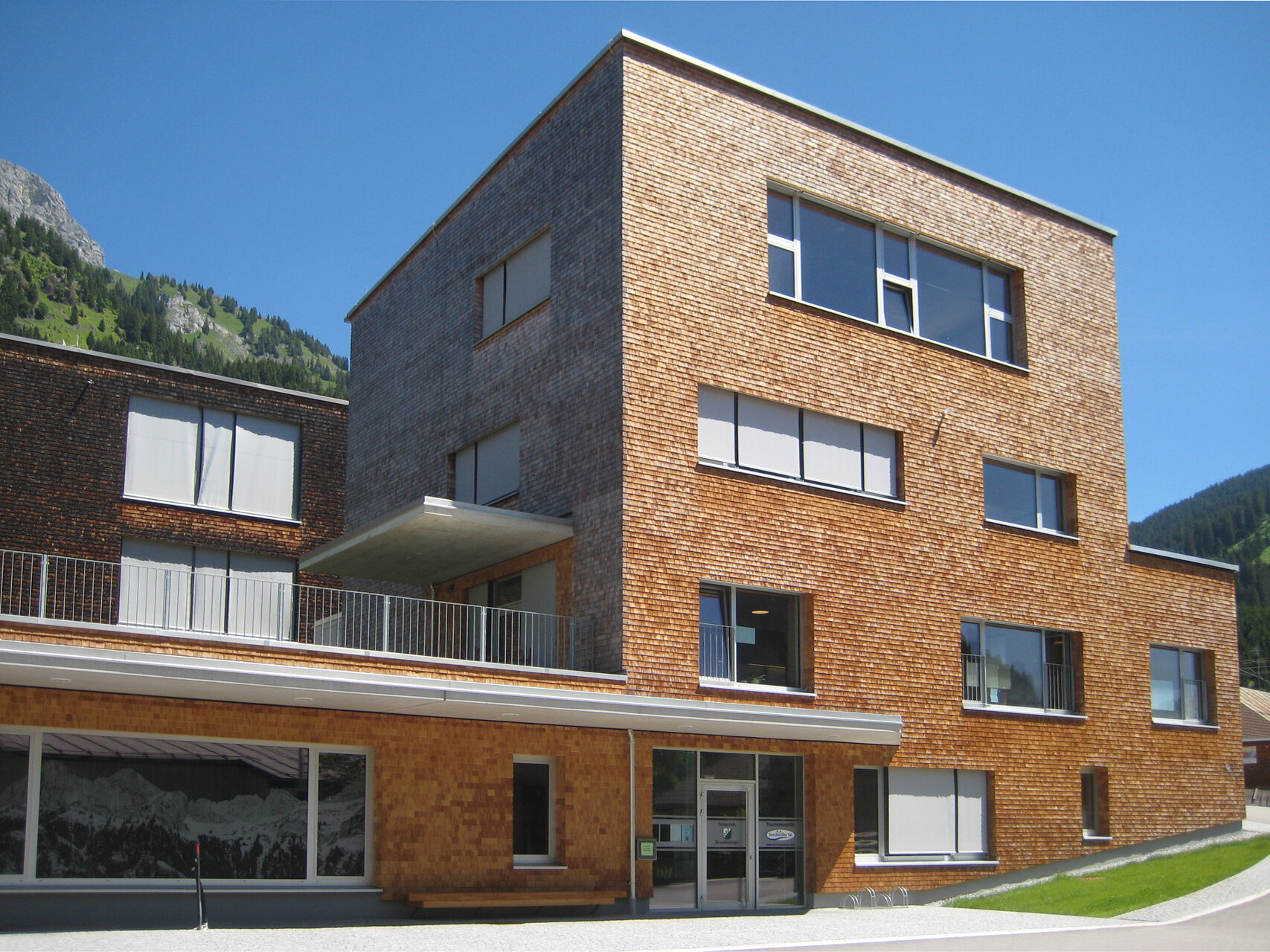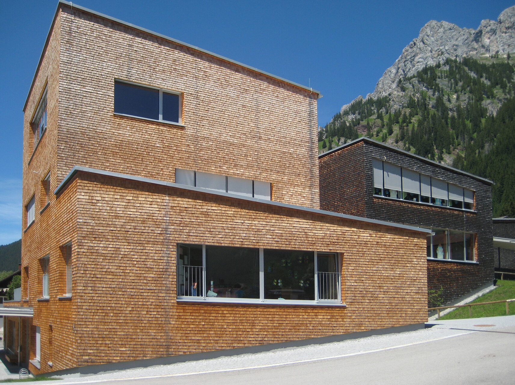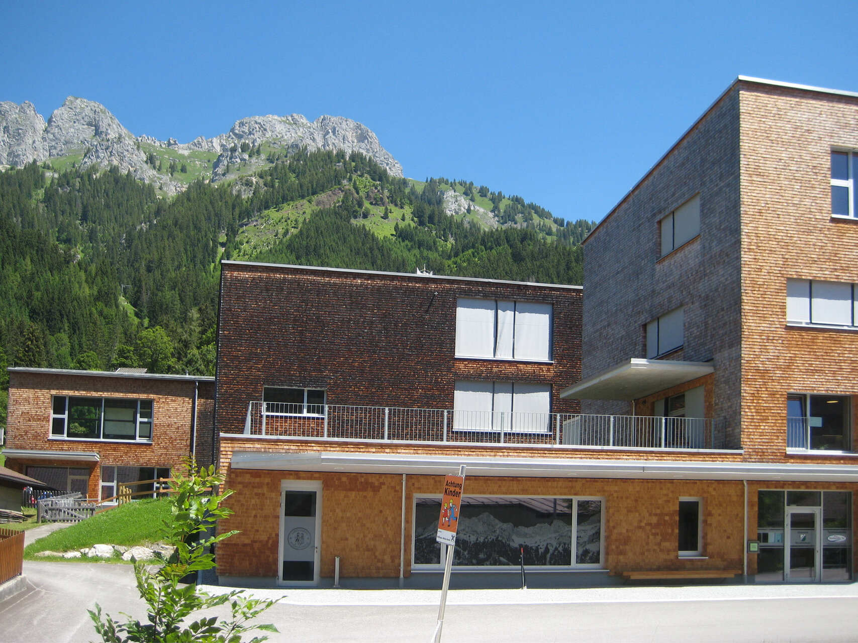 Das Mehrzweckgebäude beherbergt im Erdgeschoß das Tourismusbüro und Räumlichkeiten für die Jungbauernschaft. Darüber liegt der Schülerhort mit direkten Zugang zu den Freiflächen. Die nächste Ebene nimmt kompakt das neue Gemeindeamt mit Bürgerservice ein, ganz oben ist der multifunktional nutzbare Sitzungssaal situiert, von dem aus der gesamte Talraum überblickt werden kann.