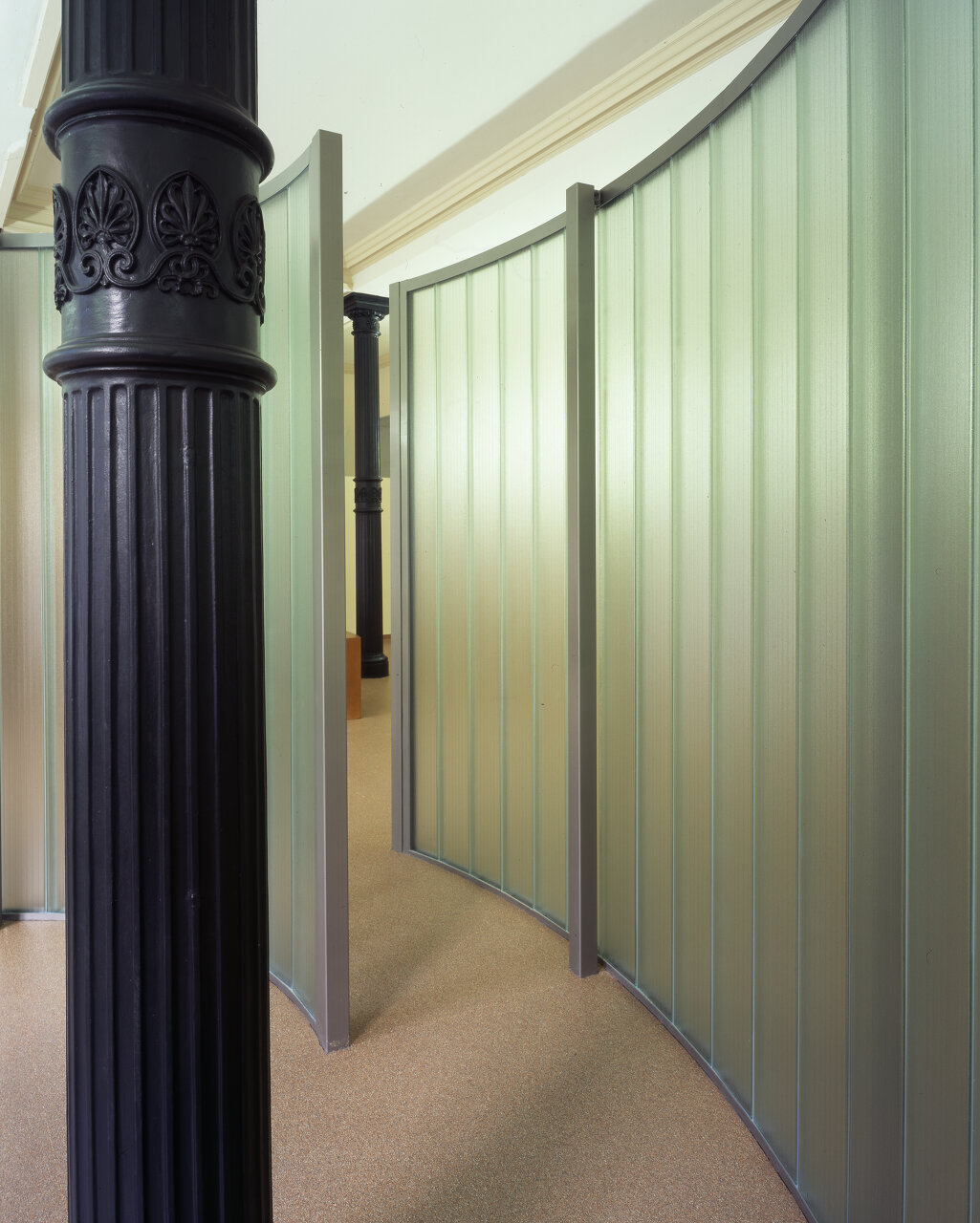 So konnte man aufgrund von alten Archivplänen die tragende Struktur aus genieteten Stahlträgern und schlanker Gusseisensäulen freilegen und wieder sichtbar machen.