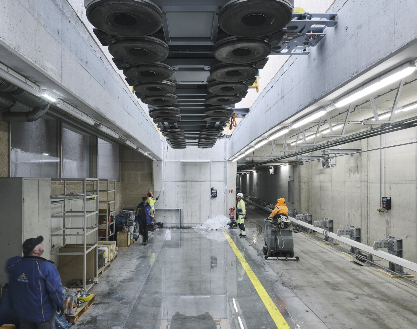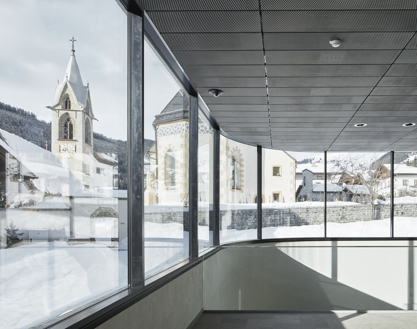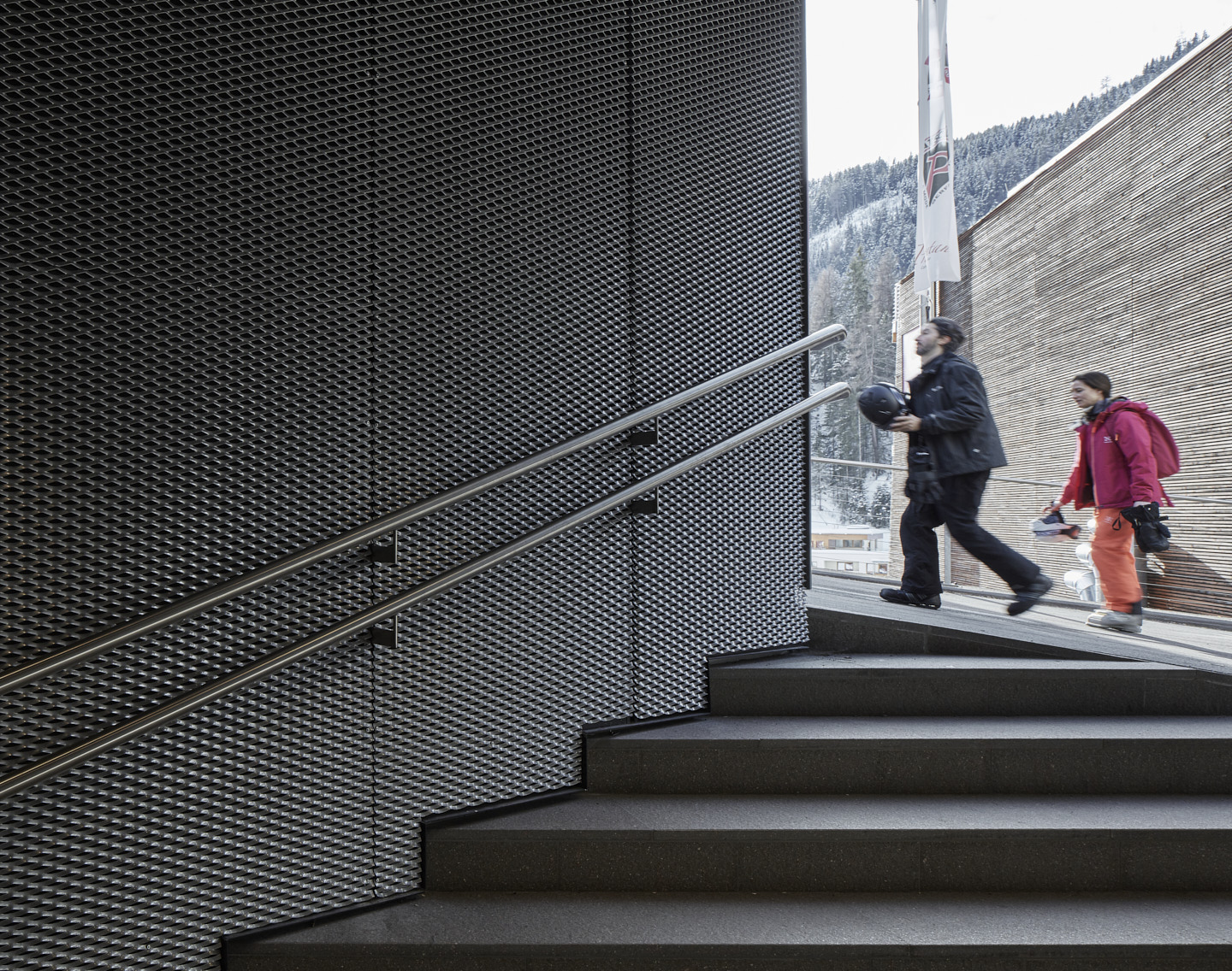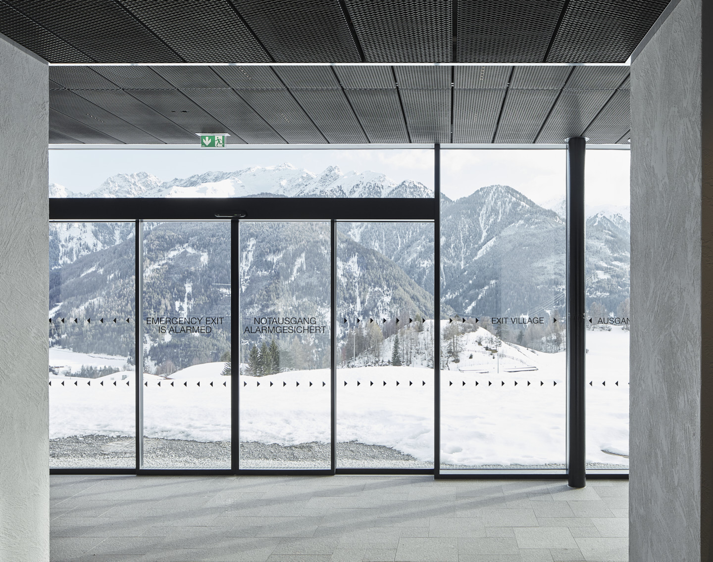 Wesentlich für sämtliche Um- und Neubaumaßnahmen war es, dass jede Station ihren eigenen Charakter erhielt bzw. bewahrte. Die verbindende Klammer bildet eine intelligente Lichtführung, ein klares Leitsystem und die eingesetzten Materialien mit Wänden aus Stahlbeton und einem Bodenbelag aus Porphyrplatten. Bei den Decken kam Streckmetall zum Einsatz, das den Lärm weitgehend absorbiert, der durch die vielen Passagiere in Skiausrüstung zwangsläufig auftritt. In die Decke integriert sind LED-Beleuchtungen und das Beschallungssystem. (Text: Claudia Wedekind nach einem Text des Architekten)