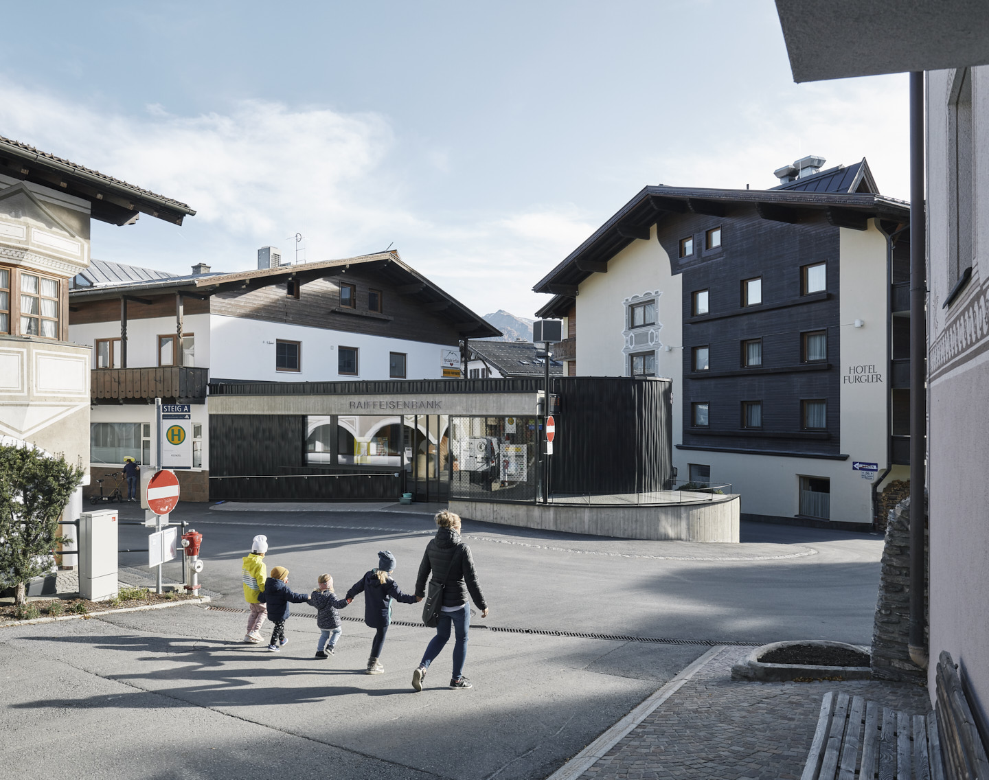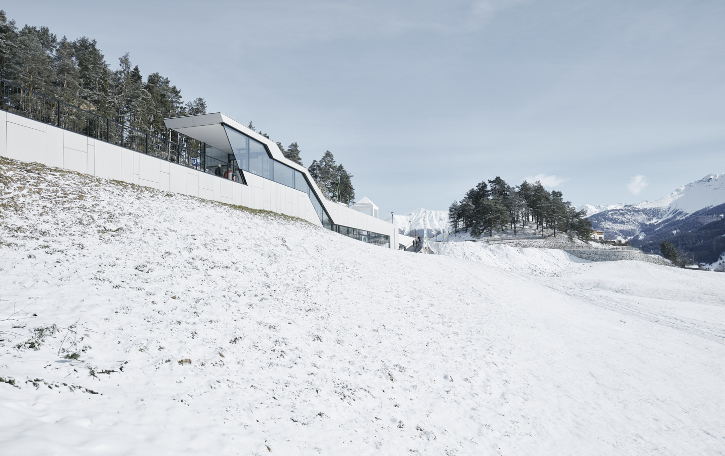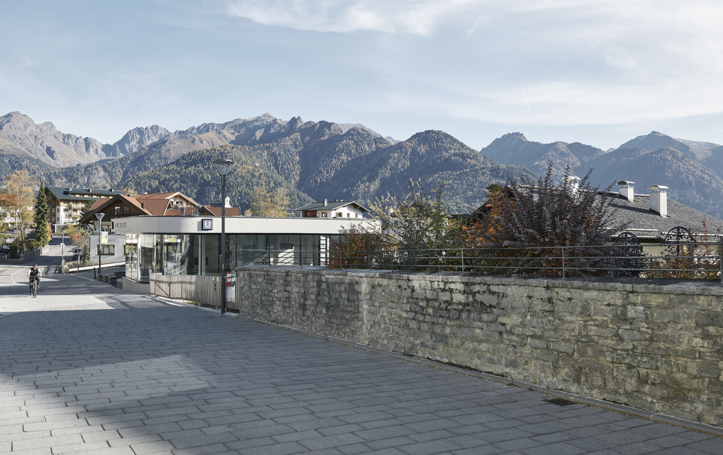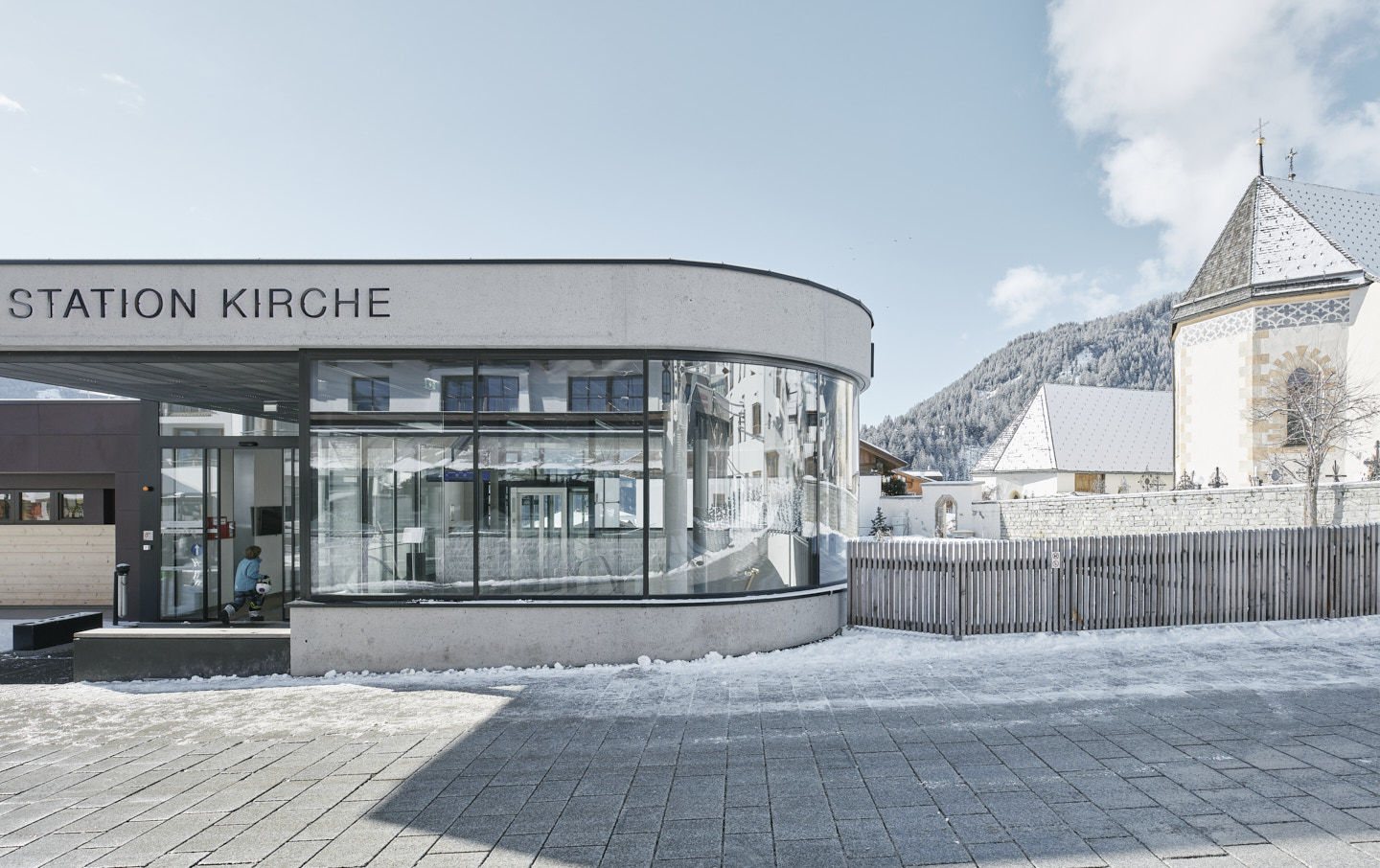 Die 1984/85 im Bergdorf Serfaus errichtete U-Bahn – eine Luftkissenschwebebahn mit Seilantrieb, die in einem 1.280 Meter langem Tunnel unterhalb der Dorfbahnstraße das östliche Dorfende mit den Seilbahnen im Westen verbindet – bedurfte einer Generalüberholung. Im Zuge der Erneuerung der technischen Anlagen sollten auch die vier Stationen an heutige Erfordernisse angepasst und als barrierefreie und familienfreundliche Erlebnis- und Begegnungsorte gestaltet werden. Ausgangspunkt für den Neubau der im Dorfzentrum liegenden Stationen „Kirche“ und „Zentrum“ und den Umbau der beiden Endstationen „Parkplatz“ und „Seilbahn“ war ein neues Licht- und Wegesystem, das zum einen die unterirdischen Bereiche möglichst natürlich belichtet und zum anderen ein intuitives Zurechtfinden gewährleistet.Der Station „Parkplatz“, ein langgezogener, dem Verlauf der Rolltreppe folgender Baukörper, kommt als Entrée zum Dorf besondere Bedeutung zu. Das in offener Bauweise gehaltene Gebäude wurde mit großen Fensterfronten ausgestattet, die viel Tageslicht in alle Bereiche der Station bringen und einen Ausblick in die Bergwelt bieten.